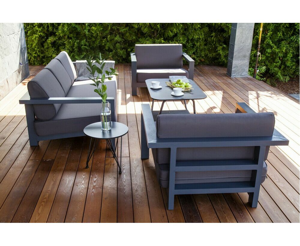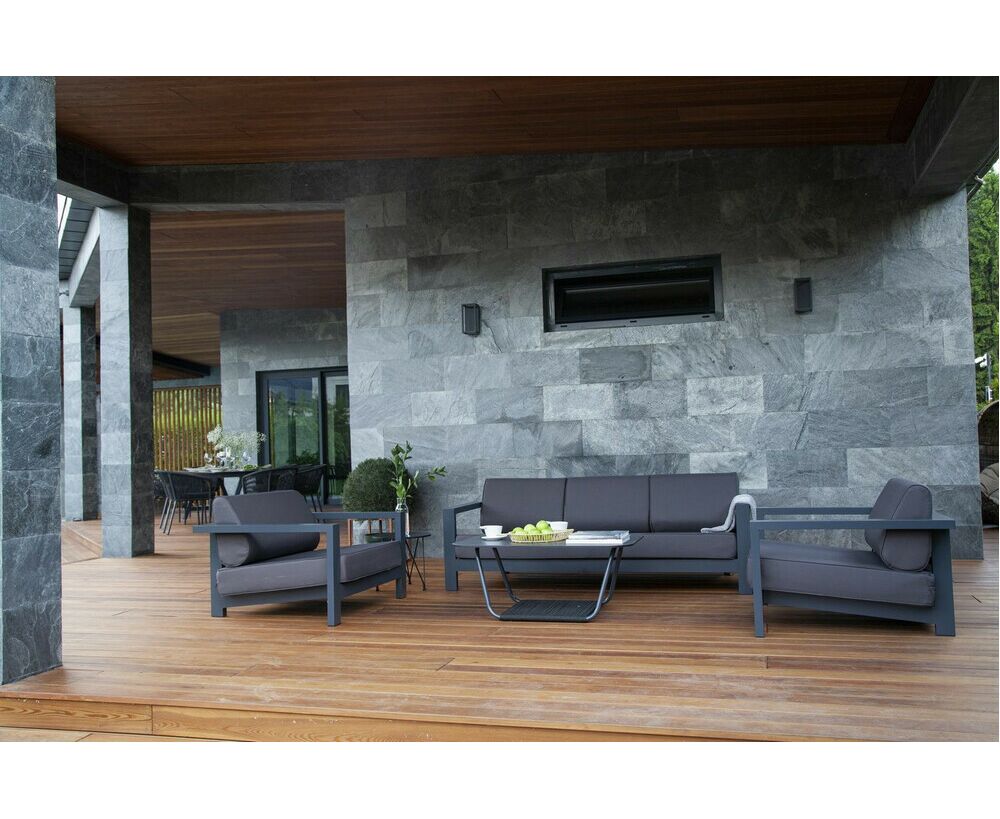 "Гранада" диван 3-местный, каркас алюминий темно-серый (RAL7024) муар, ткань темно-серая 027