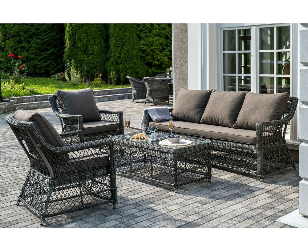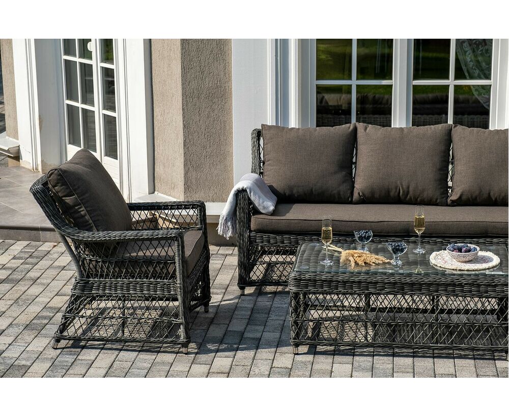 "Гранд Латте" диван трехместный из искусственного ротанга, цвет графит 1шт. 1 875Х830Х850, "Гранд Латте" кресло из искусственного ротанга, цвет графит 2шт. 720Х830Х850, "Гранд Латте" стол журнальный из искусственного ротанга, цвет графит 1шт. 1 120Х570Х450,