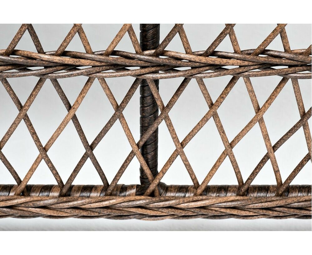 Каркас изготолен из алюминия, который гарантирует устойчивость при размещении на любой поверхности. В качестве декоративного элемента выступает ручная оплетка на основе круглого искусственного ротанга, представленного в коричневом оттенке.