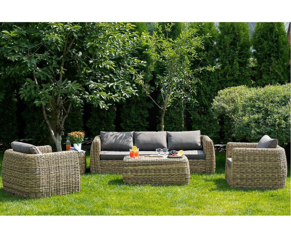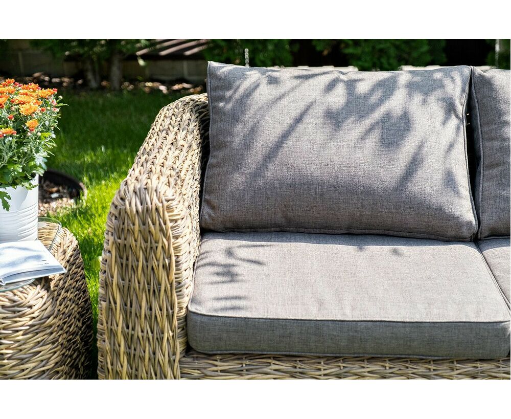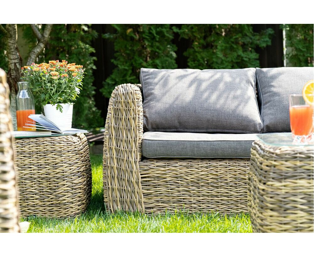 Комплект мебели представлен в соломенном цвете с плетением вида "гиацинт".