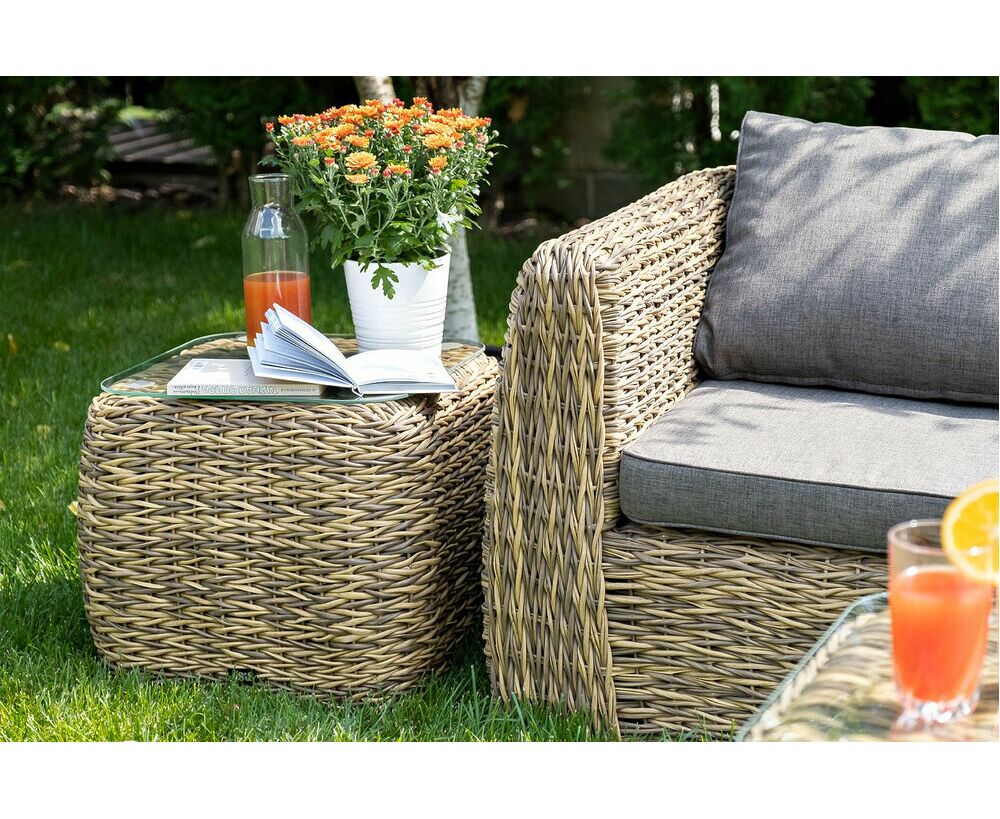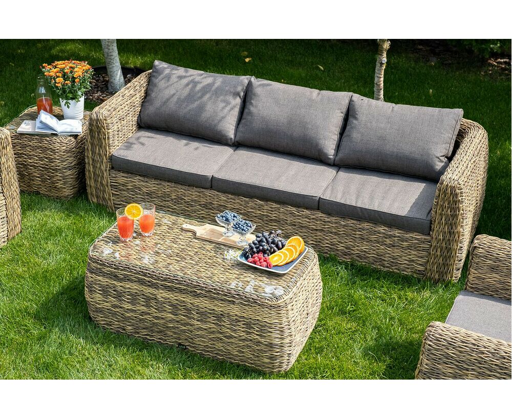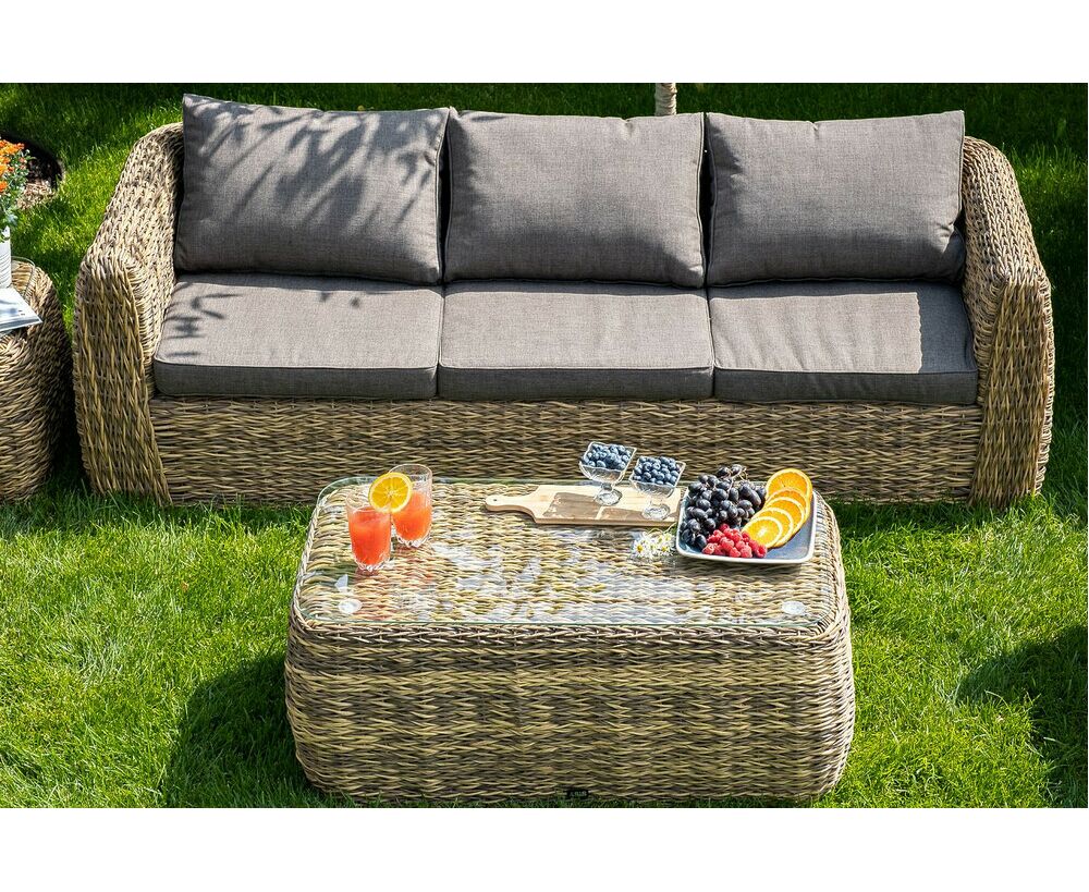 Столешница журнального и кофейного столиков изготовлена из закаленного стекла толщиной 5 мм. "Кальяри" кресло из искусственного ротанга (гиацинт), цвет соломенный 2шт. 980Х880Х680, "Кальяри" кофейный столик из искусственного ротанга (гиацинт), цвет соломенный 1шт. 540Х540Х430, "Кальяри" журнальный столик из искусственного ротанга (гиацинт), цвет соломенный 1шт. 1 050Х590Х430, "Кальяри" диван из искусственного ротанга (гиацинт) трехместный, цвет соломенный 1шт. 2 125Х880Х680,