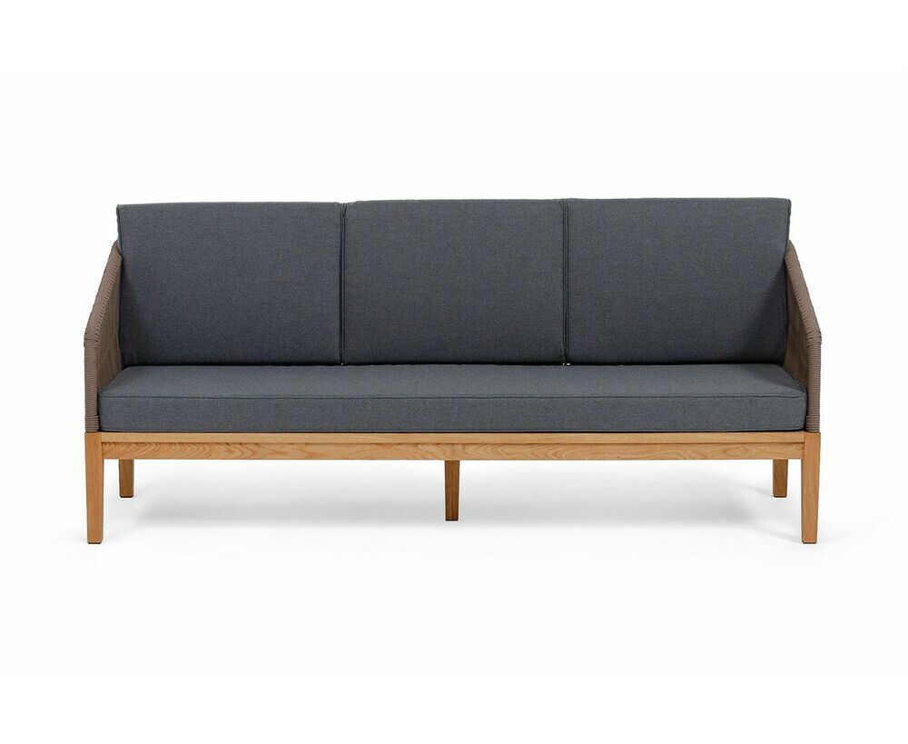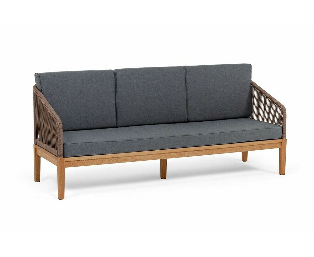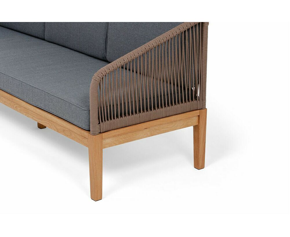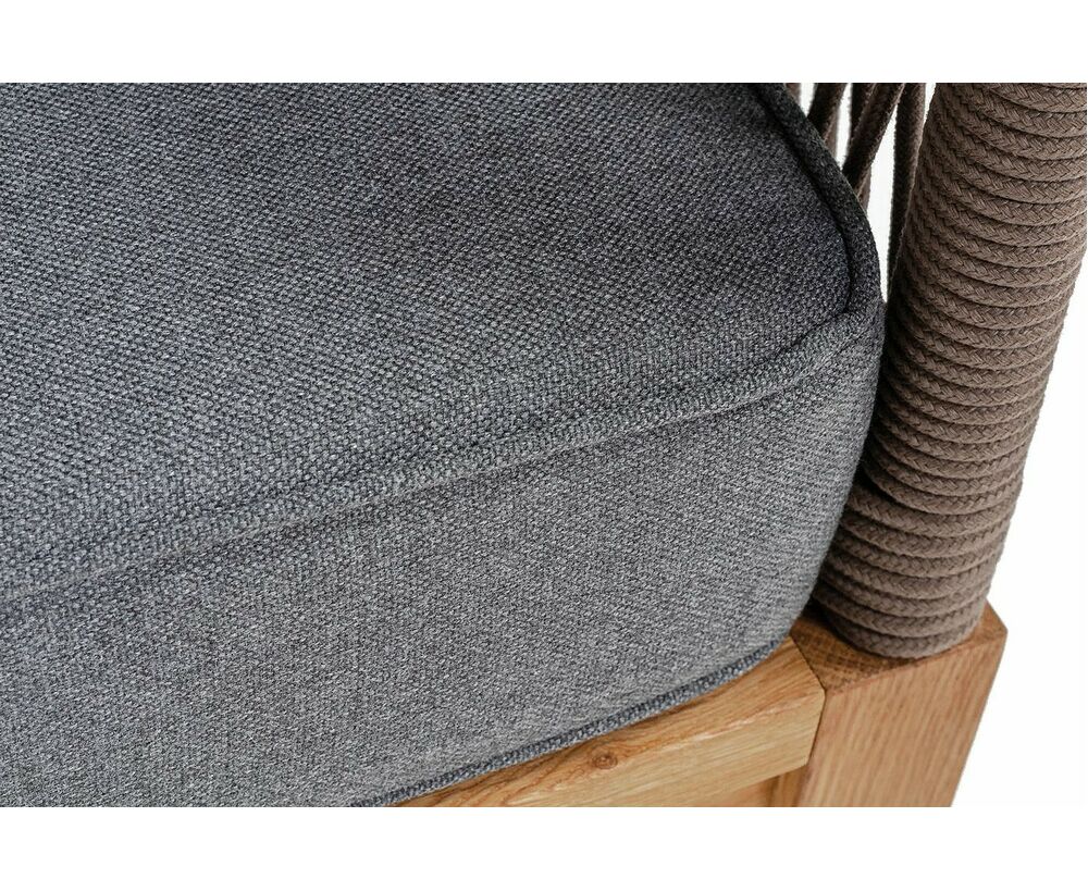 "Канны" диван 3-местный плетеный из роупа, основание дуб, роуп коричневый круглый, ткань темно-серая 027
