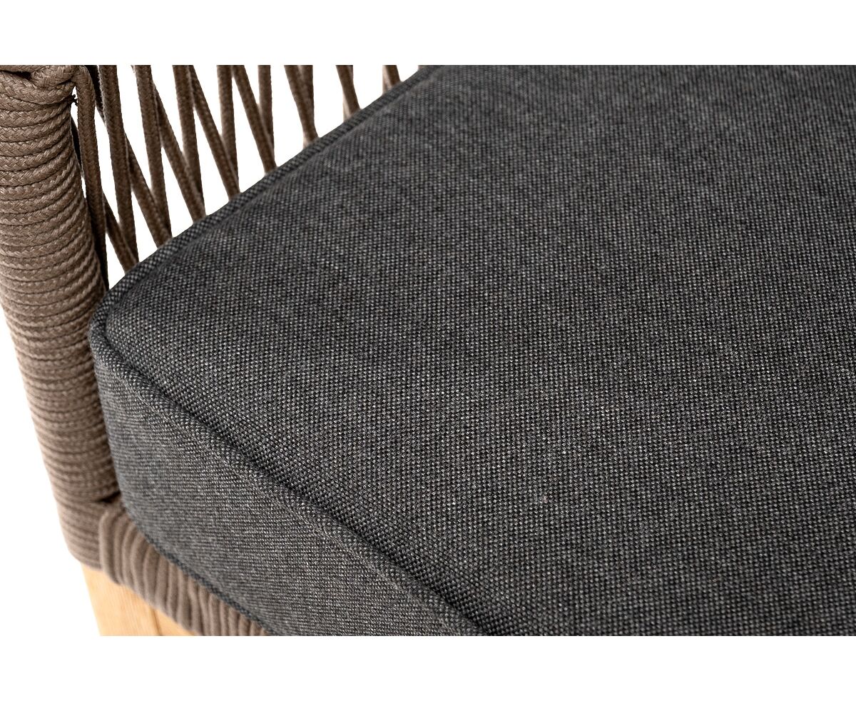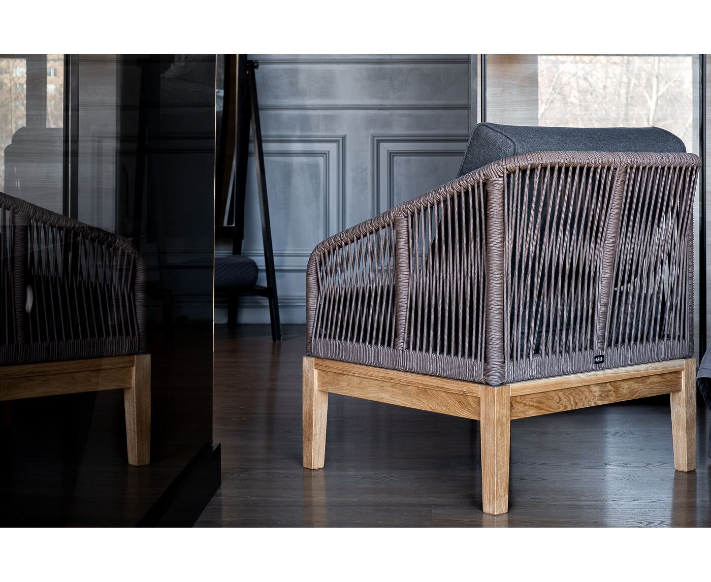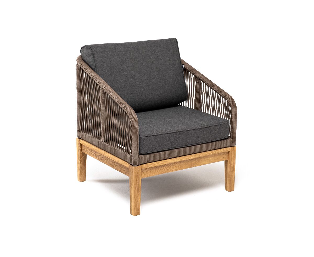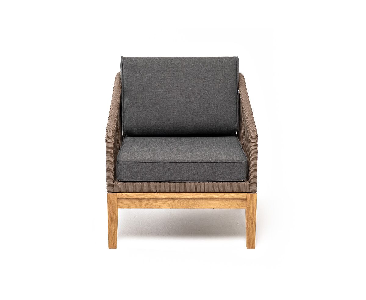 "Канны" кресло плетеное из роупа, основание дуб, роуп коричневый круглый, ткань темно-серая 027