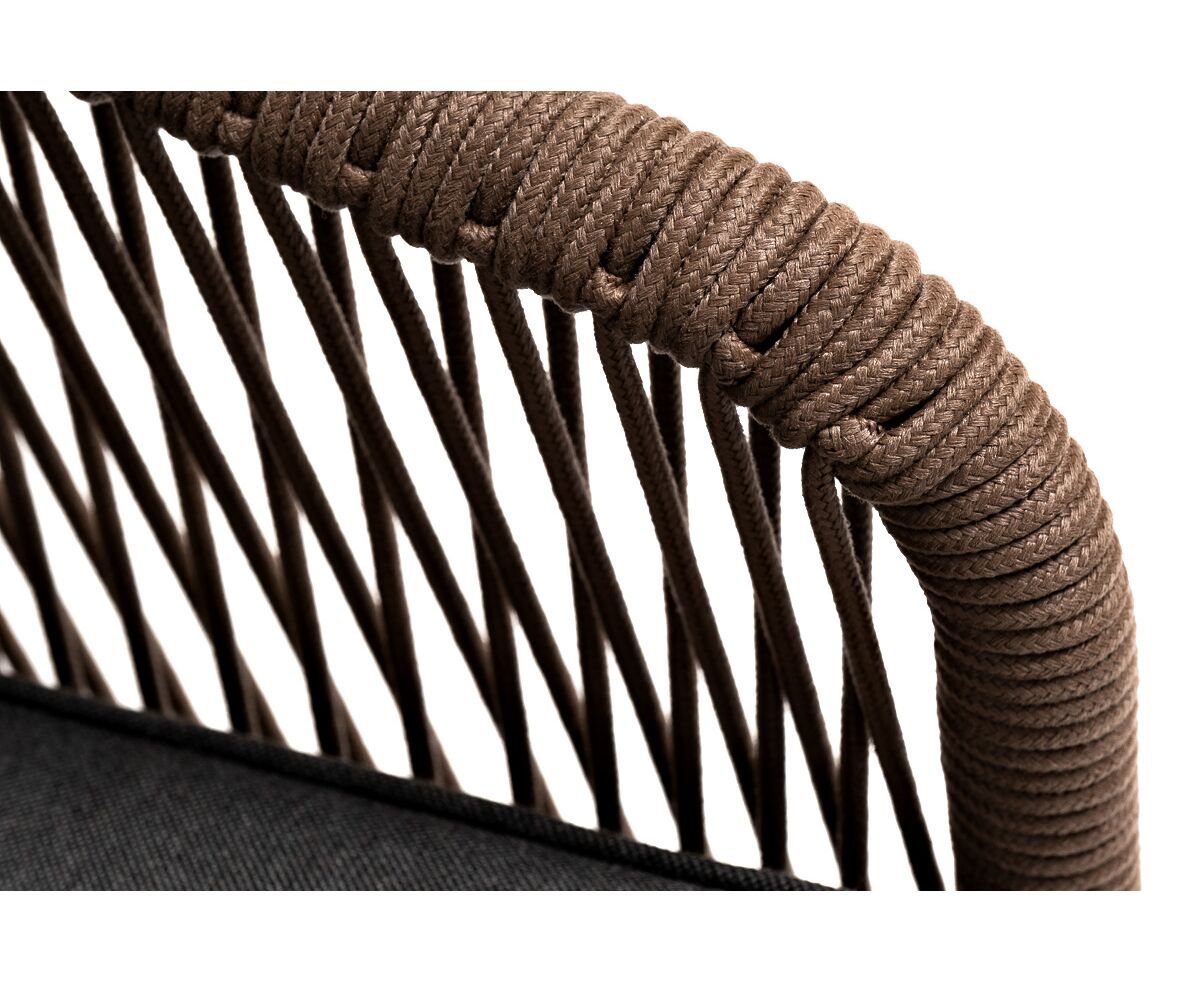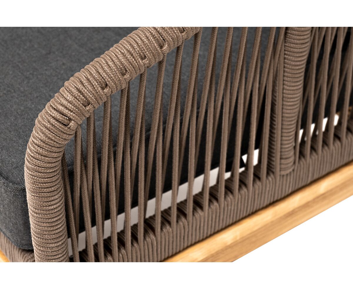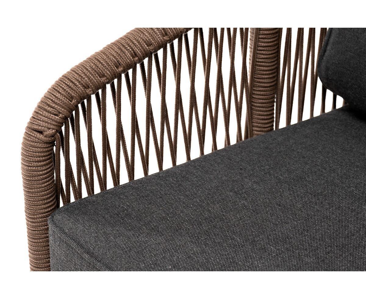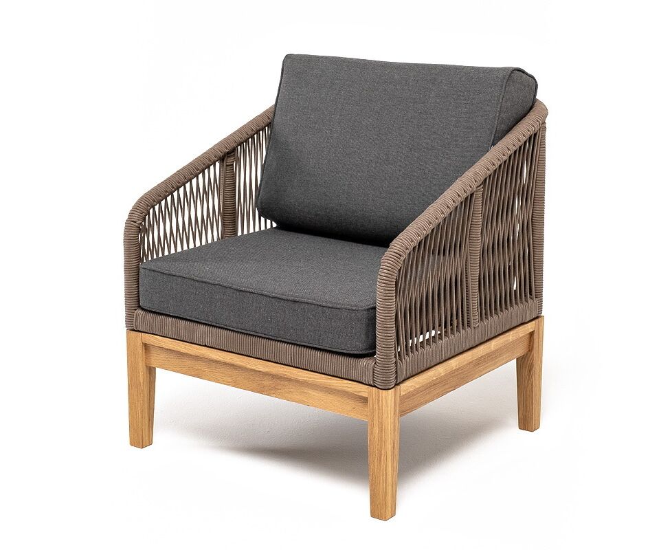 "Канны" кресло плетеное из роупа, основание дуб, роуп коричневый круглый, ткань темно-серая 027