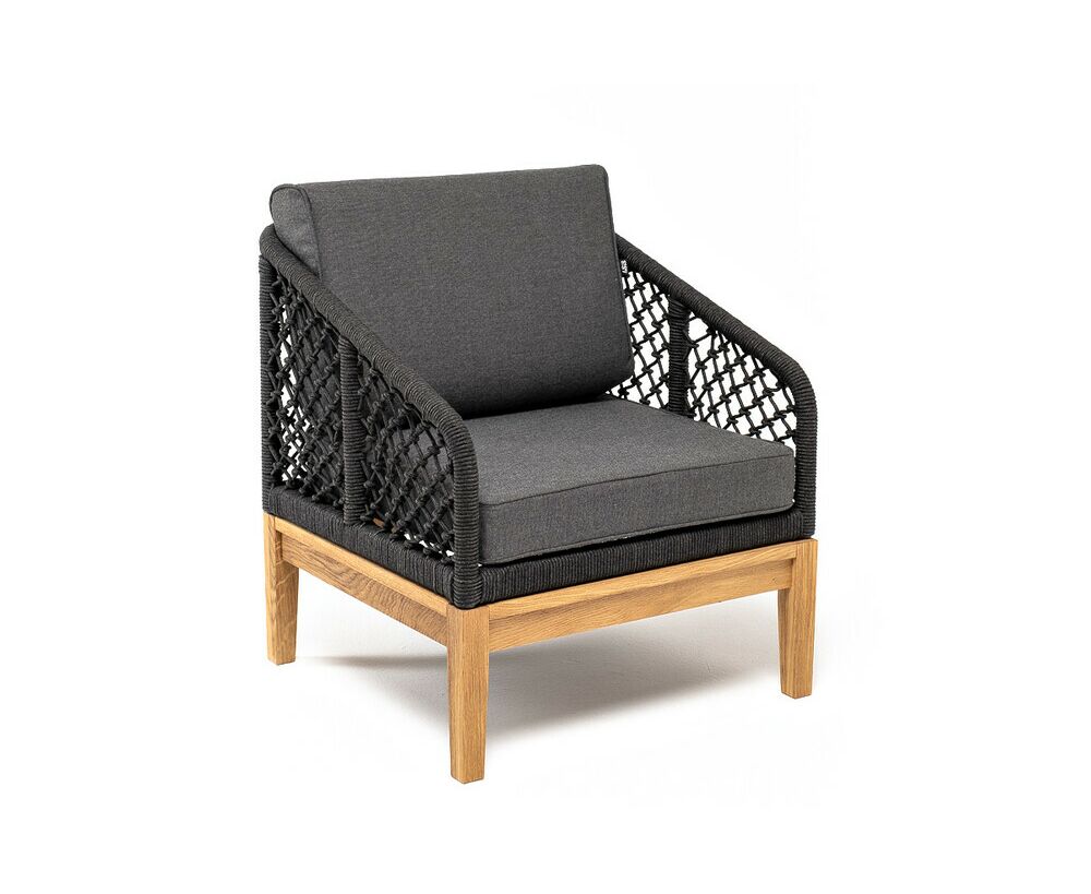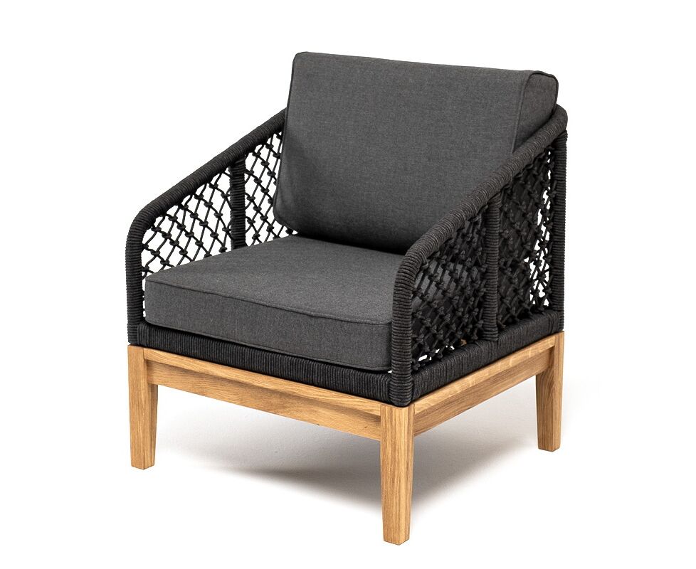 Кресло «Канны» с узловым плетением из роупа идеально подходит для комфортного отдыха в саду или на веранде.