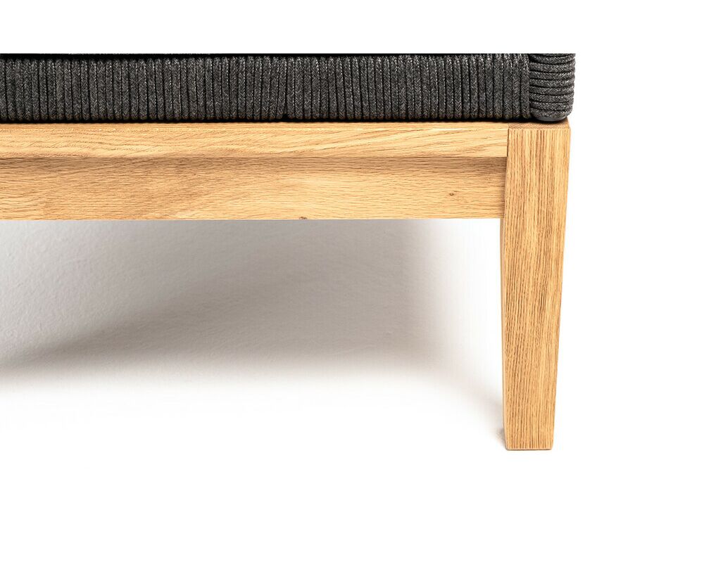 На боковинах - оплетка из синтетических лент, выполненных из полиэфирных волокон высокой прочности. Цвет плетения - темно-серый. Вид плетения - узелковый, создавался вручную. Основание - дуб.