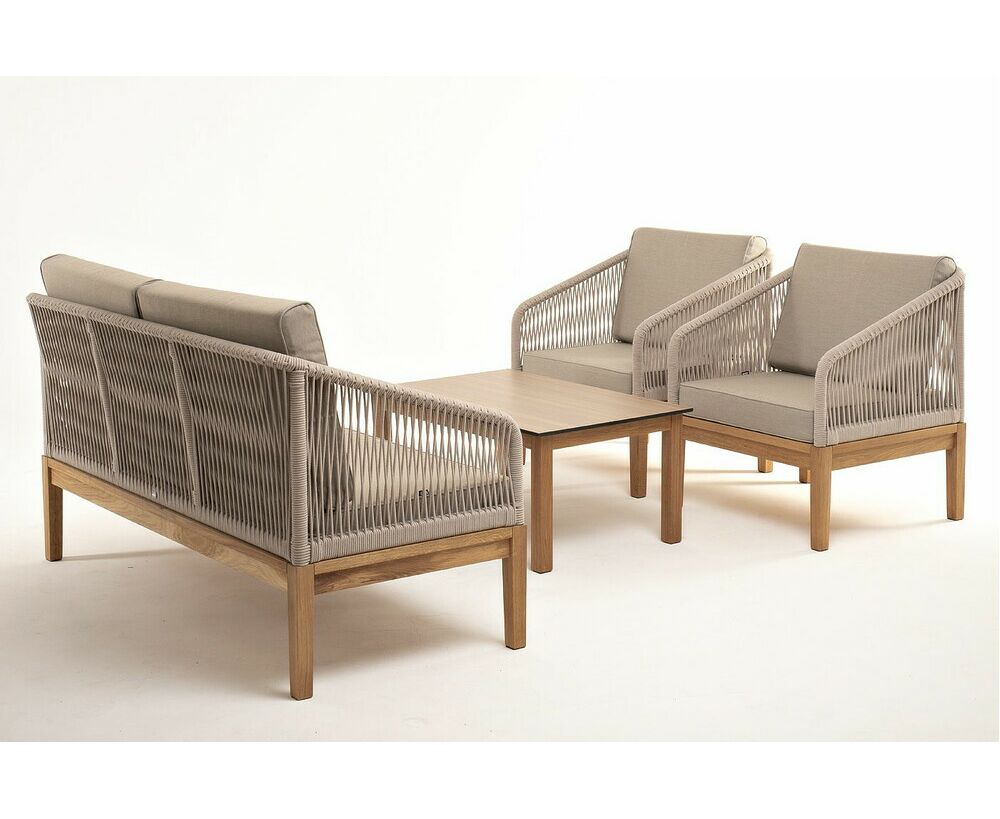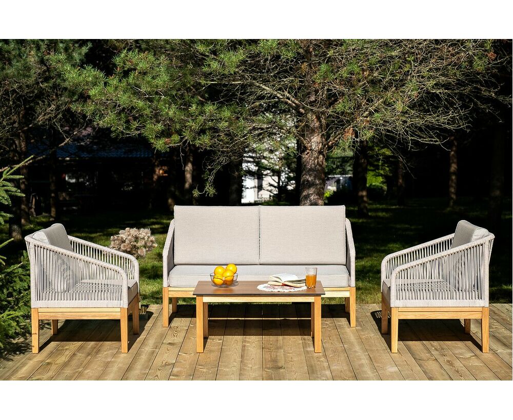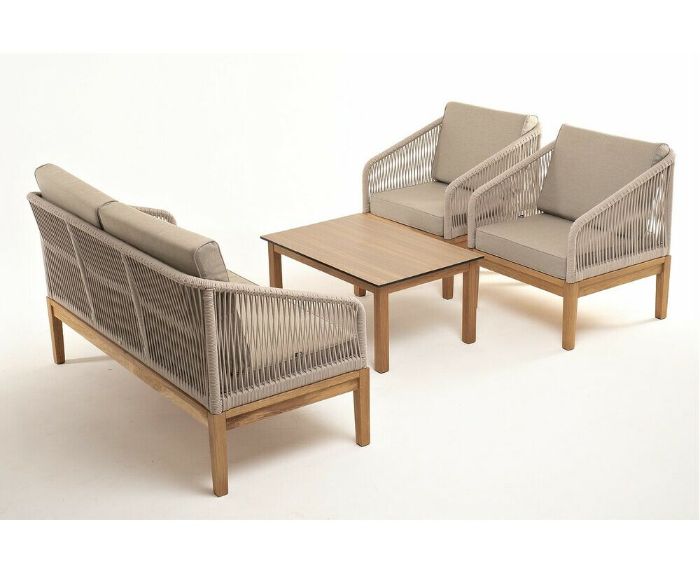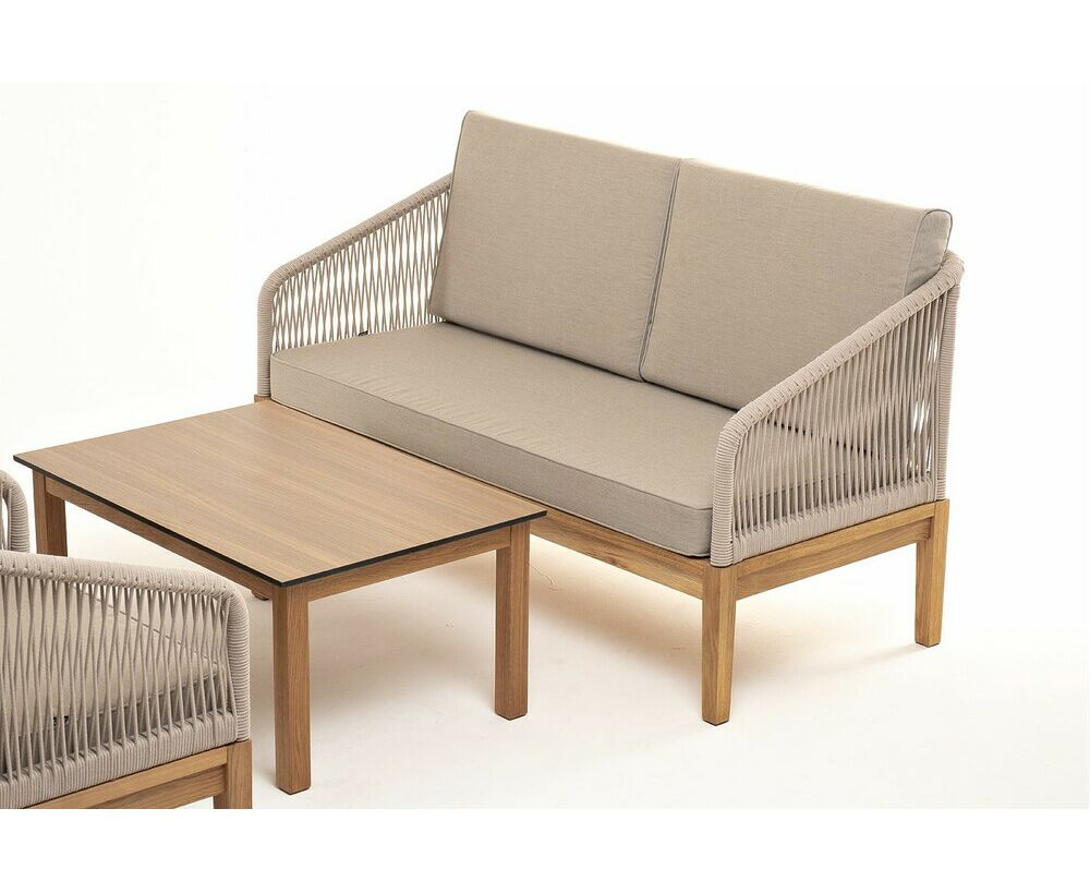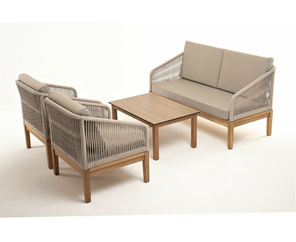 "Канны" лаунж-зона 4-местная из роупа со столиком "Канны" цвета "дуб", основание дуб, роуп бежевый