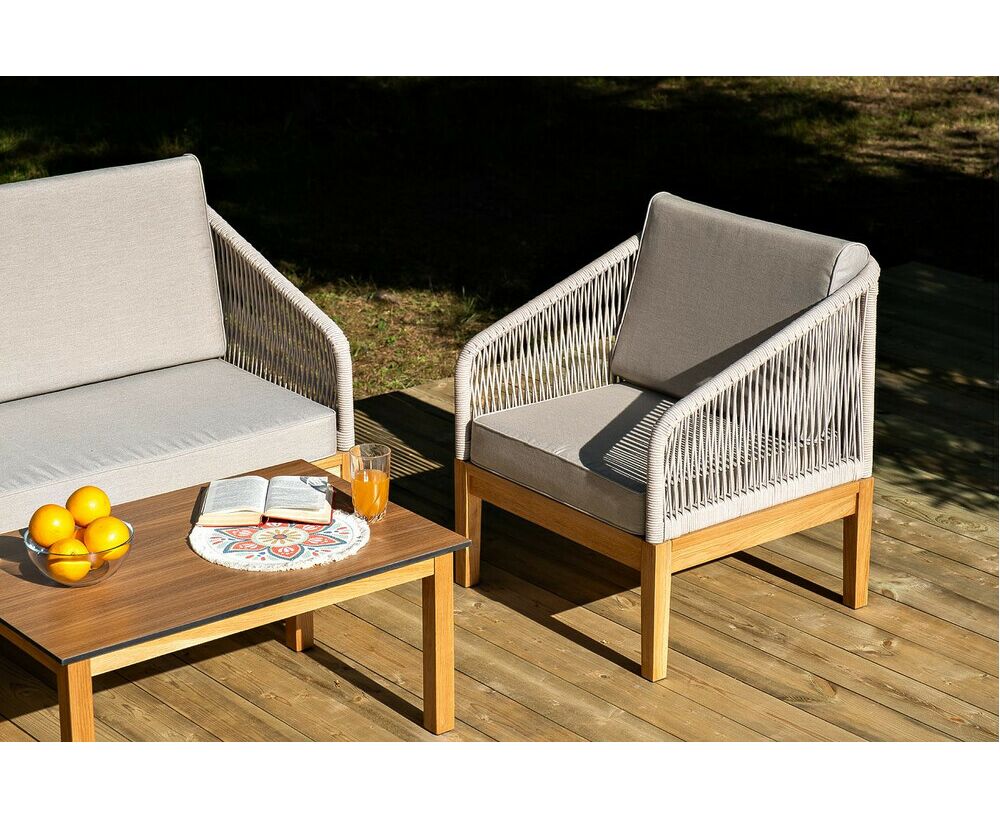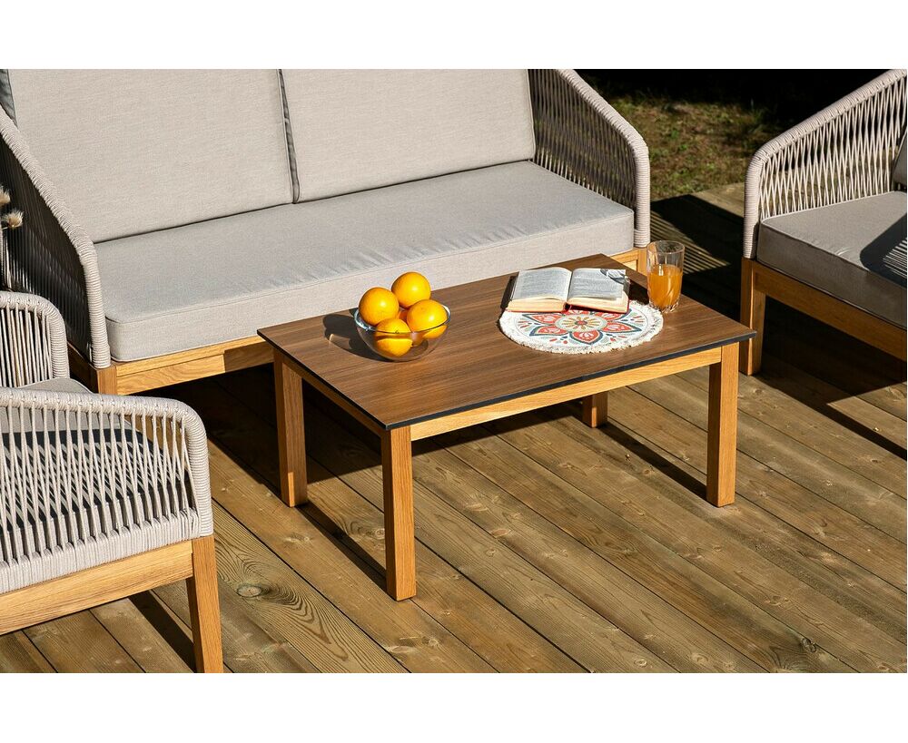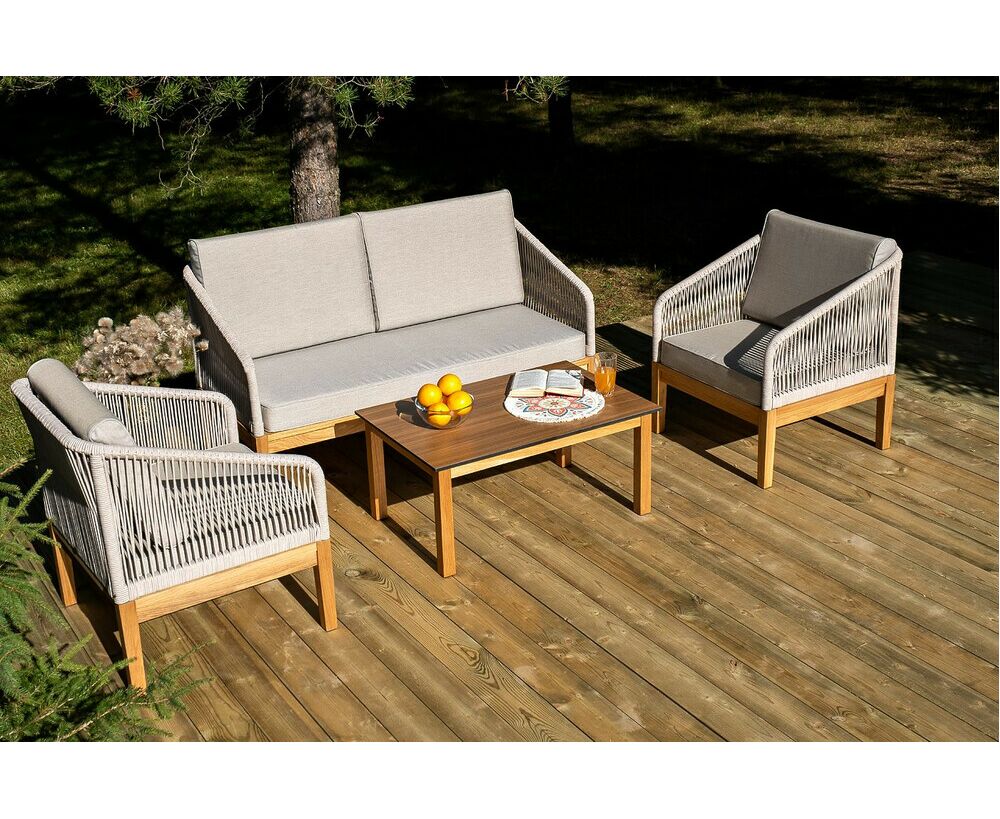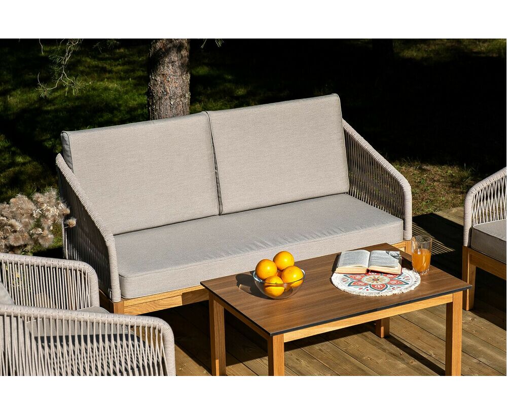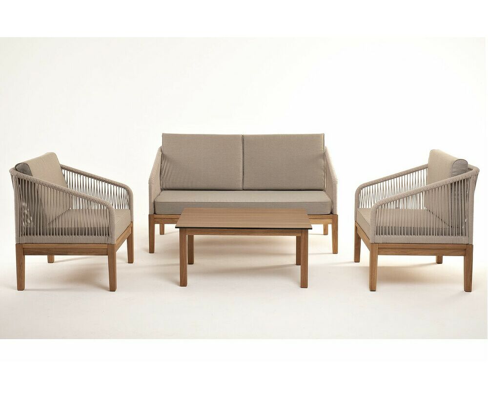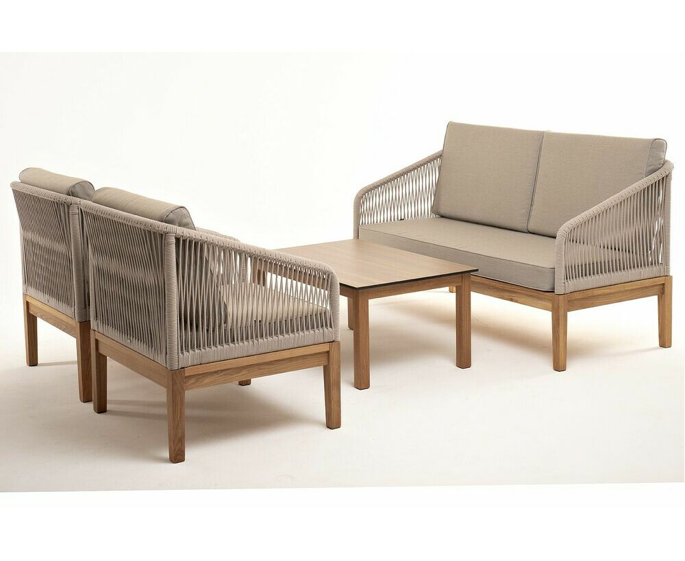 "Канны" лаунж-зона 4-местная из роупа со столиком "Канны" цвета "дуб", основание дуб, роуп бежевый