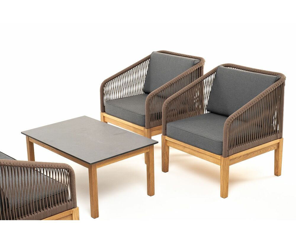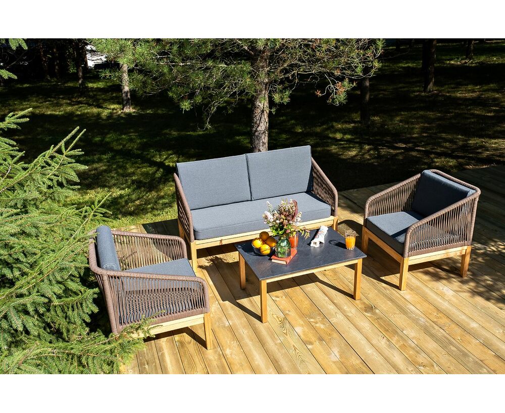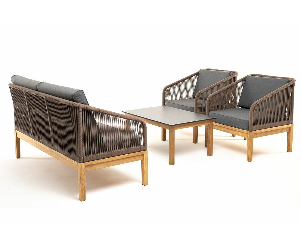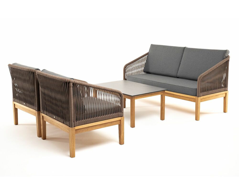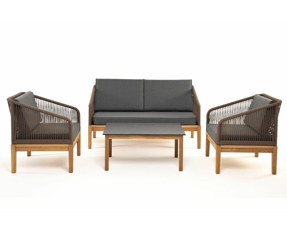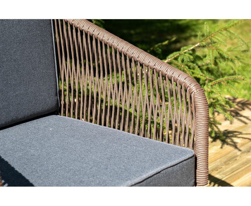 "Канны" лаунж-зона 4-местная из роупа со столом "Гранада" (серый гранит), основание дуб, роуп коричневый, ткань темно-серая