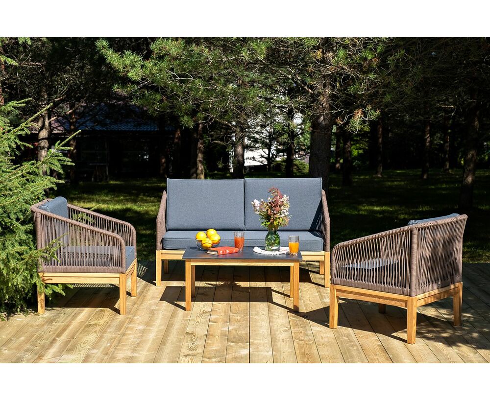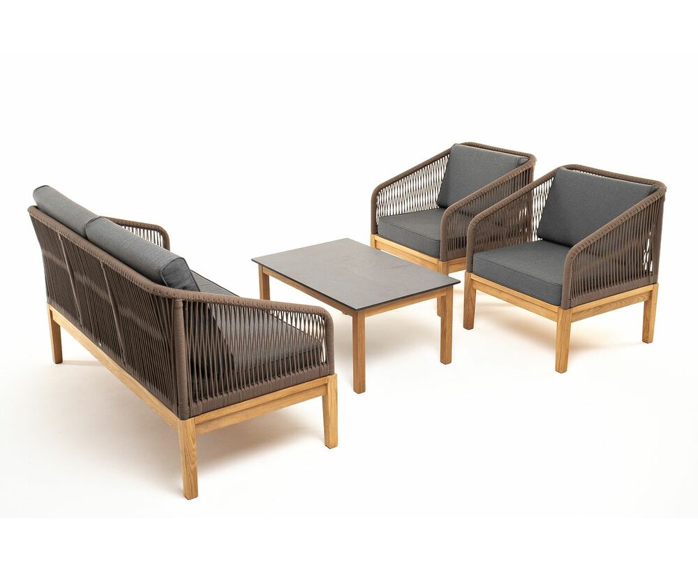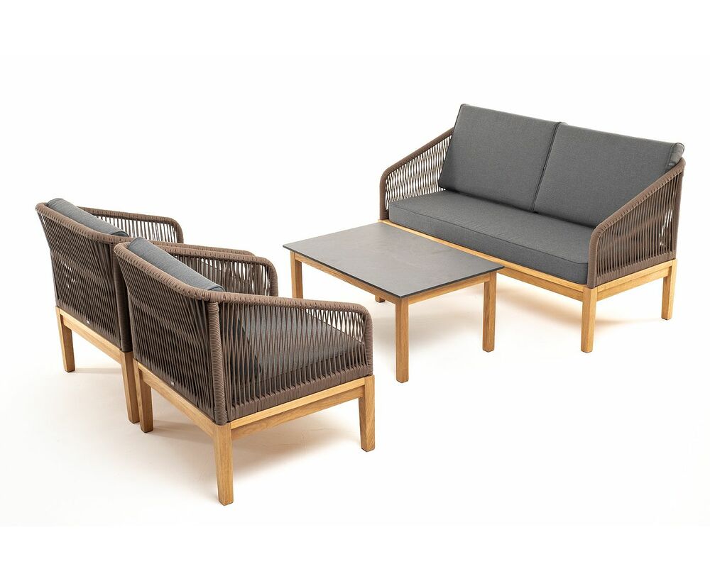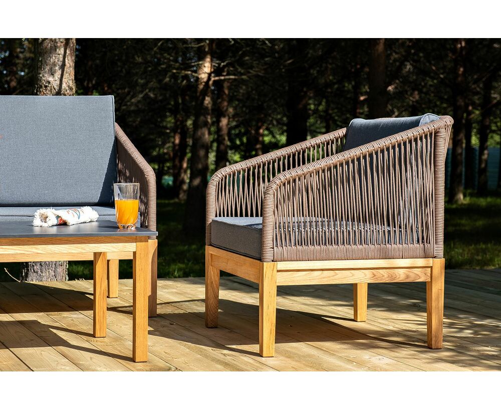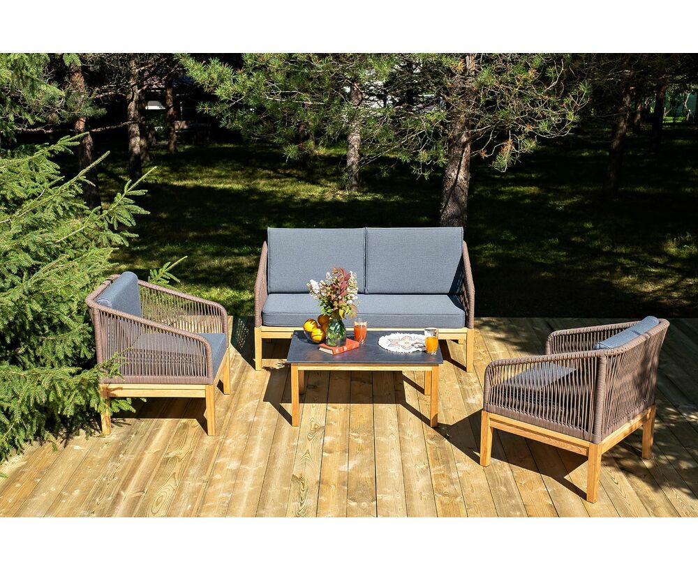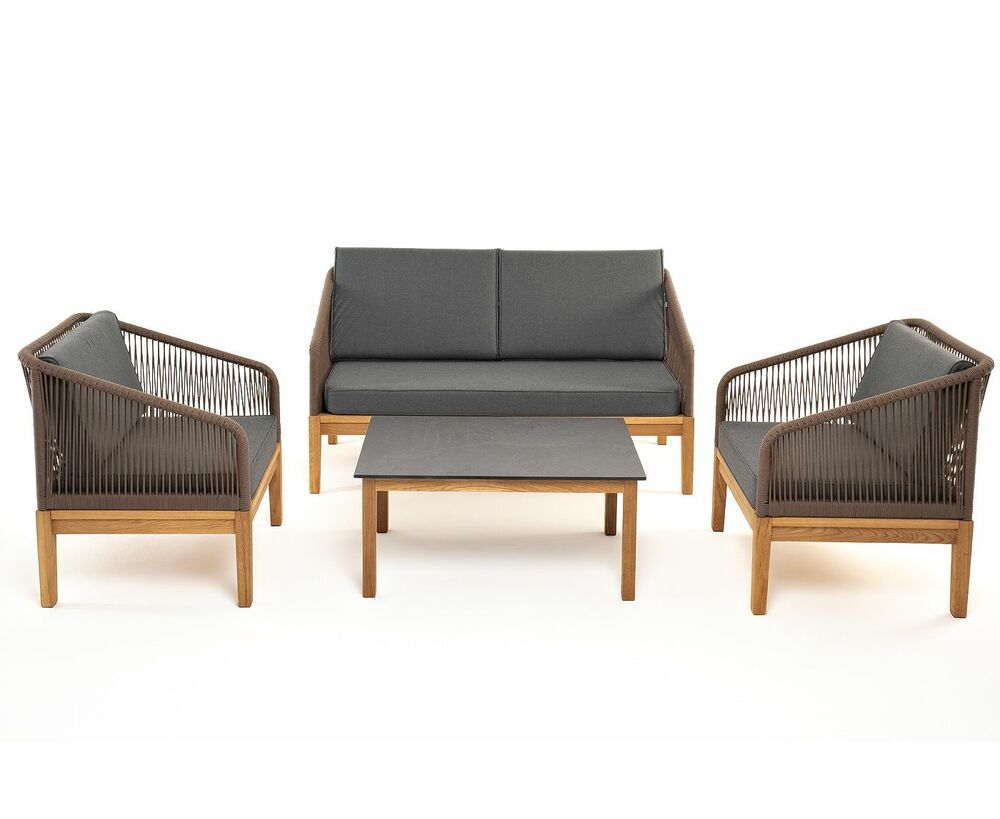 "Канны" лаунж-зона 4-местная из роупа со столом "Гранада" (серый гранит), основание дуб, роуп коричневый, ткань темно-серая