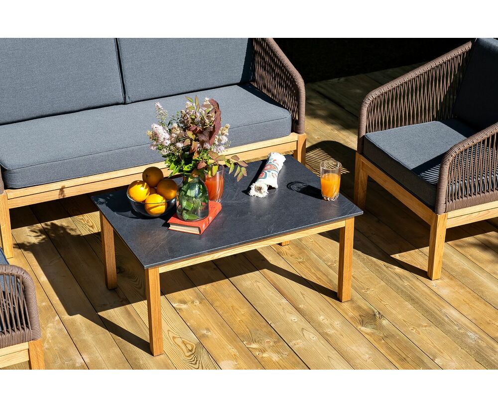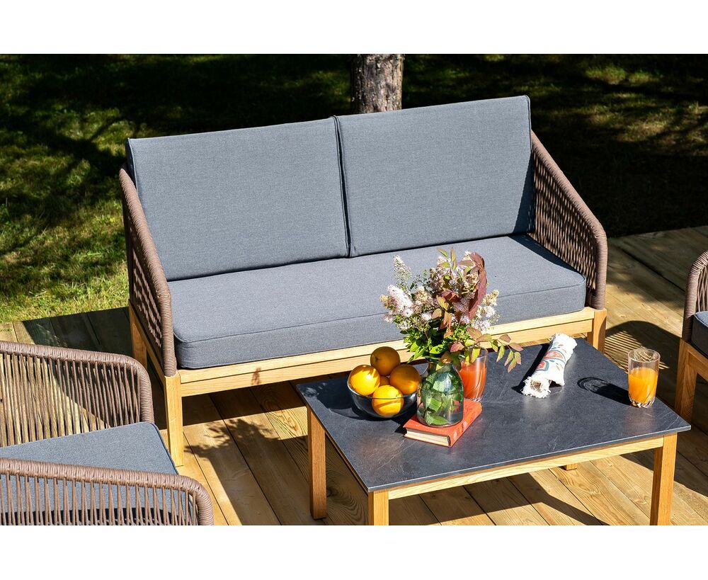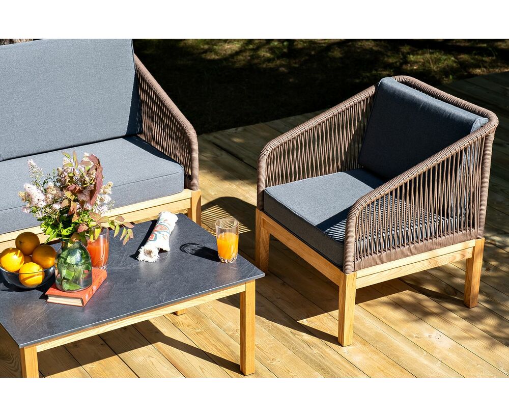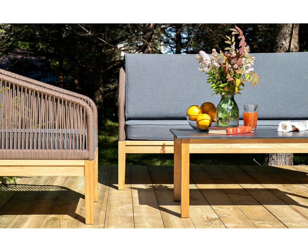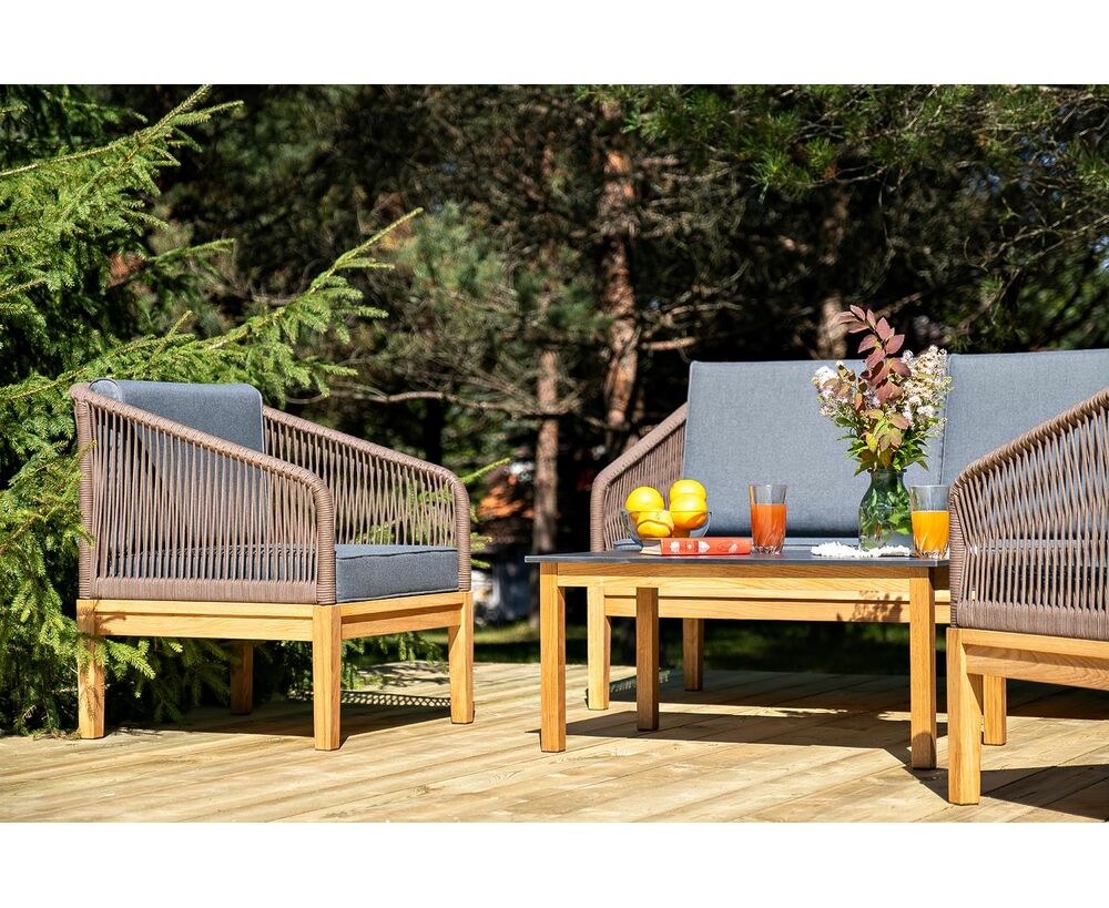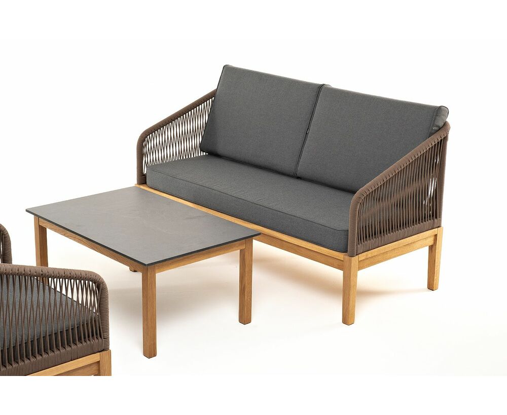 "Канны" лаунж-зона 4-местная из роупа со столом "Гранада" (серый гранит), основание дуб, роуп коричневый, ткань темно-серая