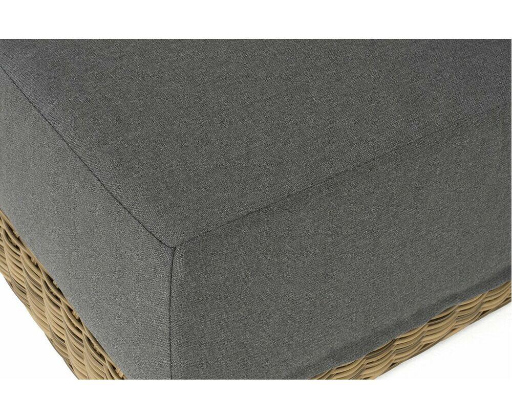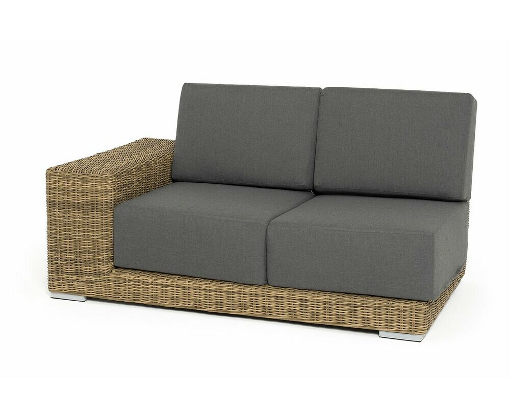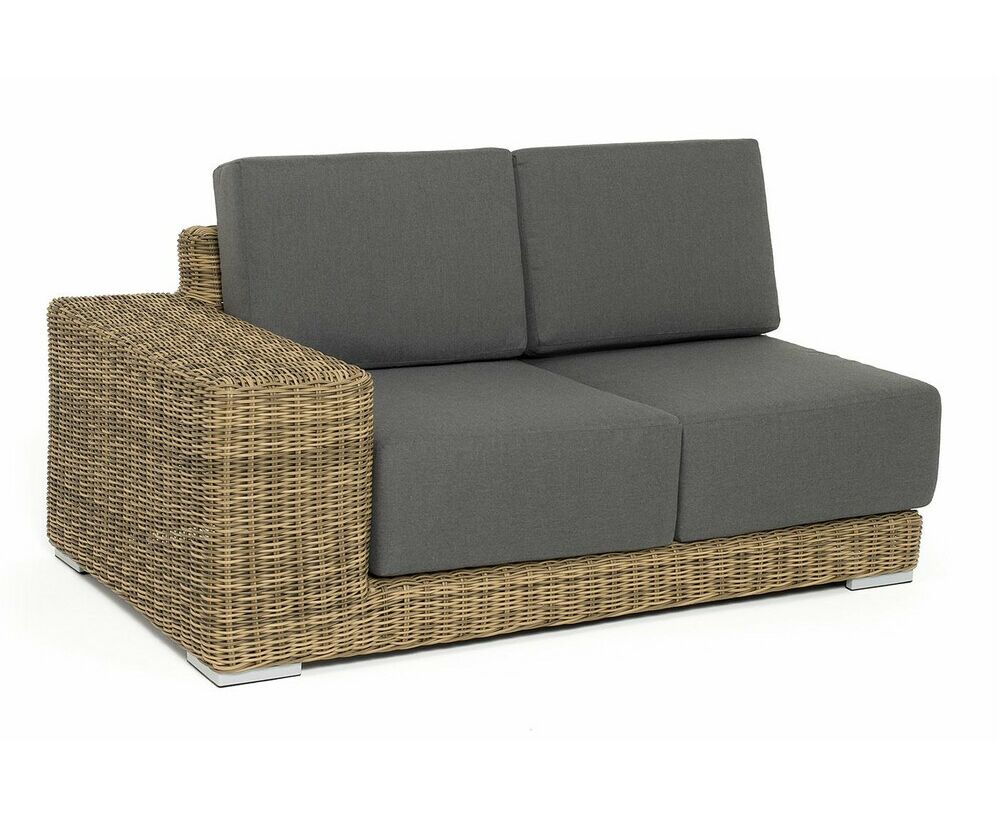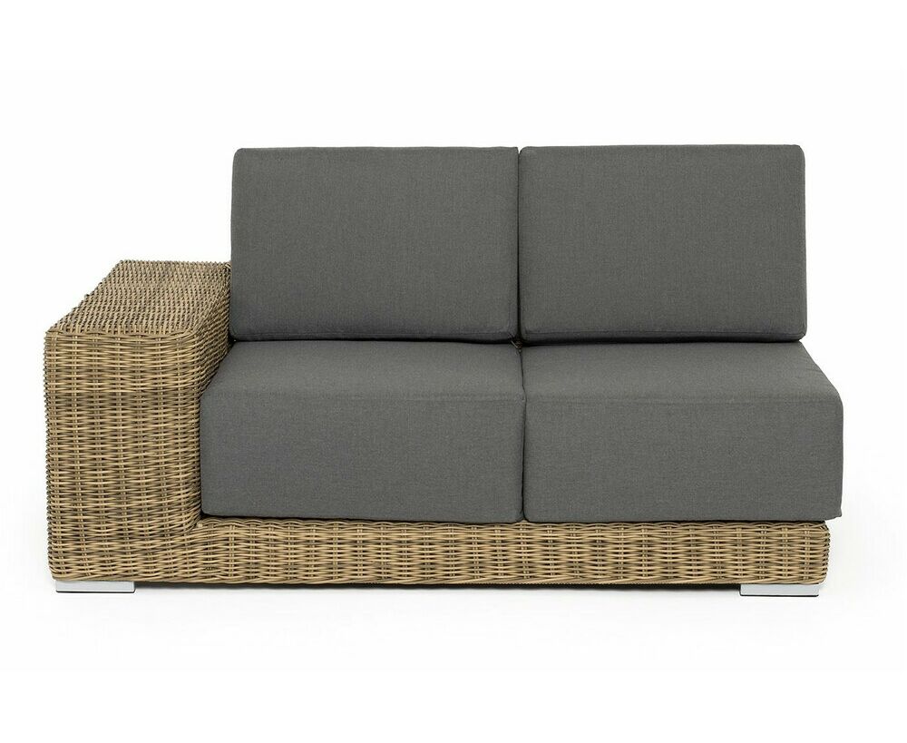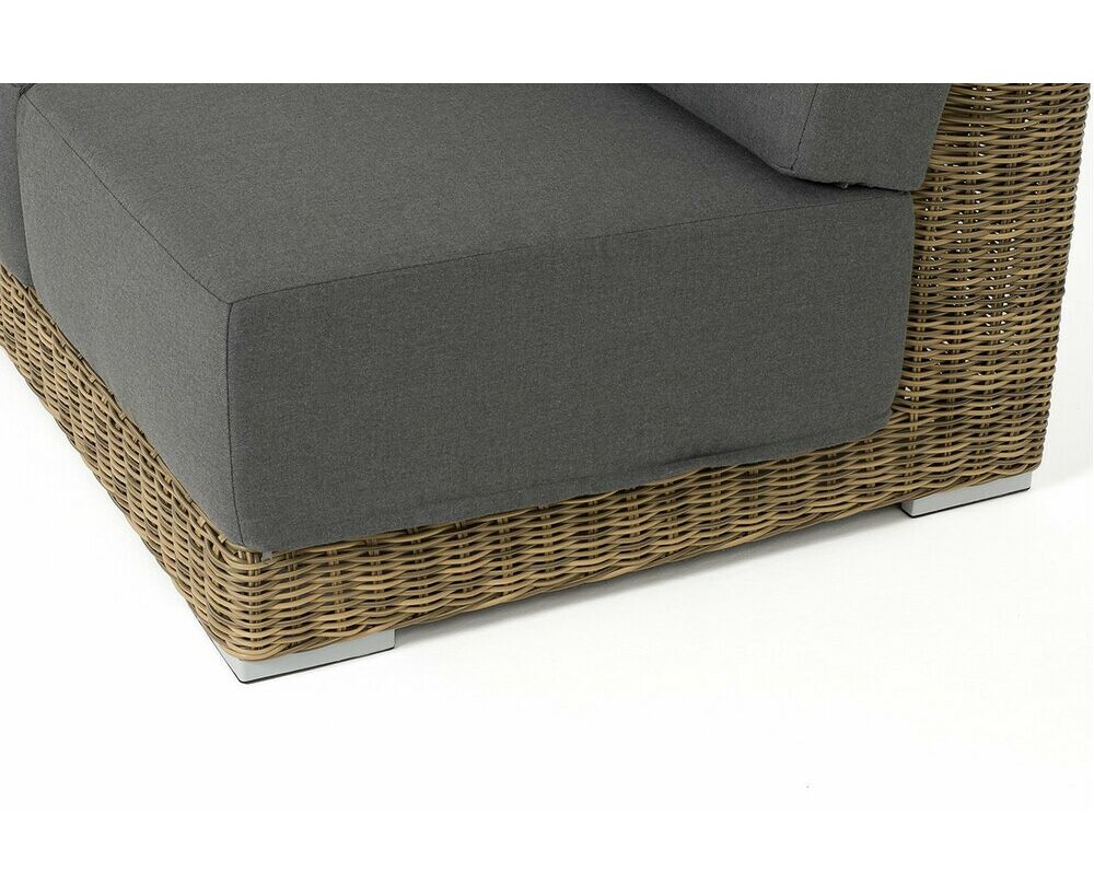 Правый модуль «Капри», выполненный из круглого искусственного ротанга соломенного оттенка, позволяет использовать не только как самостоятельный элемент, но и быть частью лаунж-зоны, в которую данная модель превосходно интегрируется.