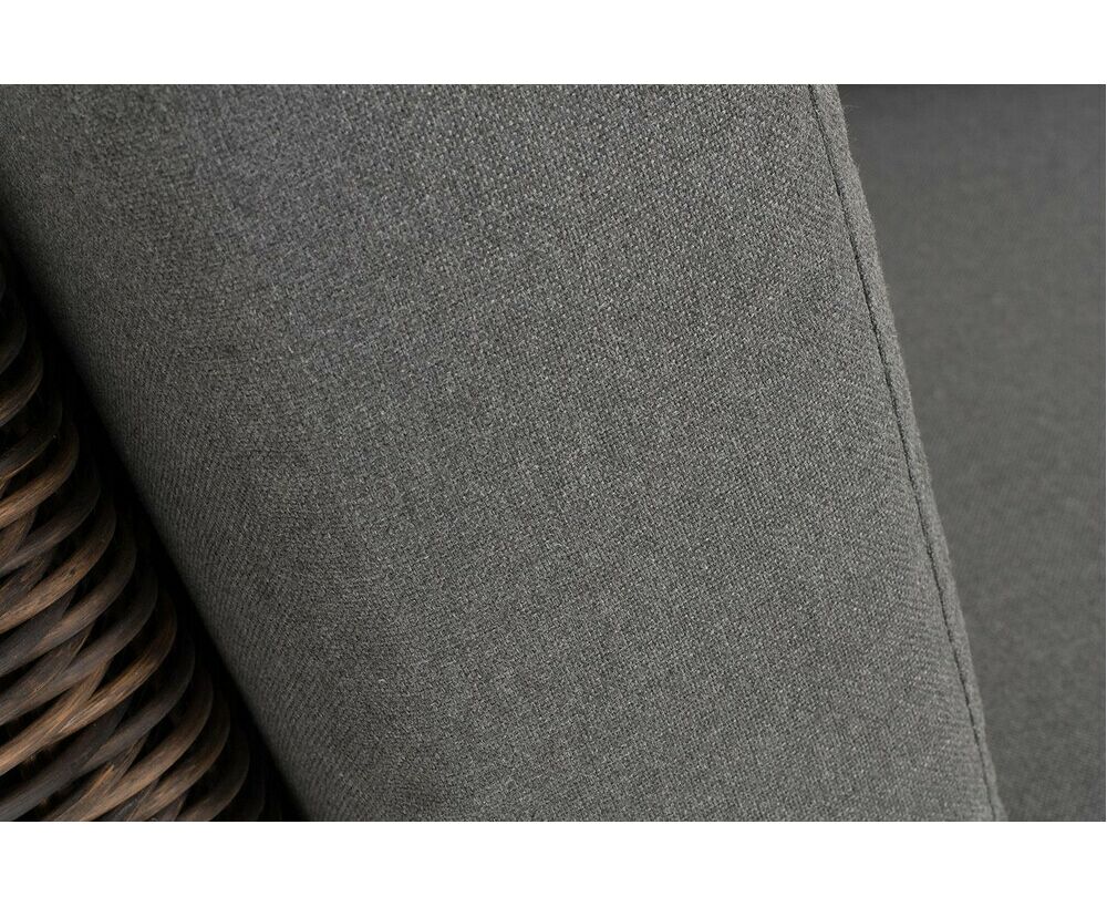 Основа выполнена из алюминиевого каркаса, декорированного вручную оплеткой коричневого цвета. Комплектацией предусмотрены подушки, выполенные из полиэстера с влагоотводящей пропиткой.