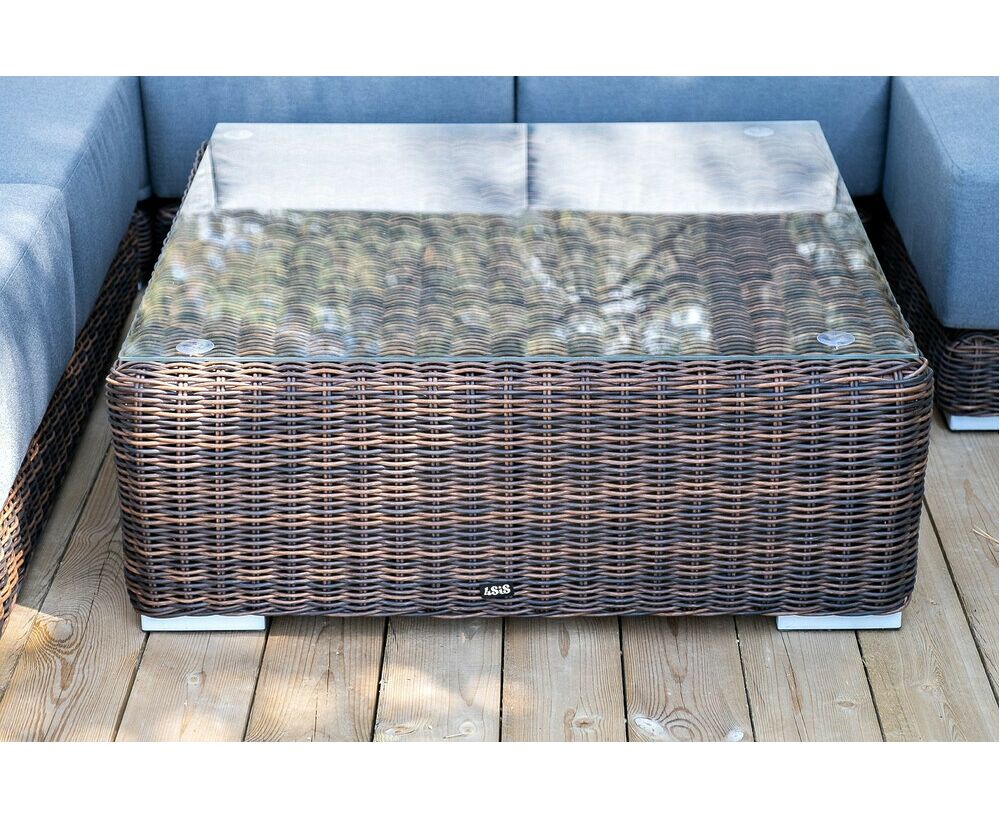 Плетеный столик имеет стеклянную столешницу, изготовленную из прочного закаленного стекла, толщина - 5 мм.