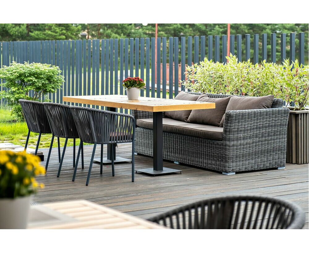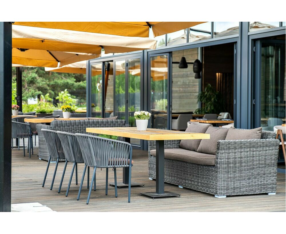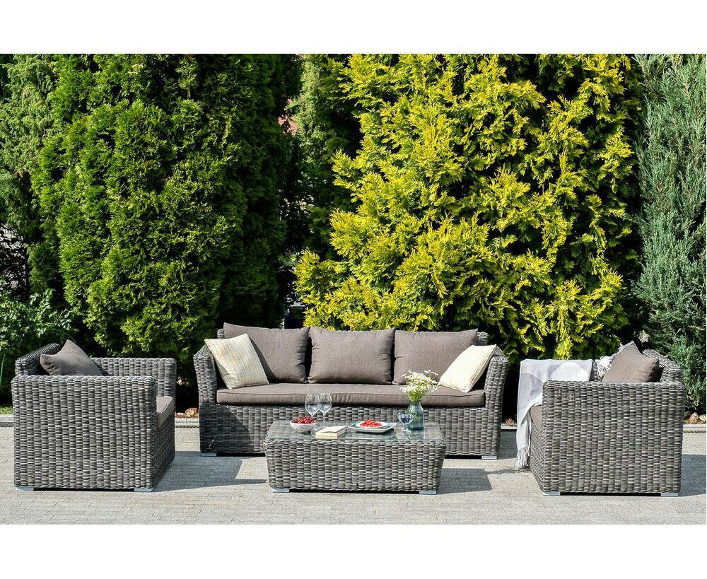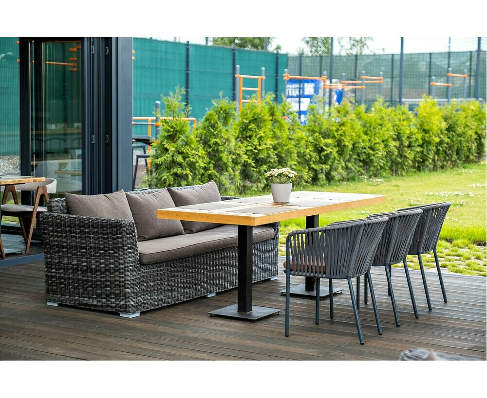 Диван из искусственного ротанга "Капучино" в своей основе имеет каркас из алюминия, который оплетен вручную круглым плетением графитового цвета.