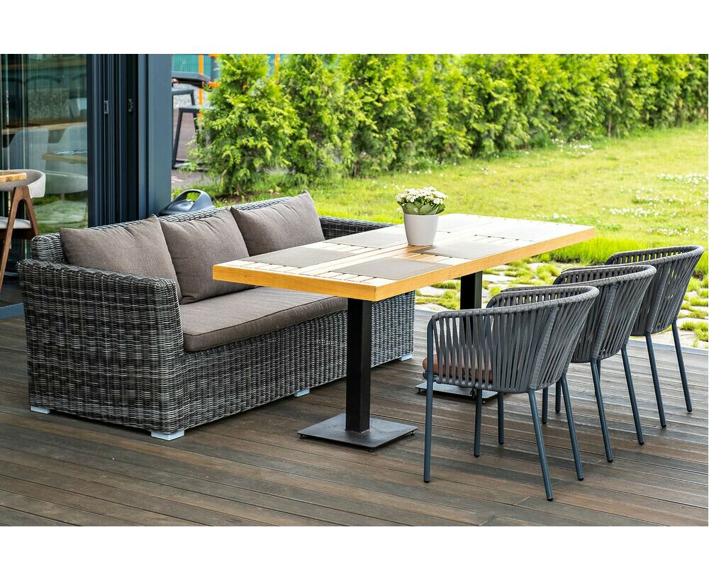 Размеры модели: 2220×865×815 мм, которые позволяют разместить трех человек. Подушки, входящие в комплект, выполнены из высококачественного полиэстера с влагоотталкивающей пропиткой.