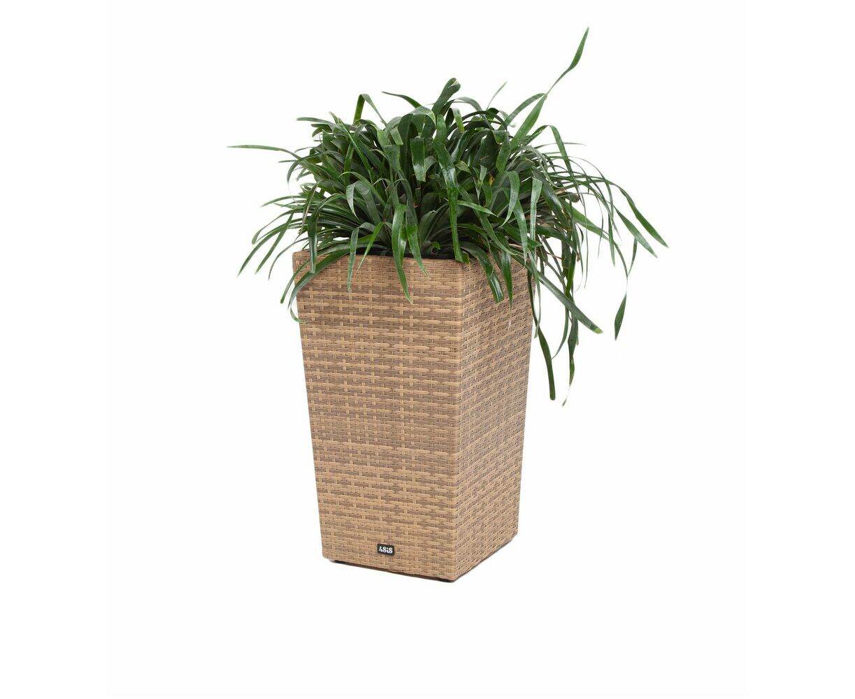 Плетеное кашко "Капучино" подходит для комнатных и уличных растений. Изготовлено из плоского искусственного ротанга соломенного цвета. Обладает высокой стойкостью к погодным условиям, перепадам температуры, не подвергается коррозии, поэтому можно использовать на открытом воздухе круглый год.