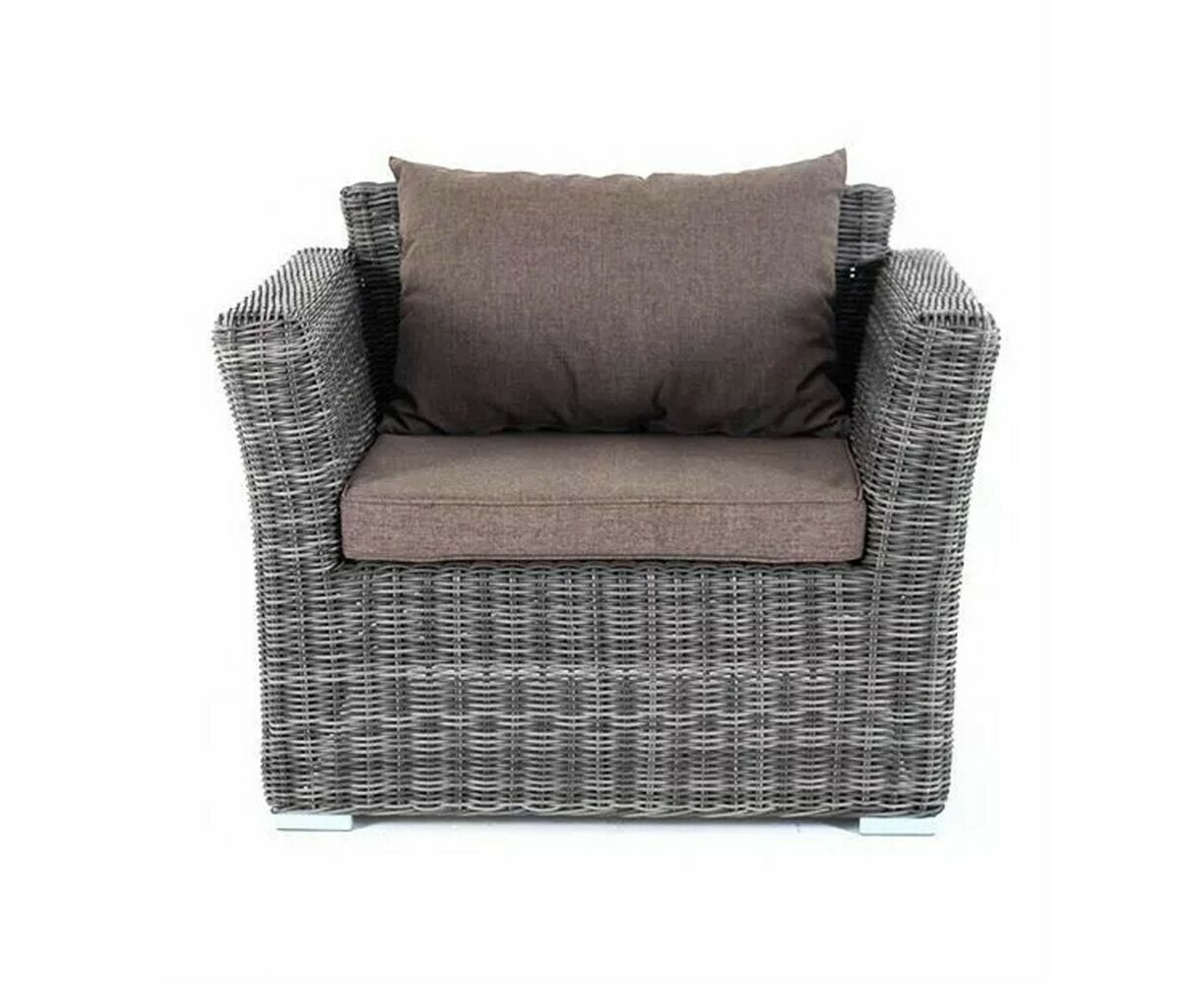 Кресло из круглого искусственного ротанга "Капучино" графитового цвета, прекрасно подходит для обустройства веранды, а относительно небольшой вес, который составляет 20 кг, увеличивает мобильность данной модели.