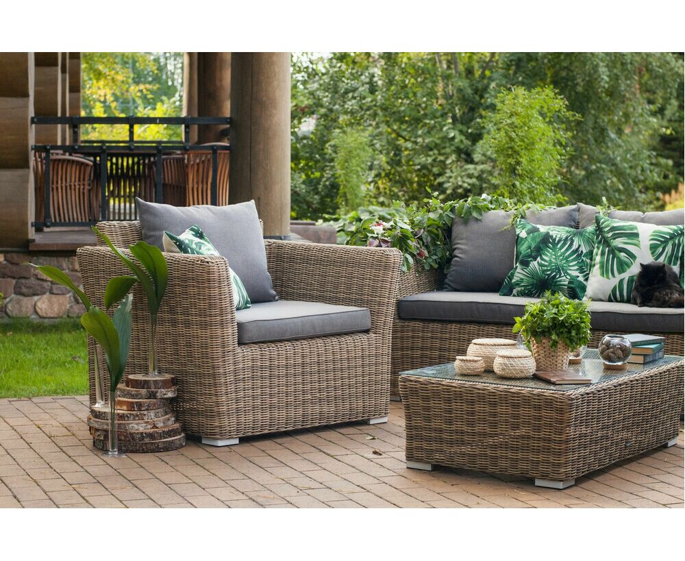 Две подушки серо-коричневого цвета представлены в комплекте с садовым креслом. Изделия пошиты из полиэстера плотностью 230гр/м2. В обязательном порядке материал обрабатывается влагоотталкивающей пропиткой для усиления своих защитных свойств.