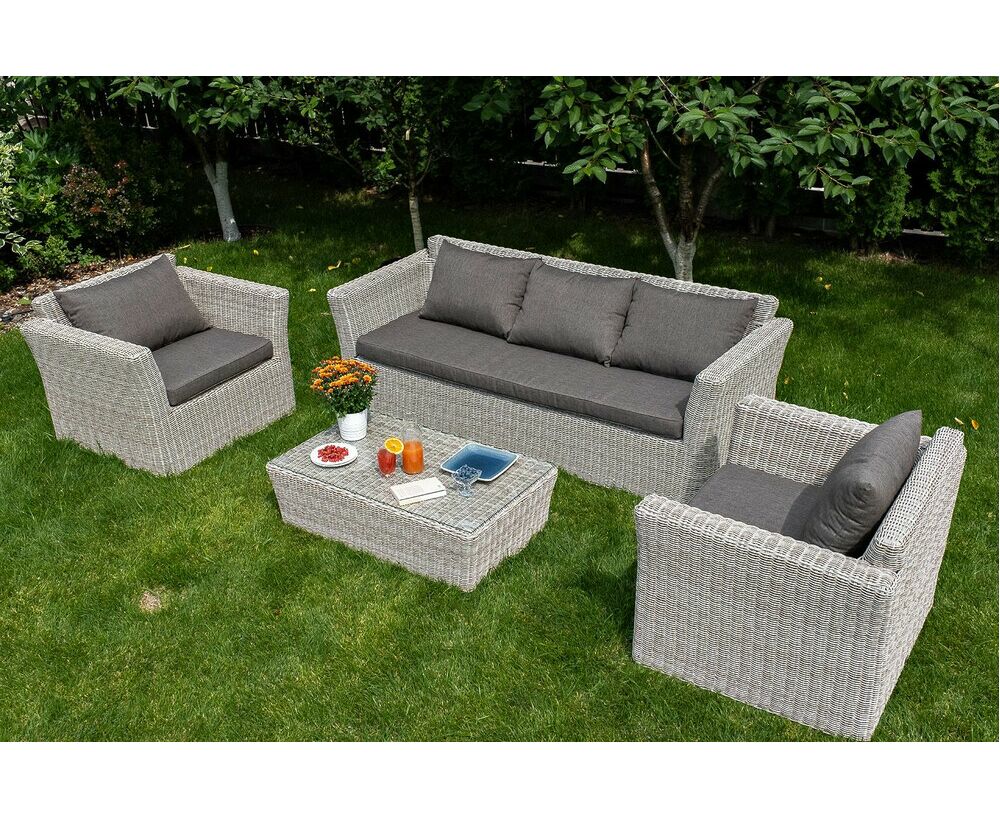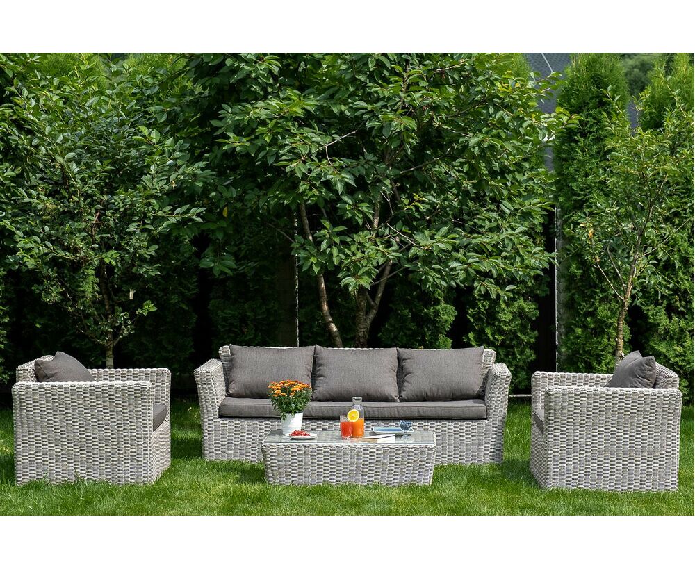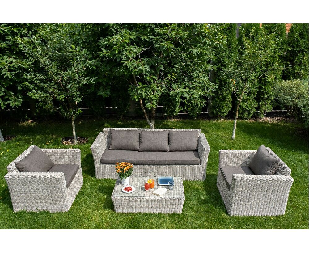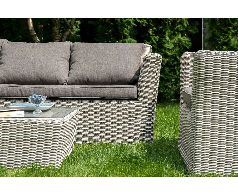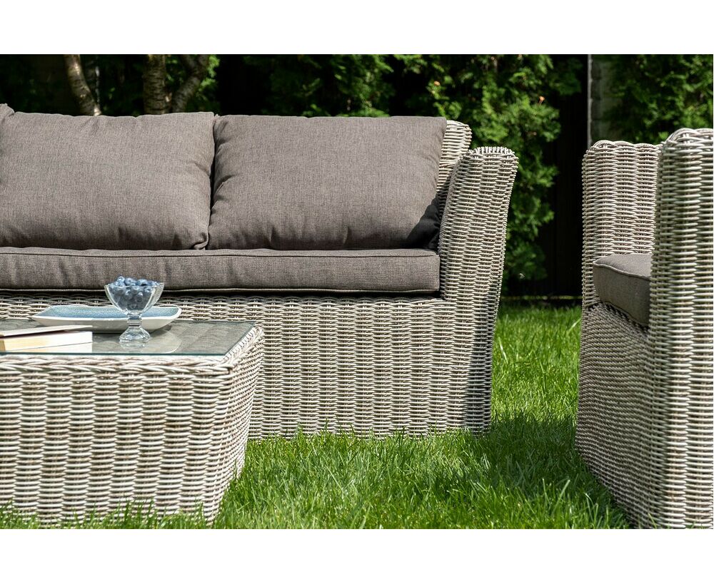 Кресла и диван идут в комплекте с подушками с серо-коричневыми чехлами. Они пошиты из качественного полиэстера с плотностью 230гр/м2. Материал предварительно проходит обработку влагоотталкивающей пропиткой. Столик дополнен практичной столешницей из стекла толщиной 5 мм. "Капучино" диван из искусственного ротанга трехместный, цвет бежевый 1шт. 2 220Х865Х815, "Капучино" кресло из искусственного ротанга, цвет бежевый 2шт. 1 040Х865Х815, "Капучино" журнальный столик из искусственного ротанга, цвет бежевый 1шт. 1 100Х660Х340,