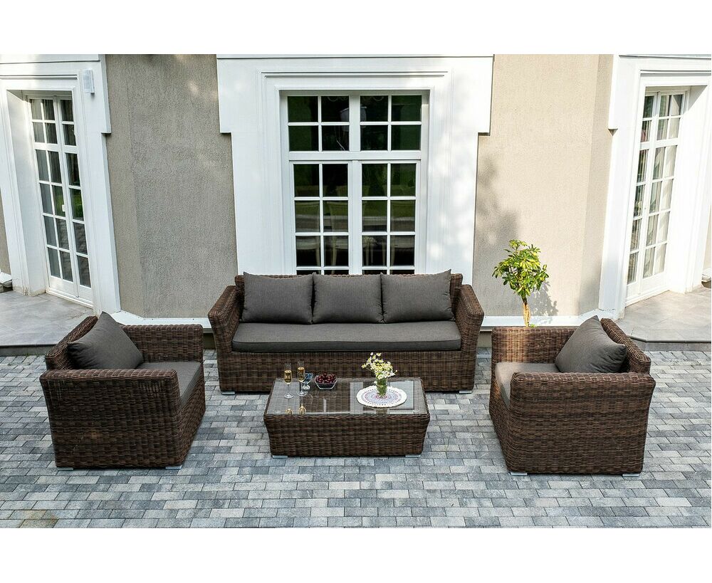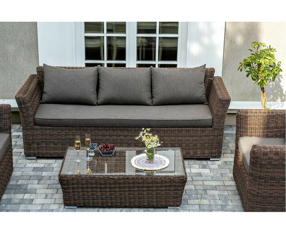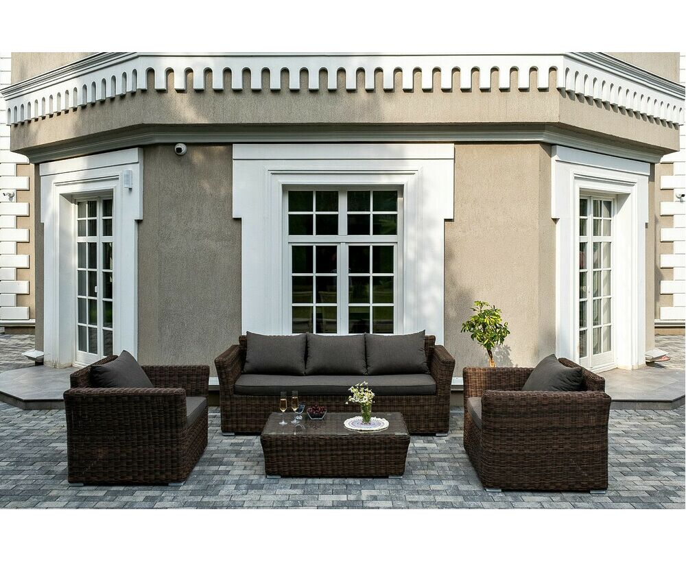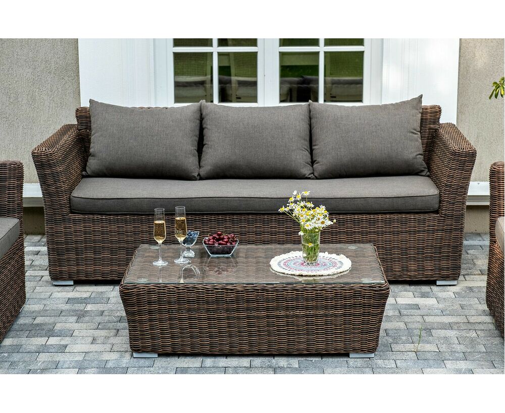 "Капучино" кресло из искусственного ротанга, цвет коричневый 2шт. 1 040Х865Х815, "Капучино" журнальный столик из искусственного ротанга, цвет коричневый 1шт. 1 100Х660Х340, "Капучино" диван из искусственного ротанга трехместный, цвет коричневый 1шт. 2 220Х865Х815,