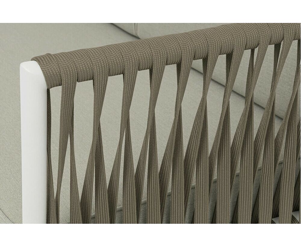 "Касабланка" диван 3-местный плетеный из роупа, каркас алюминий светло-серый (RAL7035) муар, роуп серо-коричневый 23мм, ткань бежевая 15052