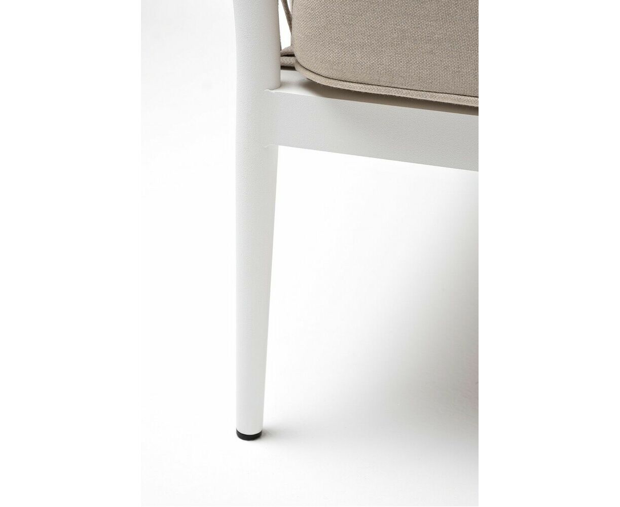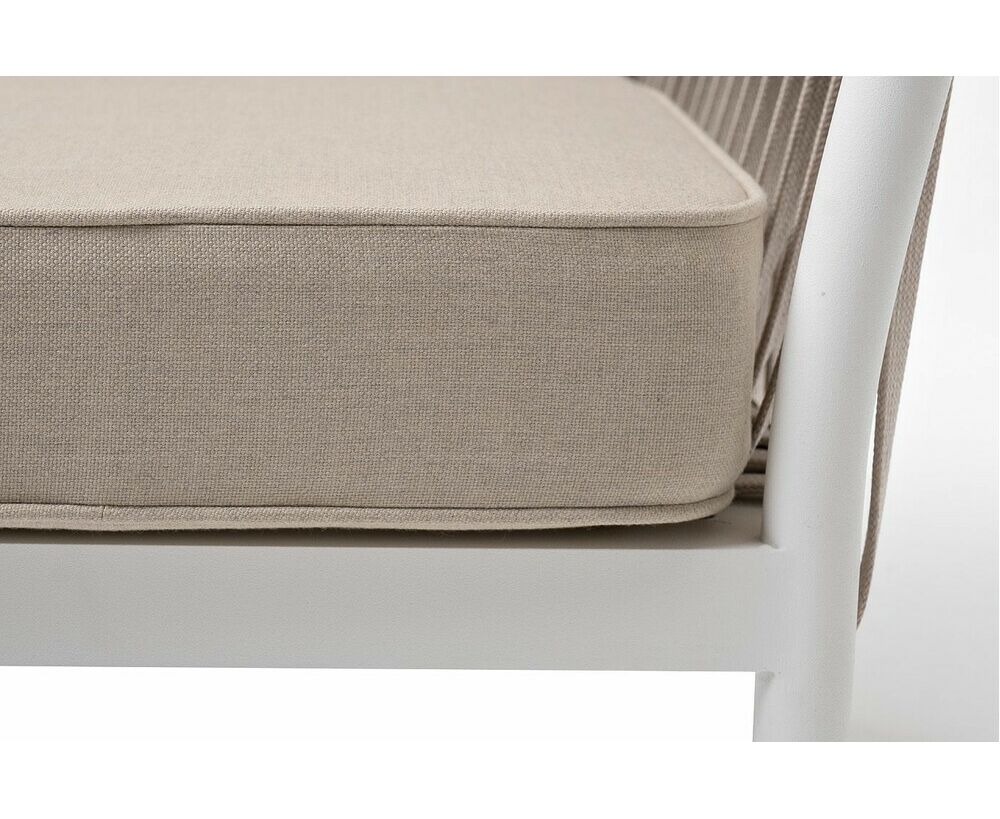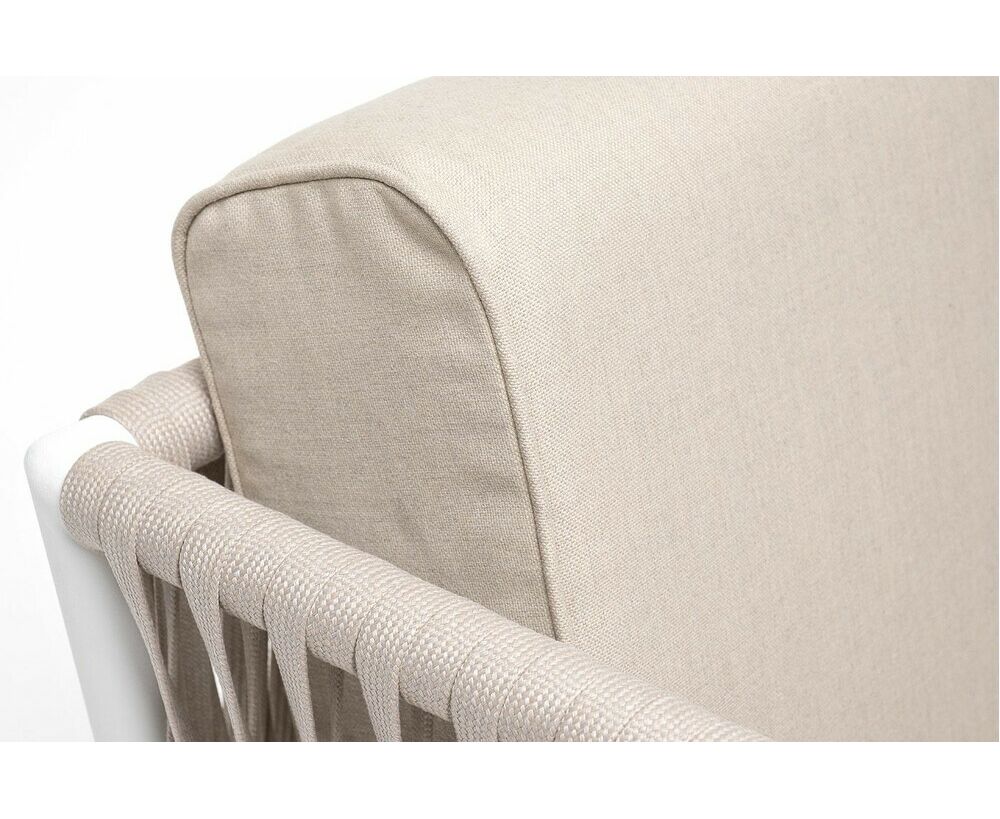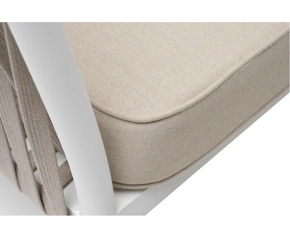 "Касабланка" кресло плетеное из роупа, каркас алюминий белый муар, роуп бежевый 20мм, ткань бежевая 052