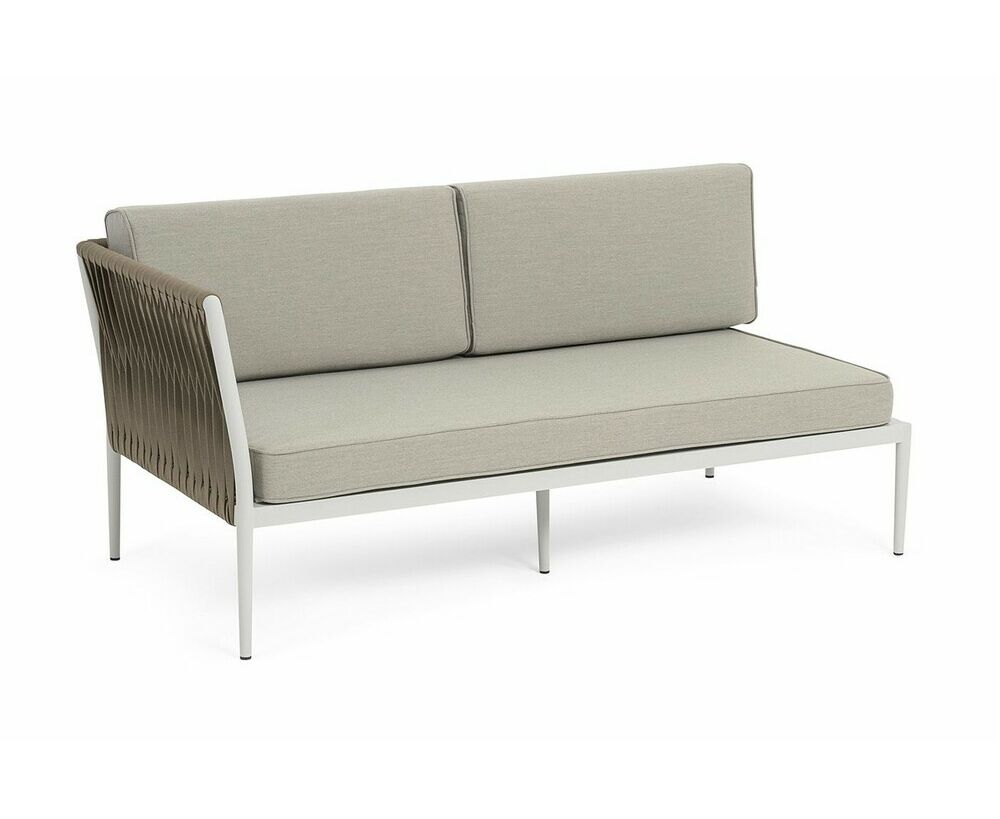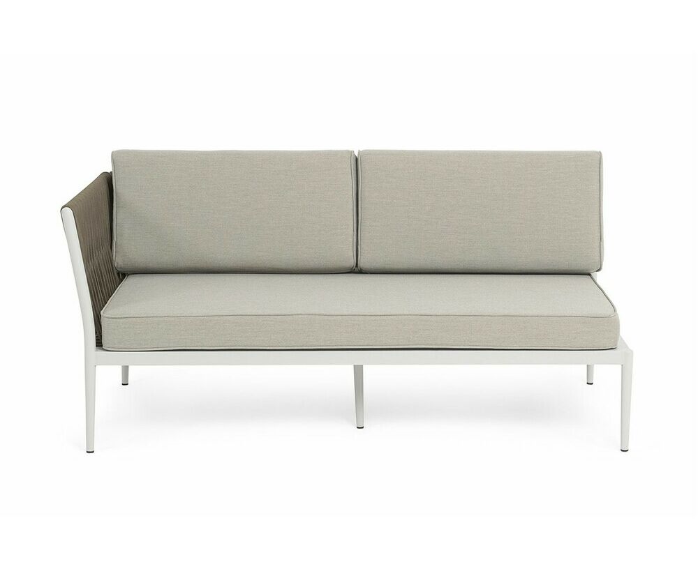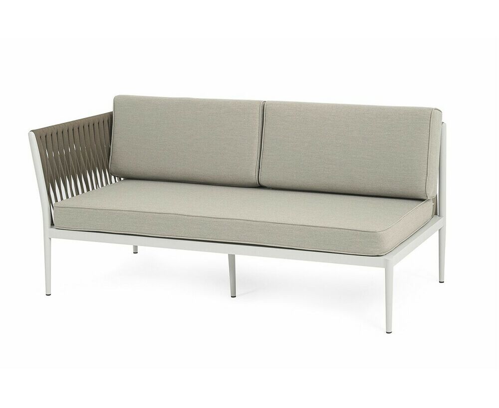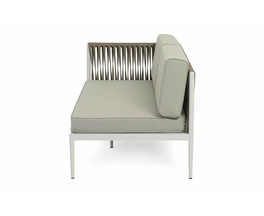 "Касабланка" правый модуль плетеный из роупа, каркас алюминий светло-серый (RAL7035) муар, роуп серо-коричневый 23мм, ткань бежевая 15052