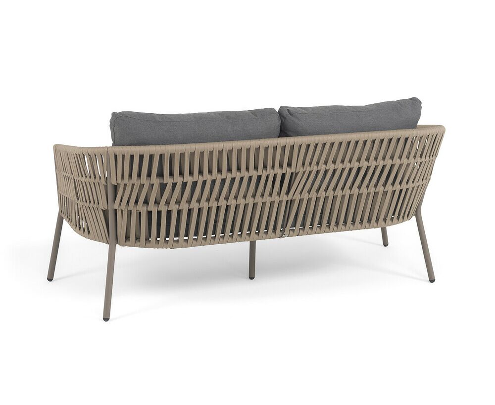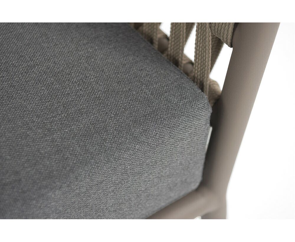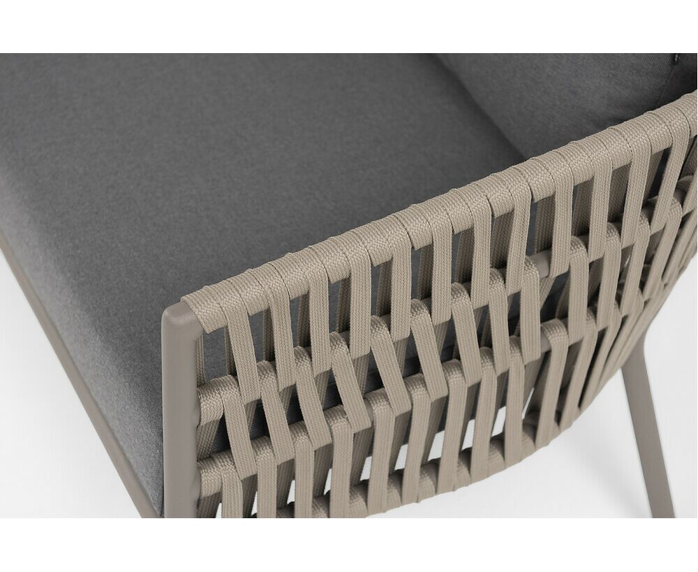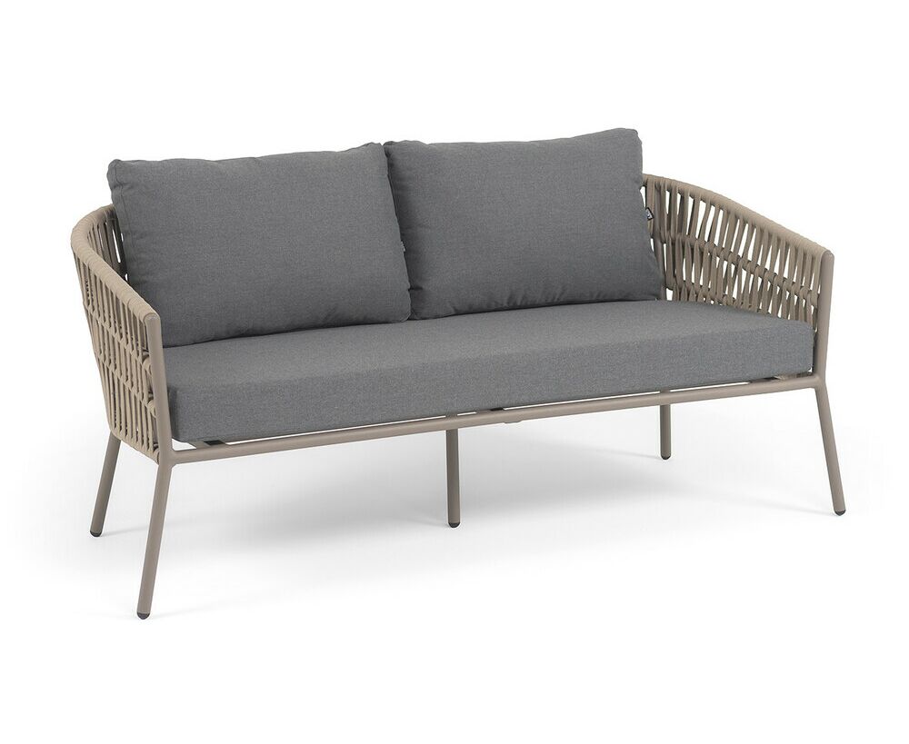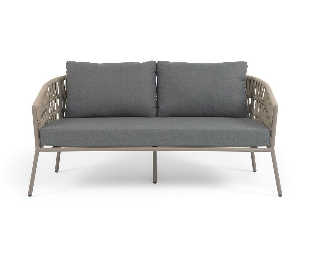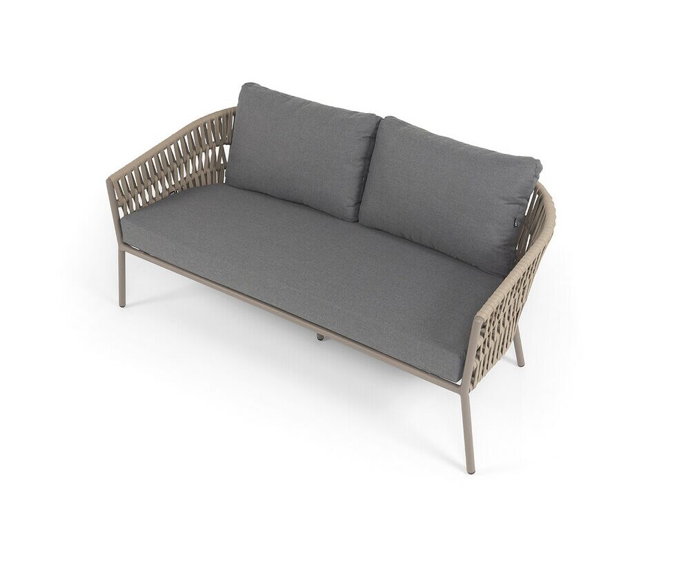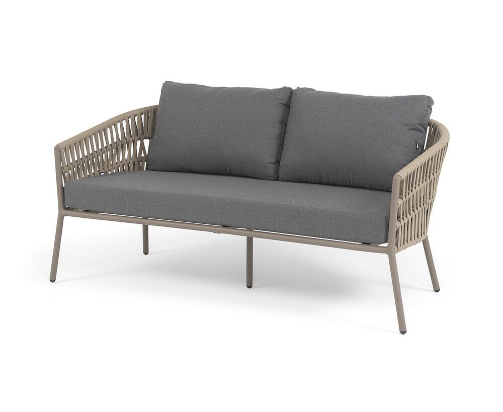 "Комо" диван 2-местный плетеный из роупа, каркас алюминий бежево-серый (RAL7006) муар, роуп серо-коричневый 23мм, ткань темно-серая 027