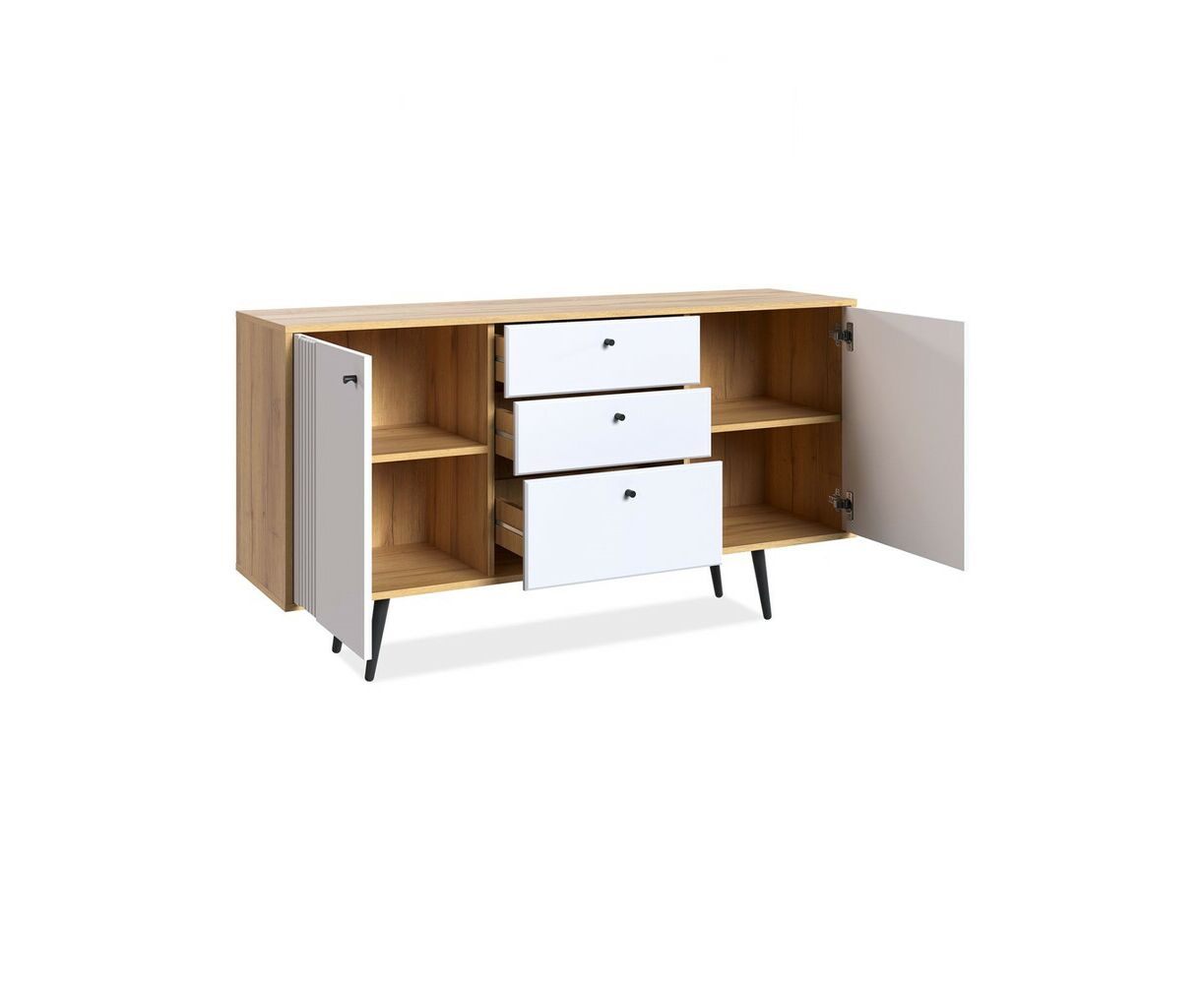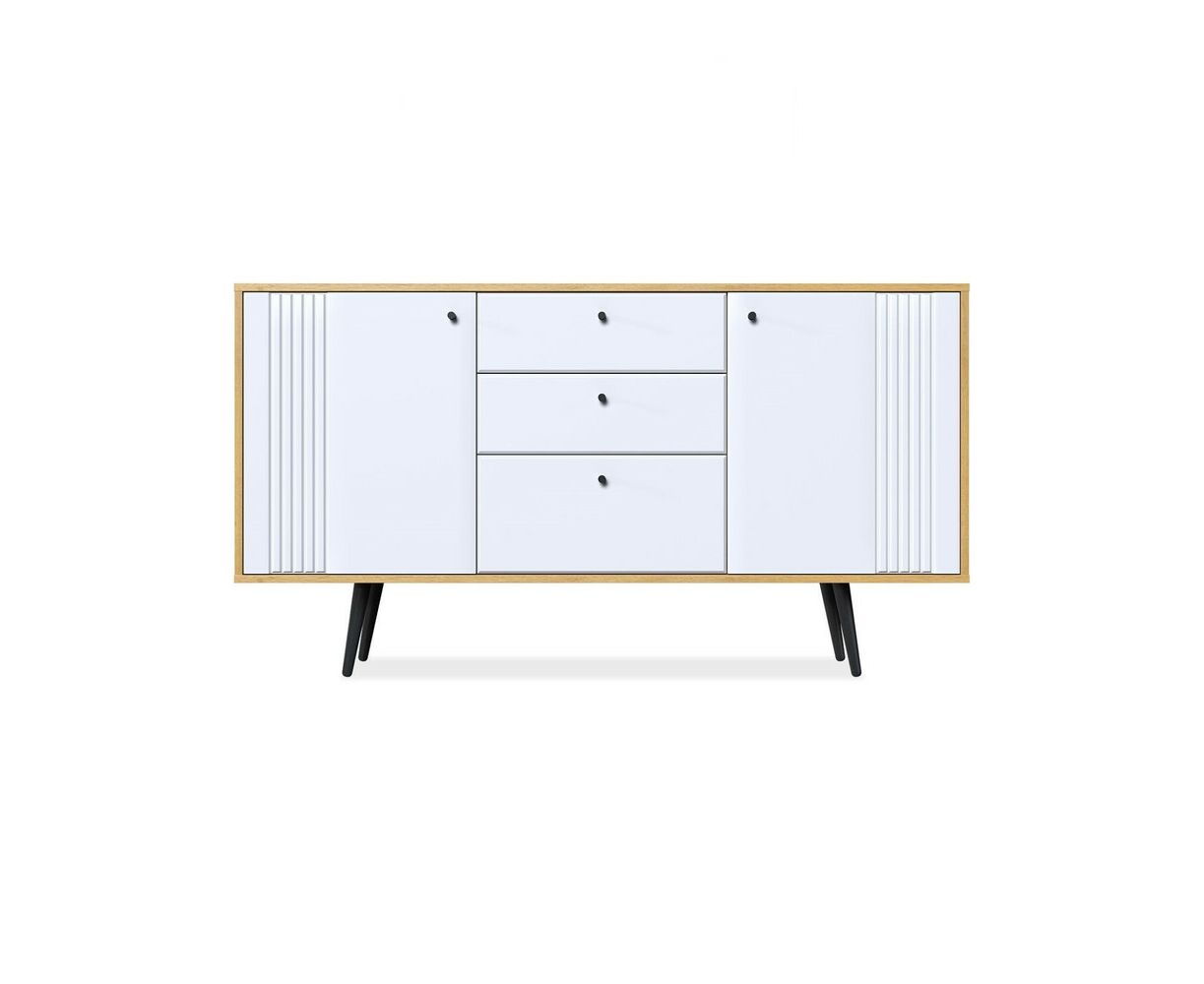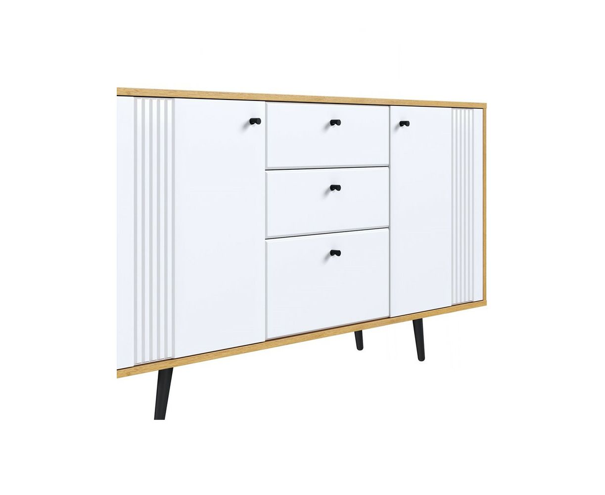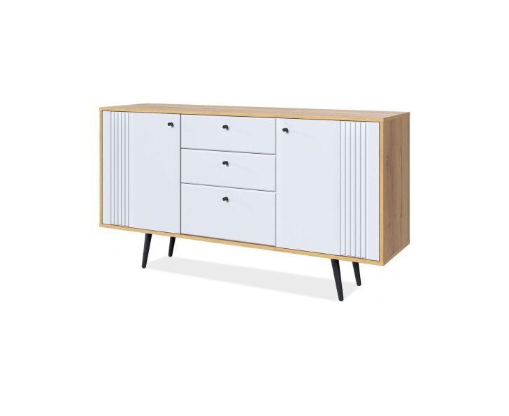 Комод на ножках Вега Саксония это стильное и функциональное решение для спальни, гостиной, прихожей или детской комнаты. Комод на ножках может быть использован не только для хранения, но и в качестве тумбы под телевизор. Комод для вещей выполнен в современном стиле, его внешний облик отличают строгие линии, сдержанный декор в виде фрезеровки фасадов и лаконичная яркая фурнитура в темном цвете. Высокие опоры подчеркивают стиль комода в спальню и значительно облегчают уборку в доме. Купить современный комод вы можете в двух исполнениях: корпус дуб крафт золотой + фасады МДФ серо-зеленые и дуб крафт золотой + фасады МДФ глянец белый. Внутреннее наполнение комода представлено одной секцией и выдвижными ящиками, для хранения вещей. Достоинством комода под телевизор является наличие петель с доводчиком для плавного и бесшумного закрывания дверок.