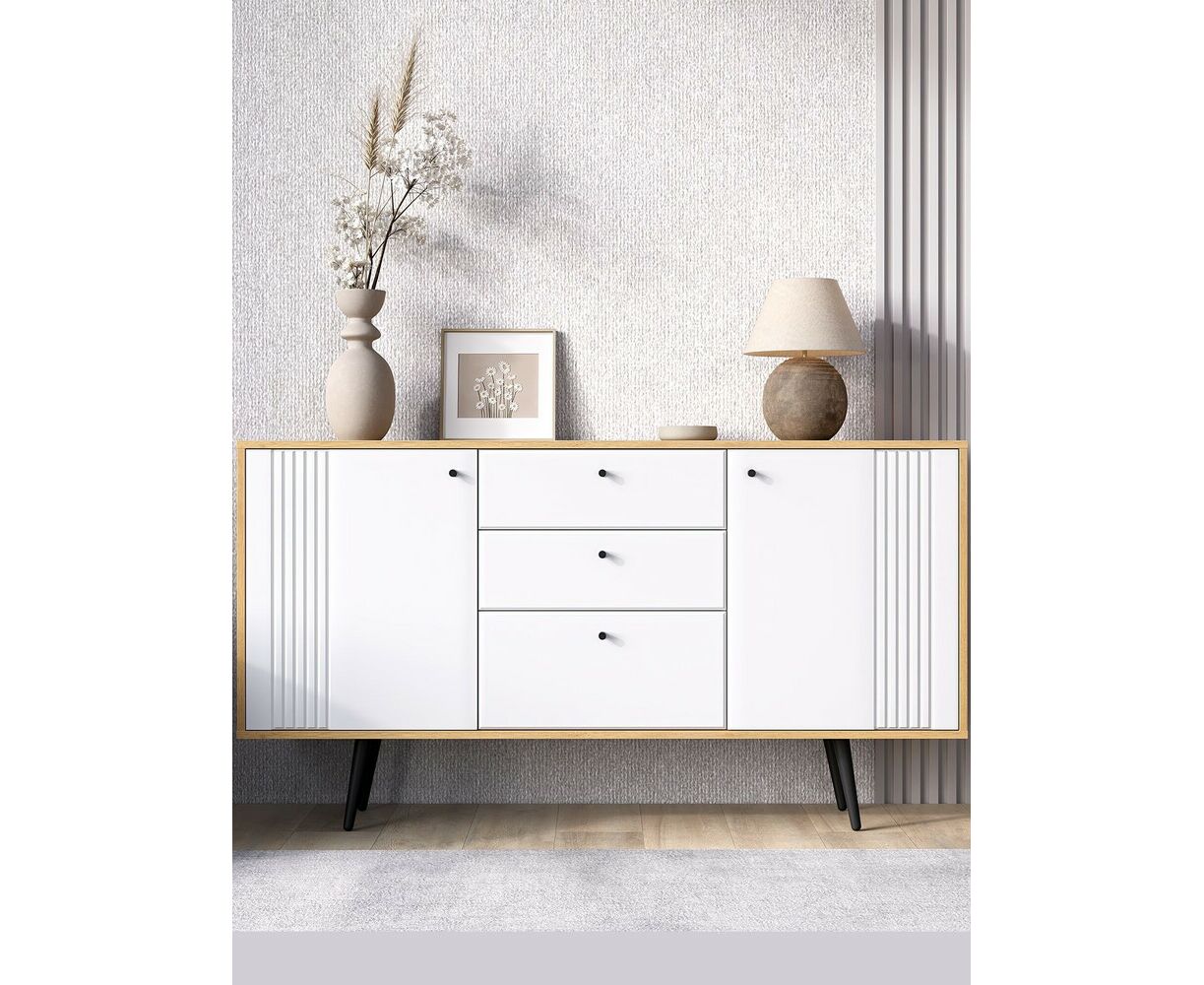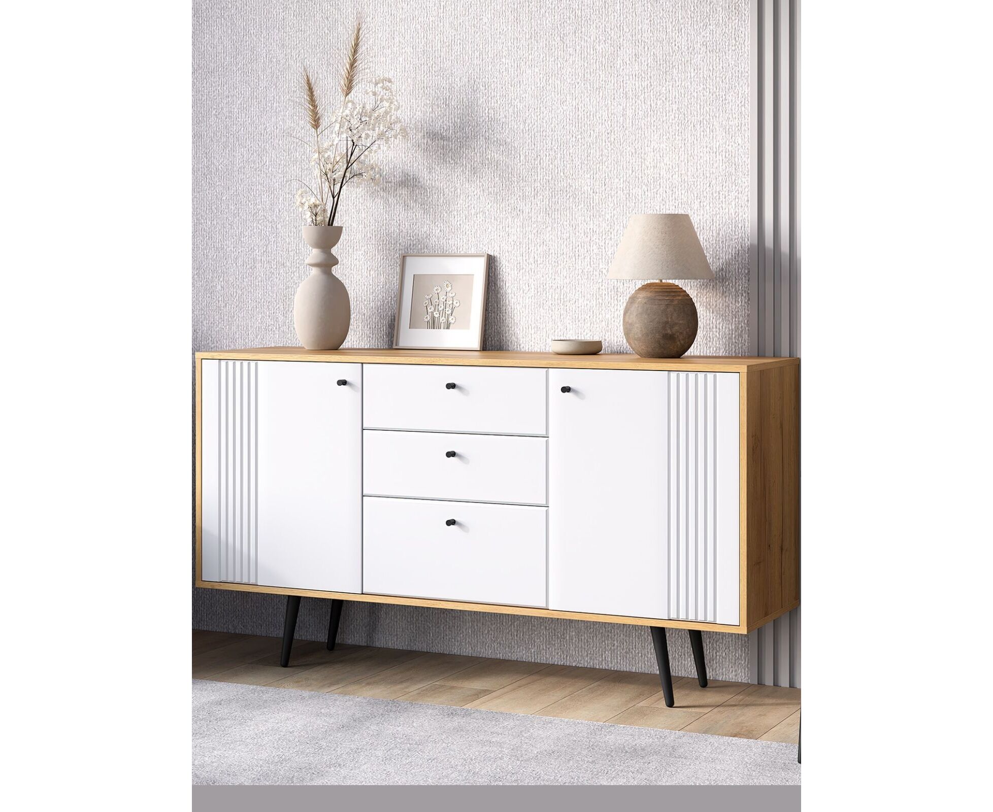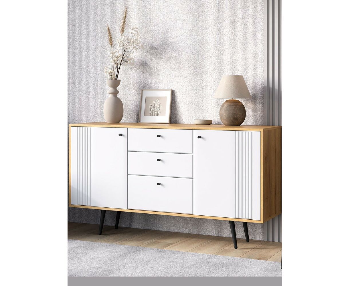 Комод на ножках Вега Саксония это стильное и функциональное решение для спальни, гостиной, прихожей или детской комнаты. Комод на ножках может быть использован не только для хранения, но и в качестве тумбы под телевизор. Комод для вещей выполнен в современном стиле, его внешний облик отличают строгие линии, сдержанный декор в виде фрезеровки фасадов и лаконичная яркая фурнитура в темном цвете. Высокие опоры подчеркивают стиль комода в спальню и значительно облегчают уборку в доме. Купить современный комод вы можете в двух исполнениях: корпус дуб крафт золотой + фасады МДФ серо-зеленые и дуб крафт золотой + фасады МДФ глянец белый. Внутреннее наполнение комода представлено одной секцией и выдвижными ящиками, для хранения вещей. Достоинством комода под телевизор является наличие петель с доводчиком для плавного и бесшумного закрывания дверок.