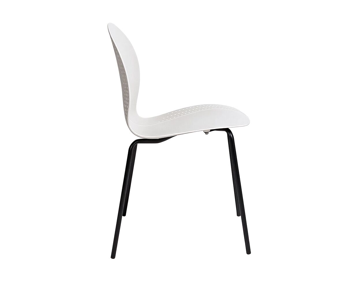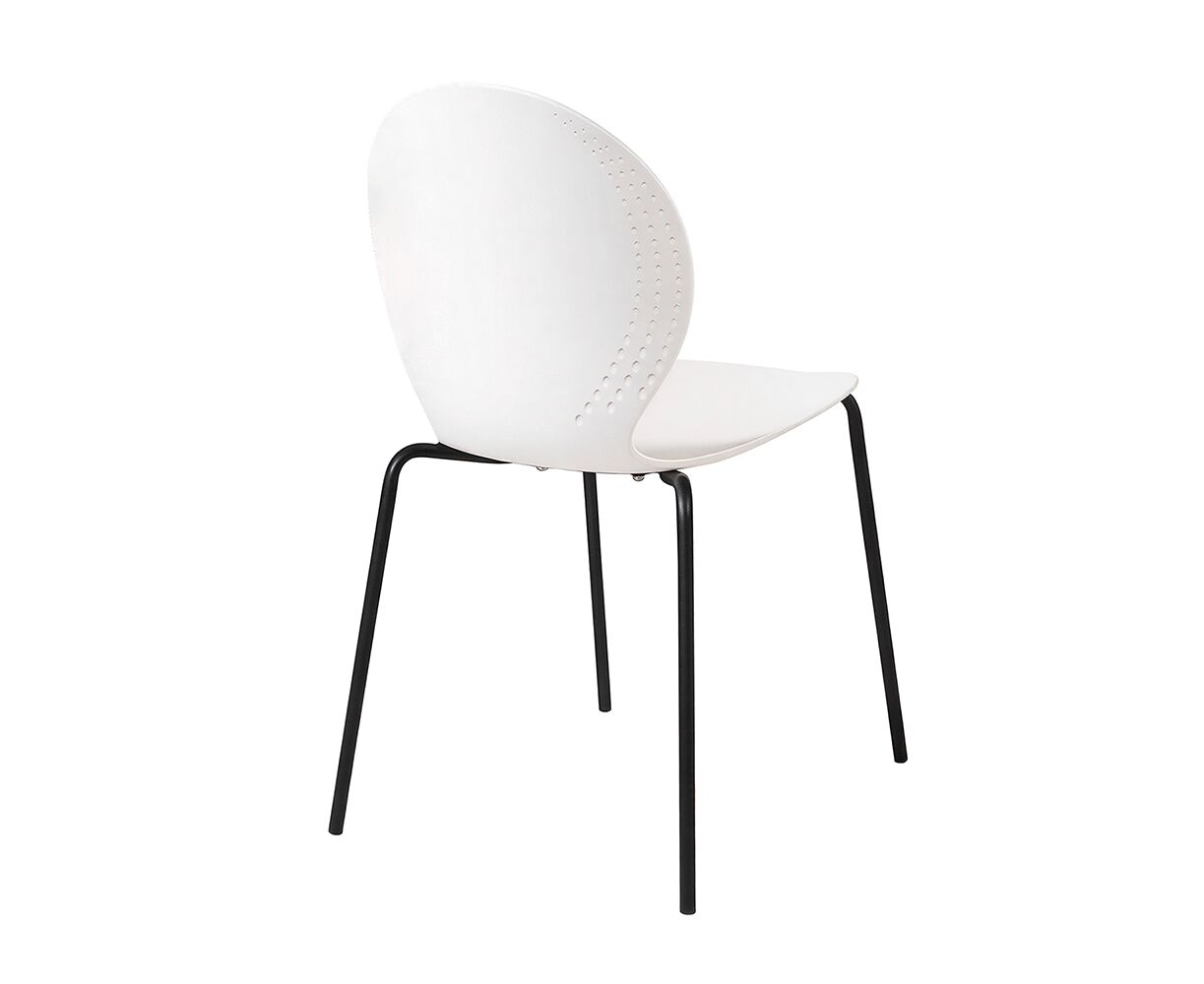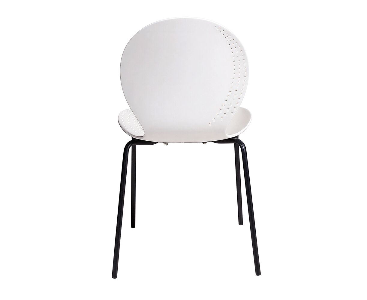 Стул элегантного дизайна, подчеркивающий сочетание современных материалов и утонченного стиля. Его металлические ножки придают конструкции прочность и устойчивость, обеспечивая надежность даже при интенсивном использовании. Цельнолитое пластиковое сиденье с плавными формами, создаёт комфортное пространство для посадки. Особенностью изделия является изящная перфорация по краям спинки и сиденья, придающая легкости общему облику и привлекающая внимание своей необычной декоративностью. Этот стул станет прекрасным дополнением интерьера, сочетающего минимализм и современность, гармонично вписываясь в любую обстановку и подчеркивая вкус владельца.