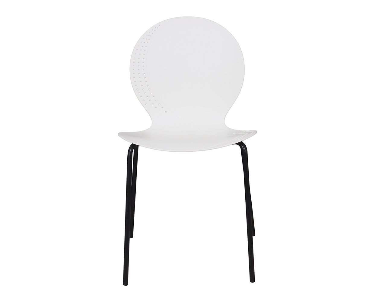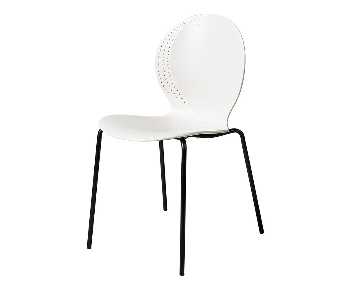 Стул элегантного дизайна, подчеркивающий сочетание современных материалов и утонченного стиля. Его металлические ножки придают конструкции прочность и устойчивость, обеспечивая надежность даже при интенсивном использовании. Цельнолитое пластиковое сиденье с плавными формами, создаёт комфортное пространство для посадки. Особенностью изделия является изящная перфорация по краям спинки и сиденья, придающая легкости общему облику и привлекающая внимание своей необычной декоративностью. Этот стул станет прекрасным дополнением интерьера, сочетающего минимализм и современность, гармонично вписываясь в любую обстановку и подчеркивая вкус владельца.