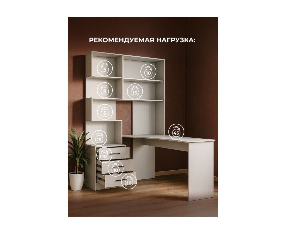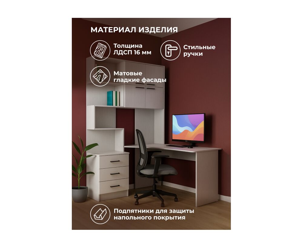 Компьютерный стол Эльброни правый белый