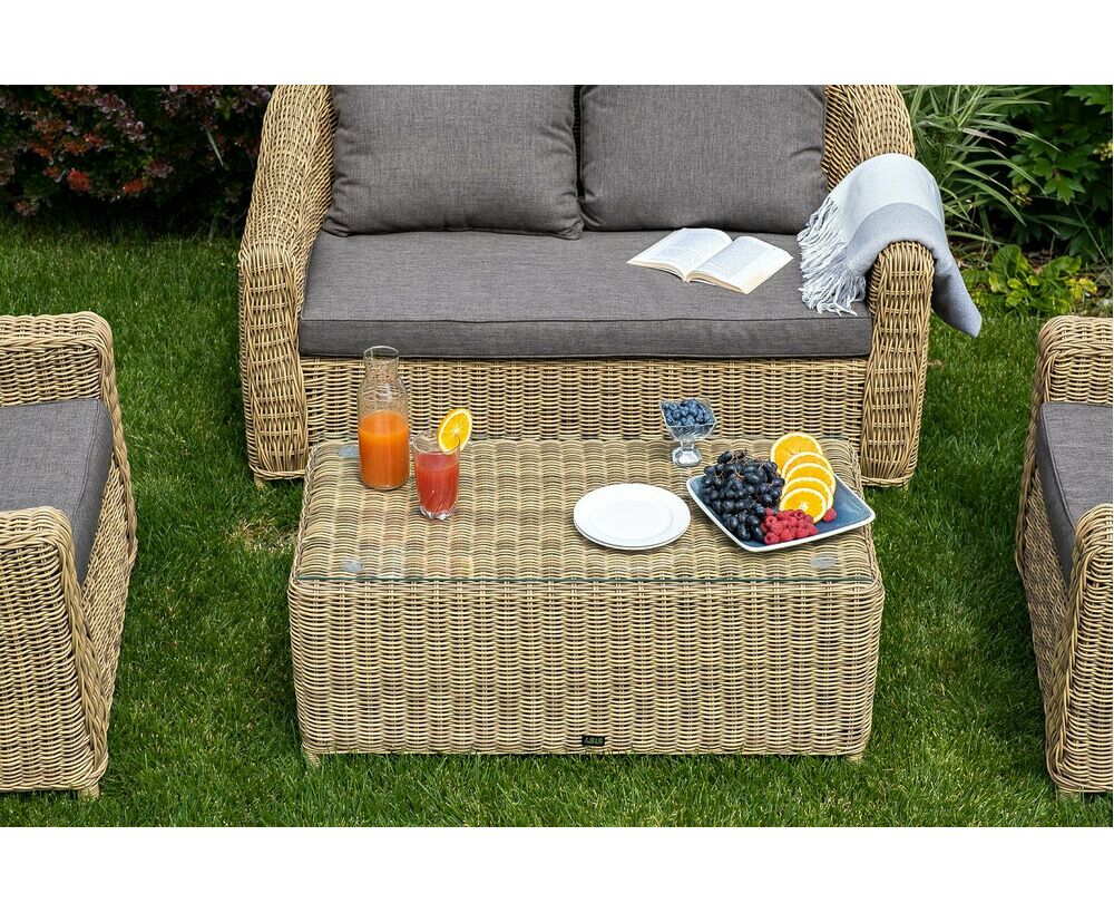 Журнальный столик дополняет рабочая поверхность из прочного закаленного стекла, толщина – 5 мм. "Кон Панна" диван из искусственного ротанга двухместный, цвет соломенный 1шт. 1 370Х800Х800, "Кон Панна" кресло из искусственного ротанга, цвет соломенный 2шт. 800Х800Х800, "Кон Панна" столик журнальный из искусственного ротанга, цвет соломенный 1шт. 1 000Х500Х420,