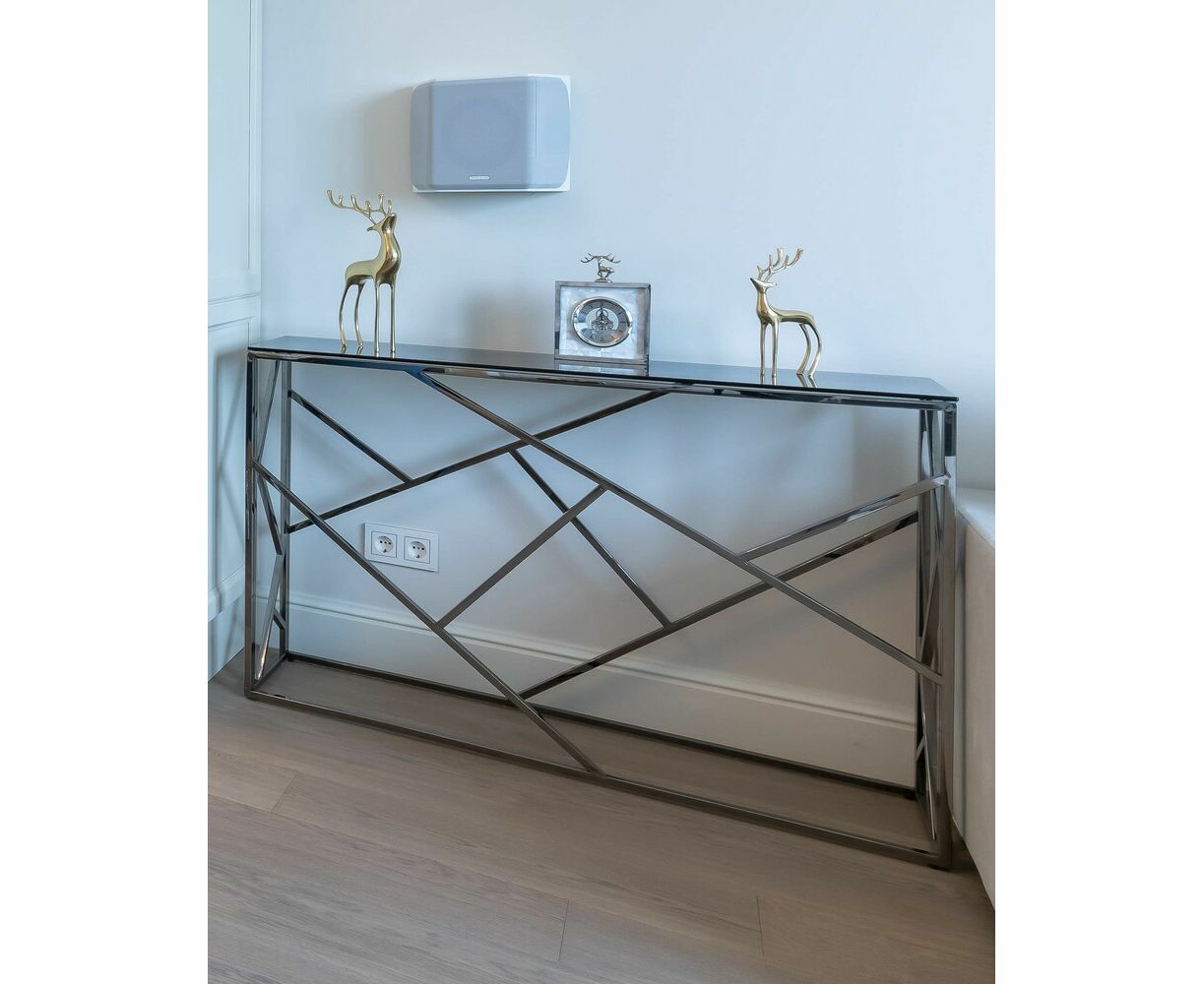 Консоль АРТ ДЕКО 115*30 стекло smoke сталь тёмный хром