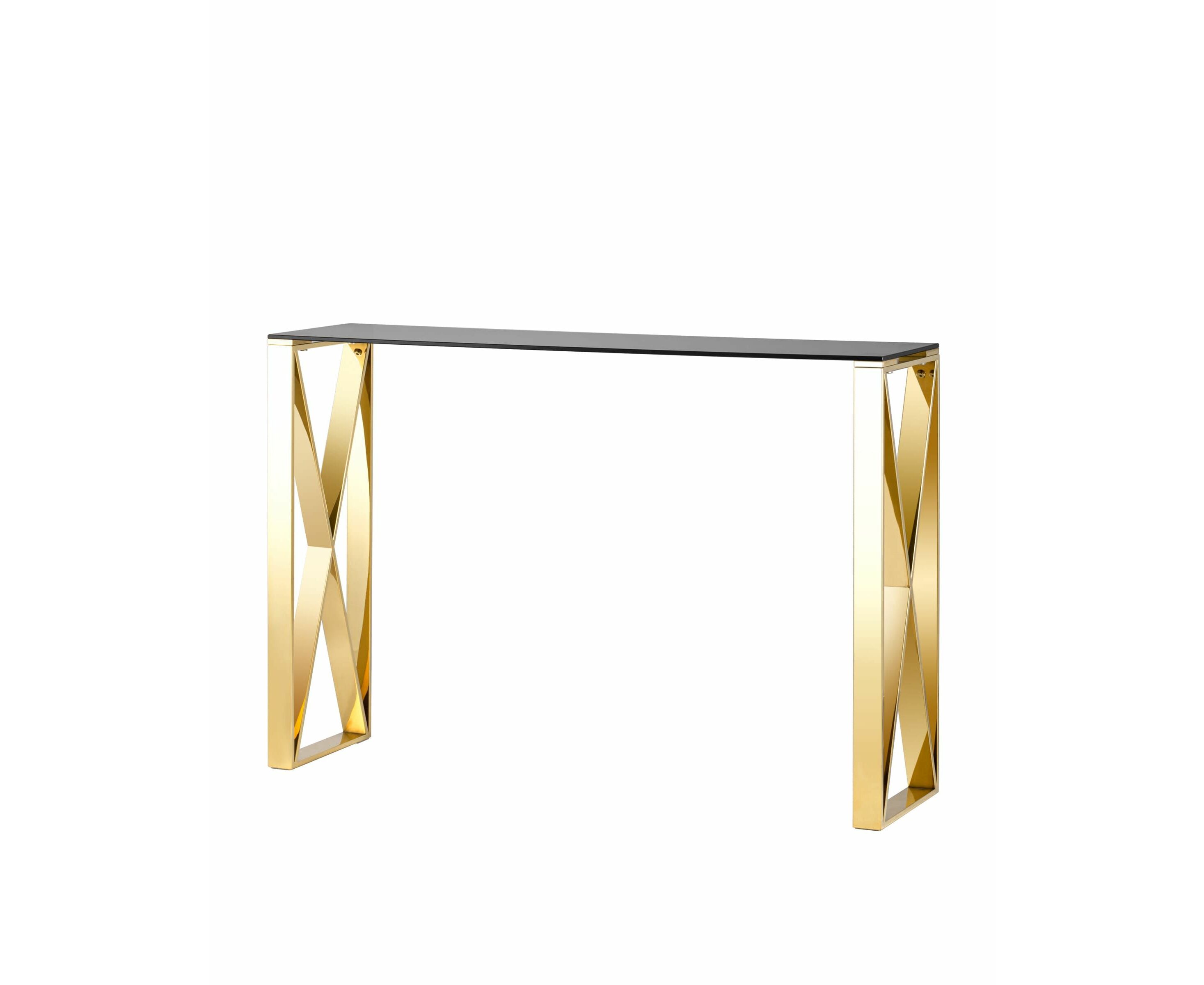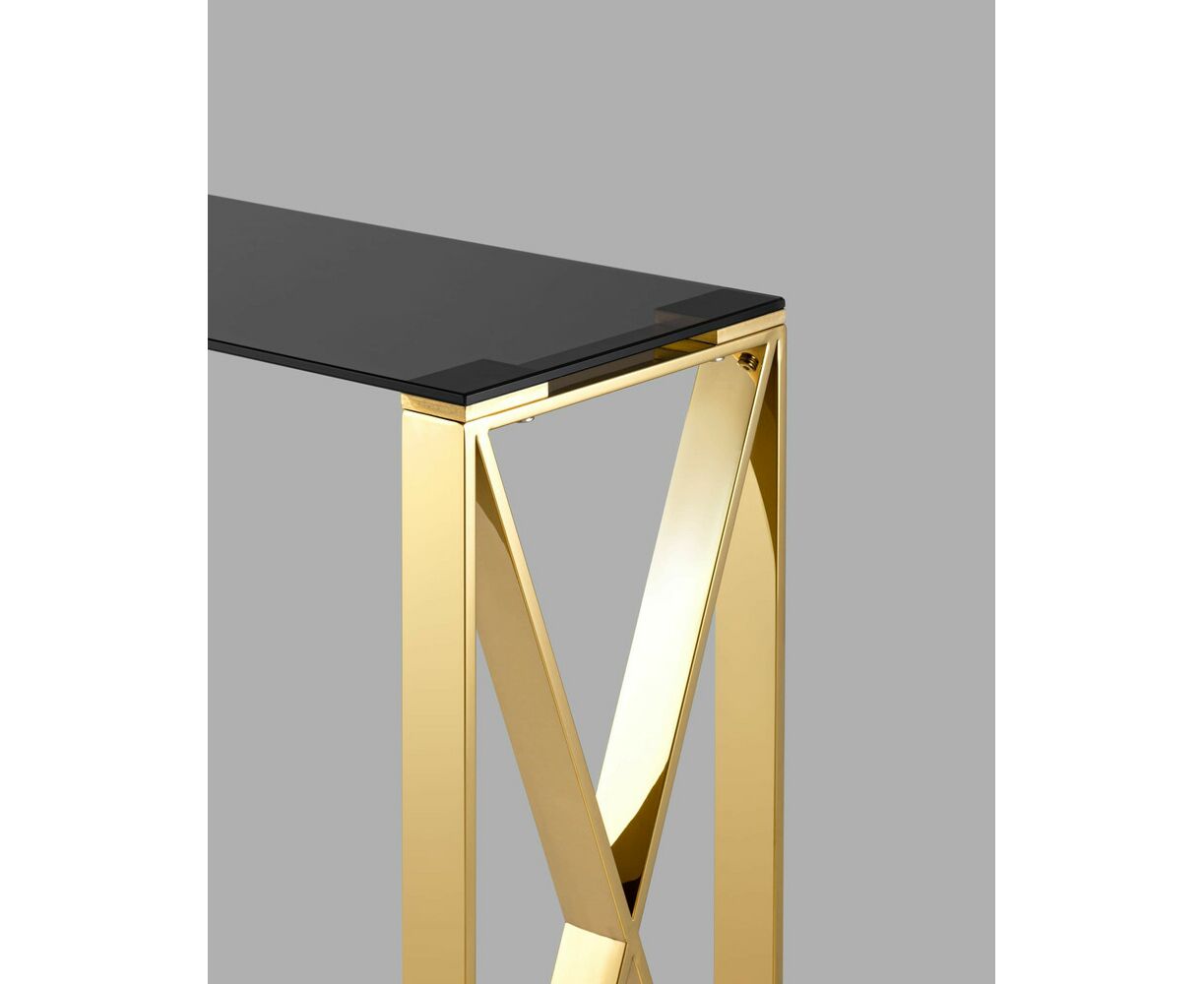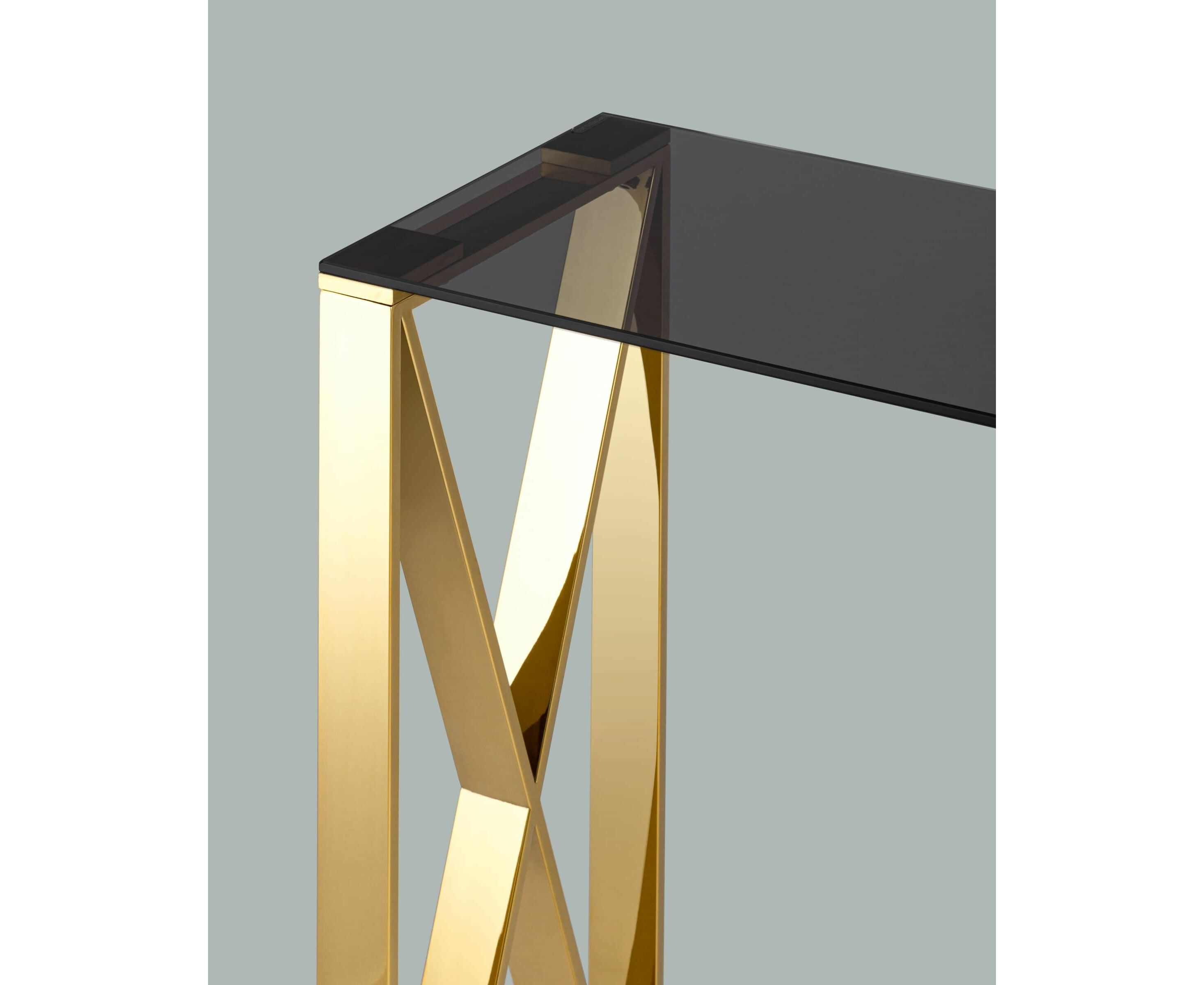 Консоль КРОСС благодаря оригинальной форме станет ярким дизайнерским акцентом в интерьере. Каркас стола изготовлен из нержавеющей стали, столешница - закаленное стекло.