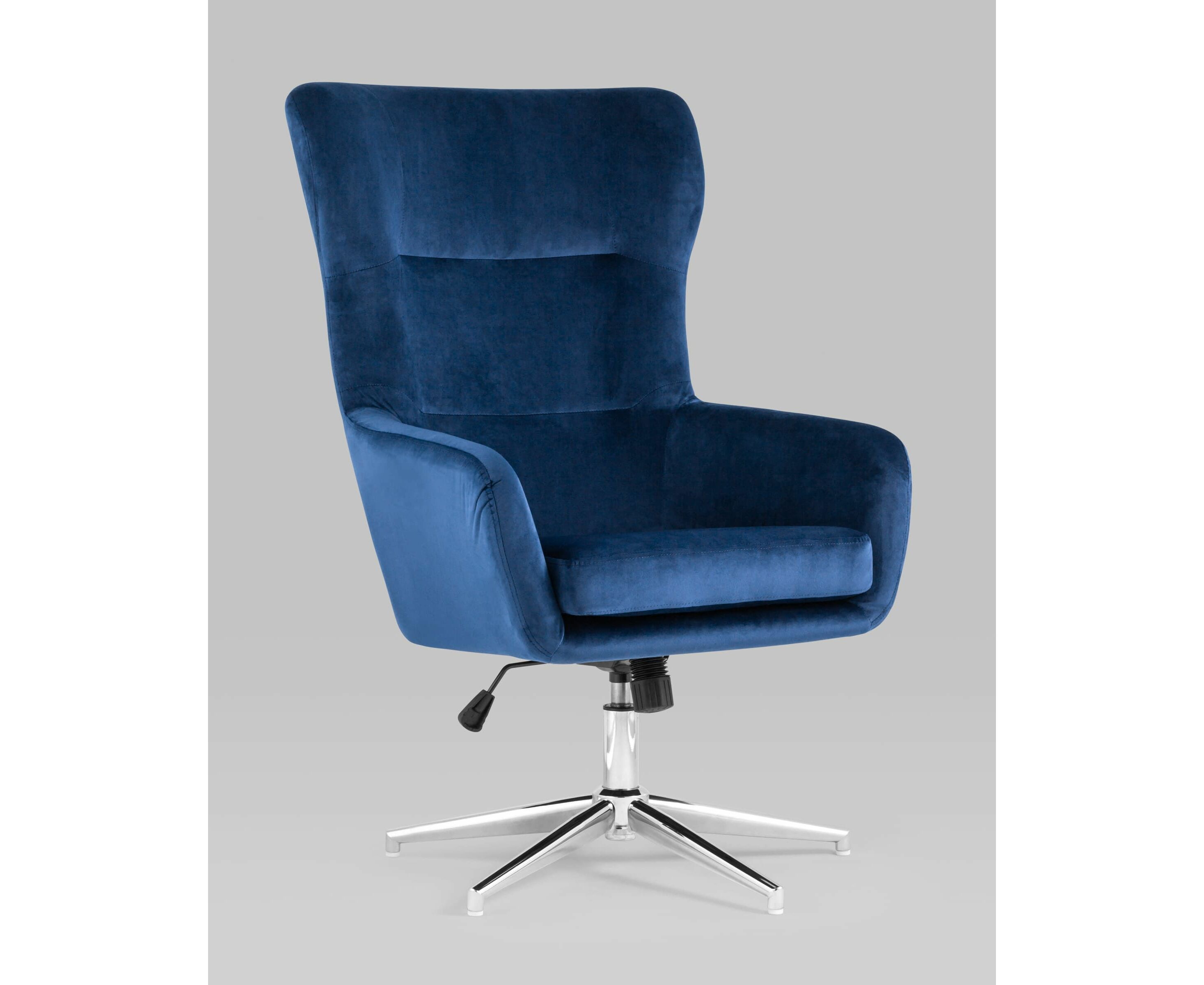 Широкое кресло с удобной высокой спинкой на крепком металлическом каркасе. Регулировка по высоте. Обивка выполнена из мягкого износостойкого велюра. Нагрузка до 120 кг. Высота сиденья регулируется от 48 до 58 см. В зависимости от регулировки общей высоты кресла, высота подлокотников от пола составляет 63-73 см.