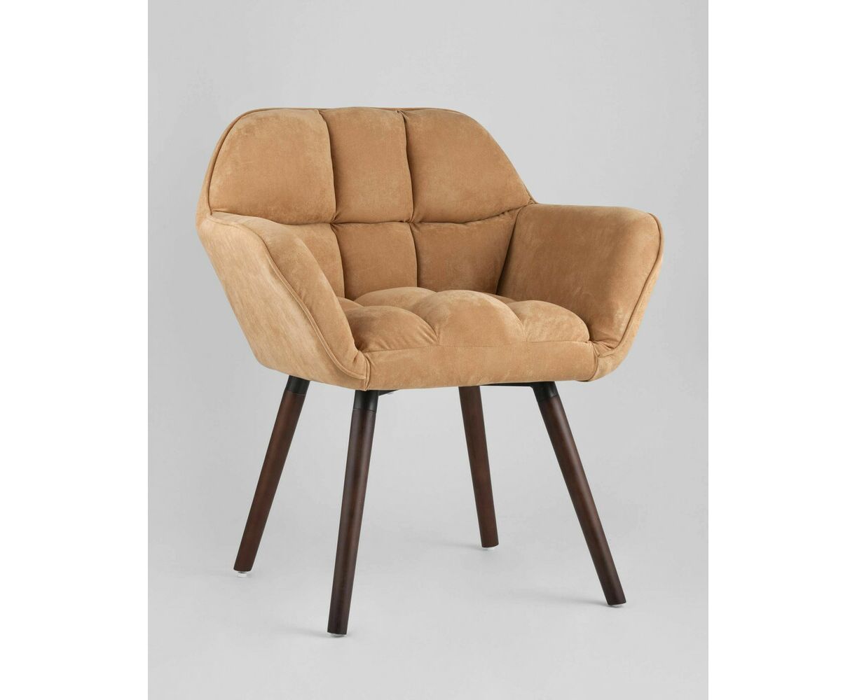Оригинальное мягкое дизайнерское кресло с удобными подлокотниками. Ножки выполнены из массива бука. В качестве обивки используется износостойкая прочная замша, которая не истирается и не линяет со временем. Кресло отличает толстая спинка и сиденье, украшенные красивой строчкой, которая добавляет креслу интересной фактуры. Каркас металлический, выдерживает нагрузку до 150 кг. Высота подлокотников от пола составляет 62 см.
