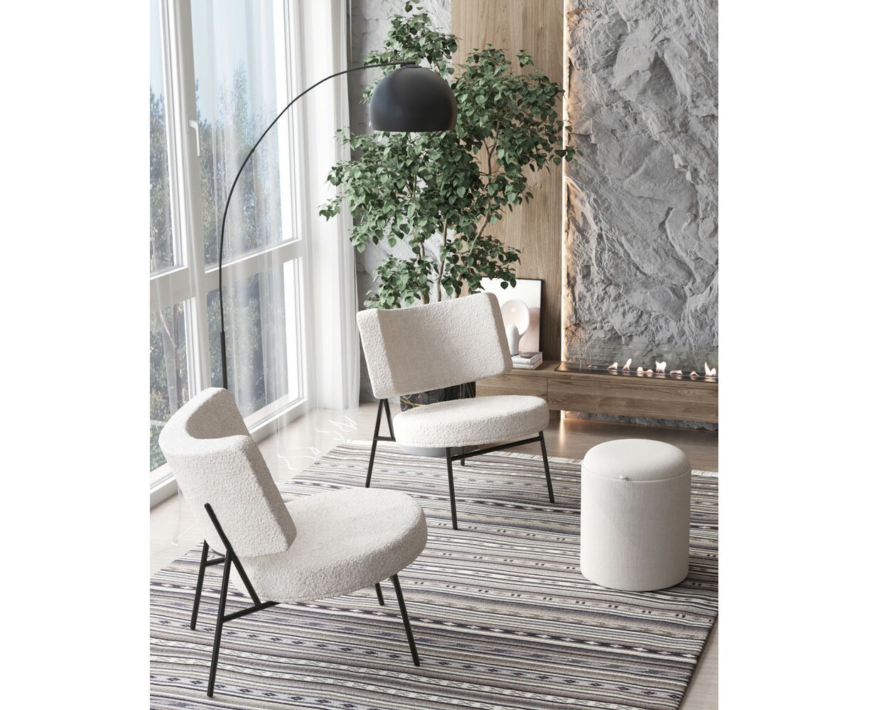 Кресло District Lounge букле белый цельносварной каркас, надежная конструкция