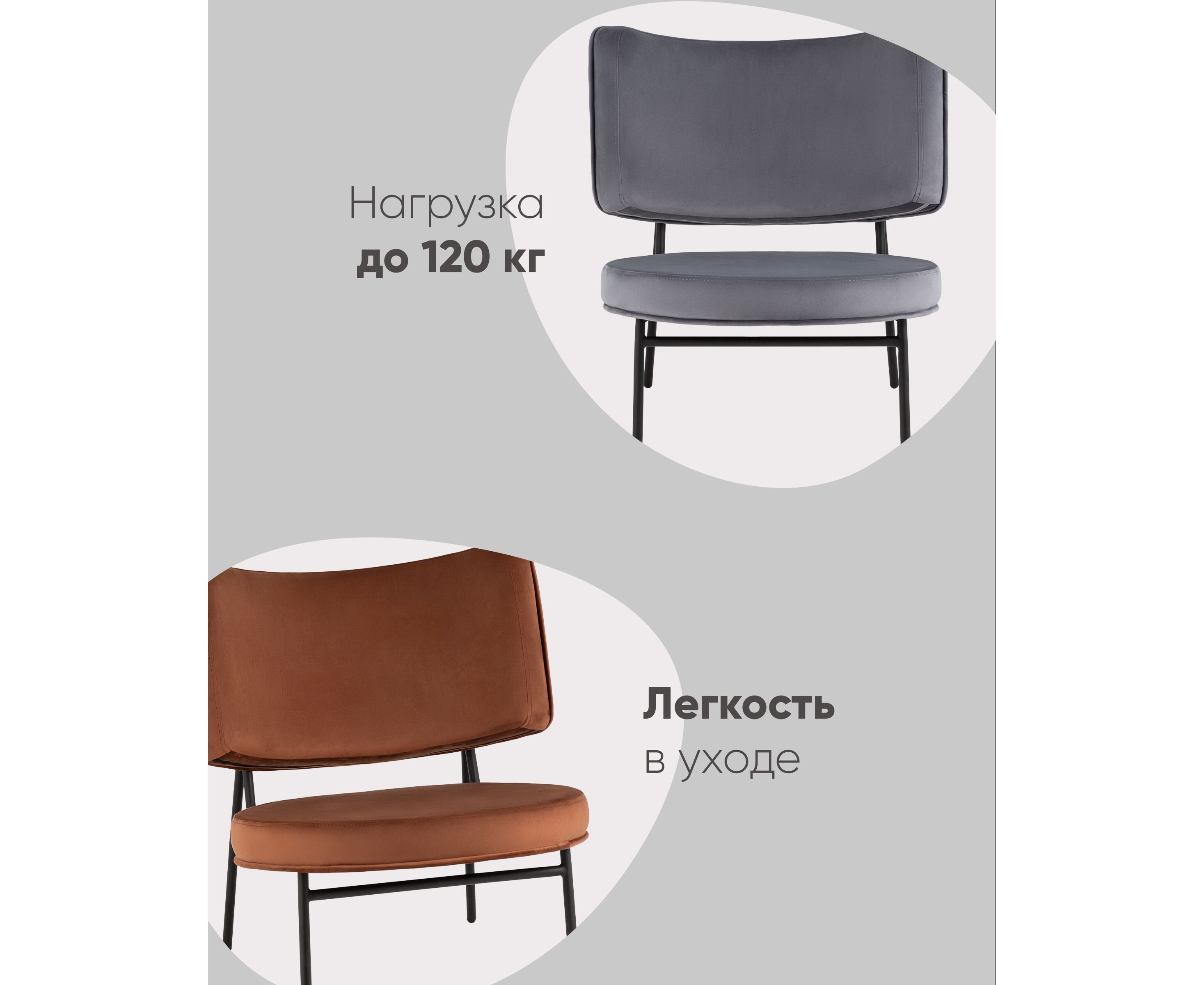 Кресло District Lounge велюр серый цельносварной каркас, надежная конструкция