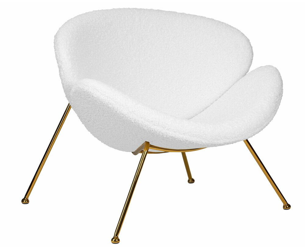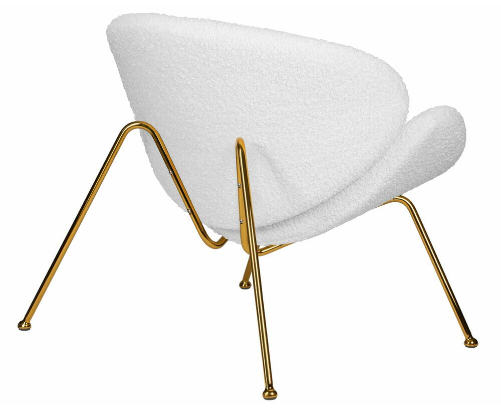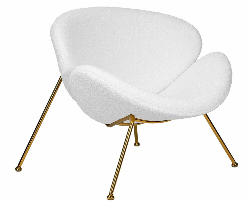 Кресло дизайнерское DOBRIN EMILY, белый (букле) ткань, золотое основание