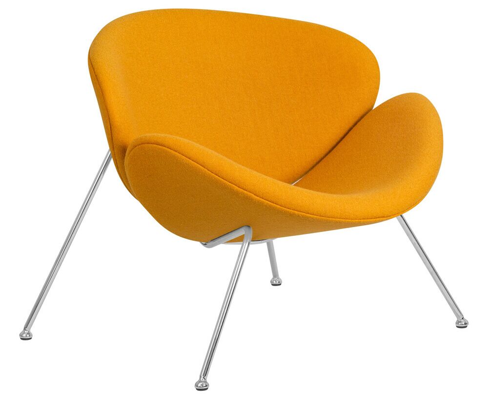 Кресло дизайнерское DOBRIN EMILY, желтая ткань AF13, хромированная сталь