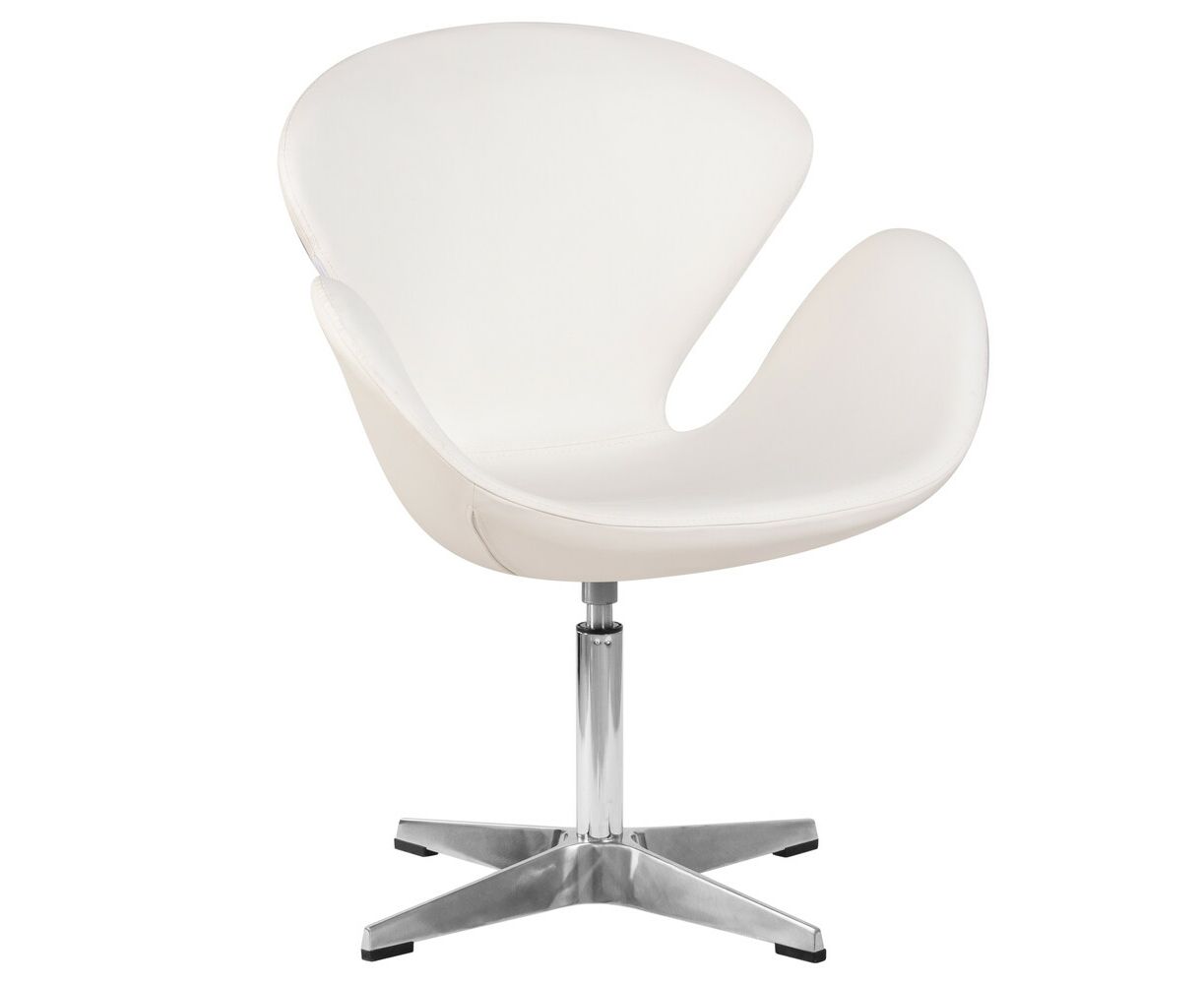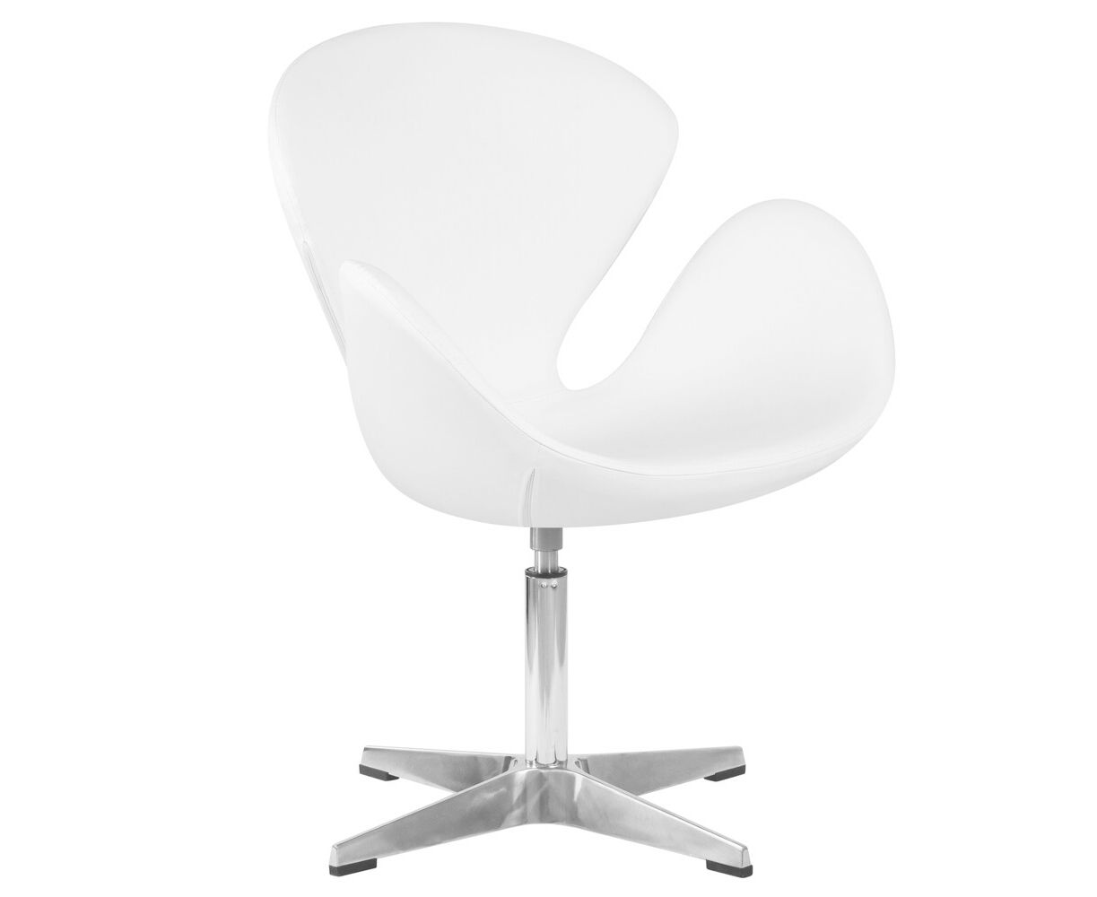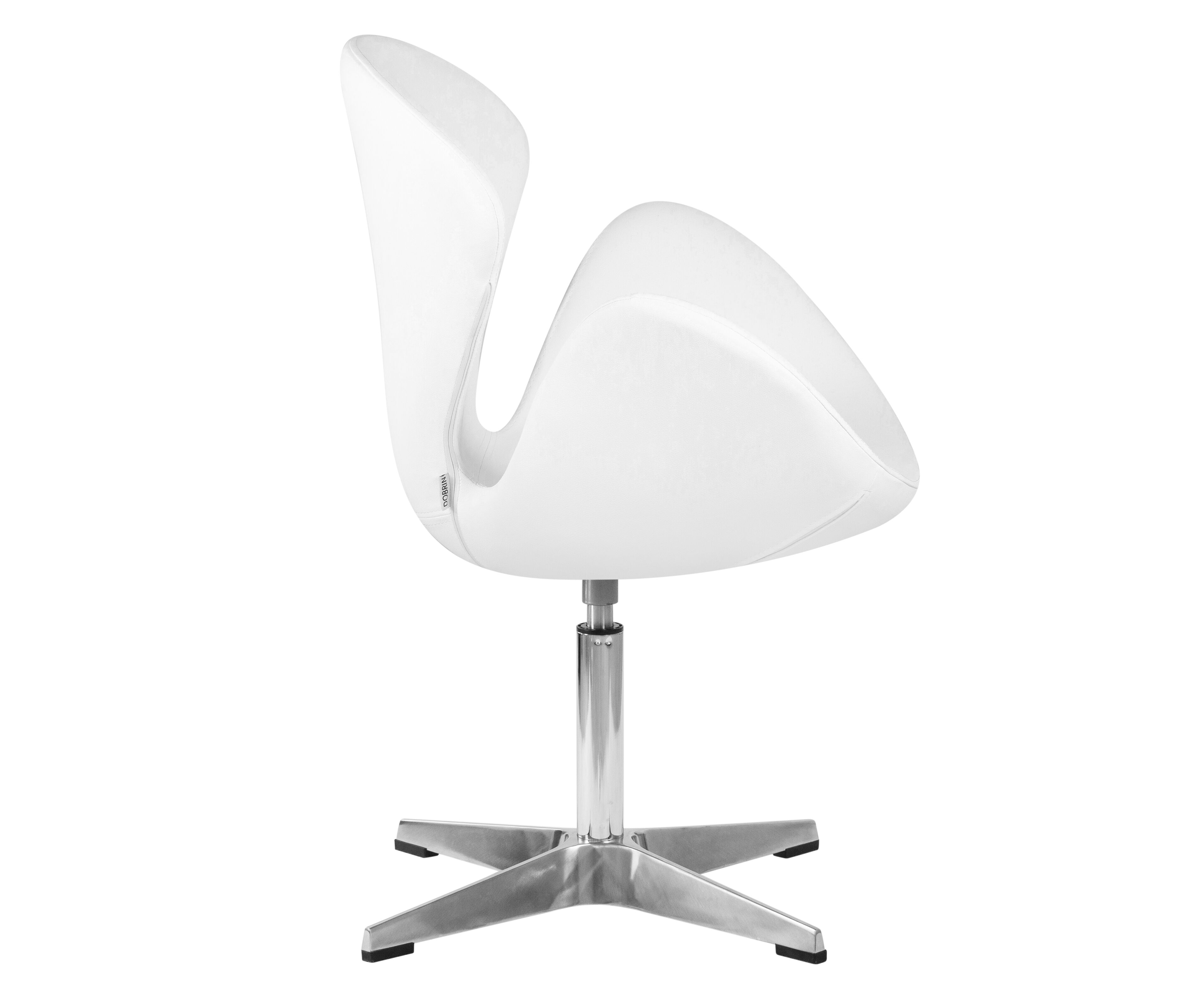 Кресло дизайнерское DOBRIN SWAN, белый кожзам P23, алюминиевое основание