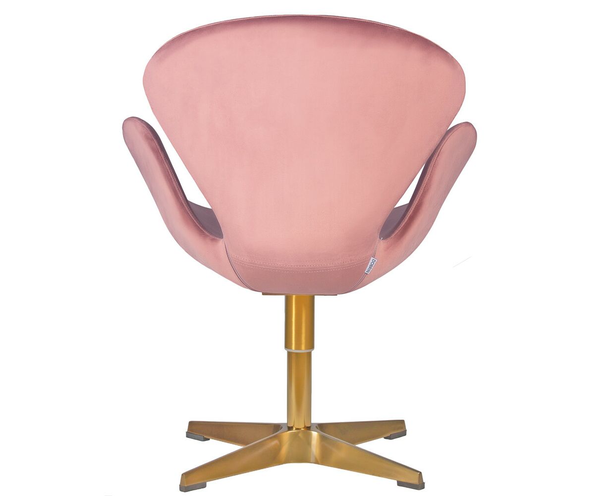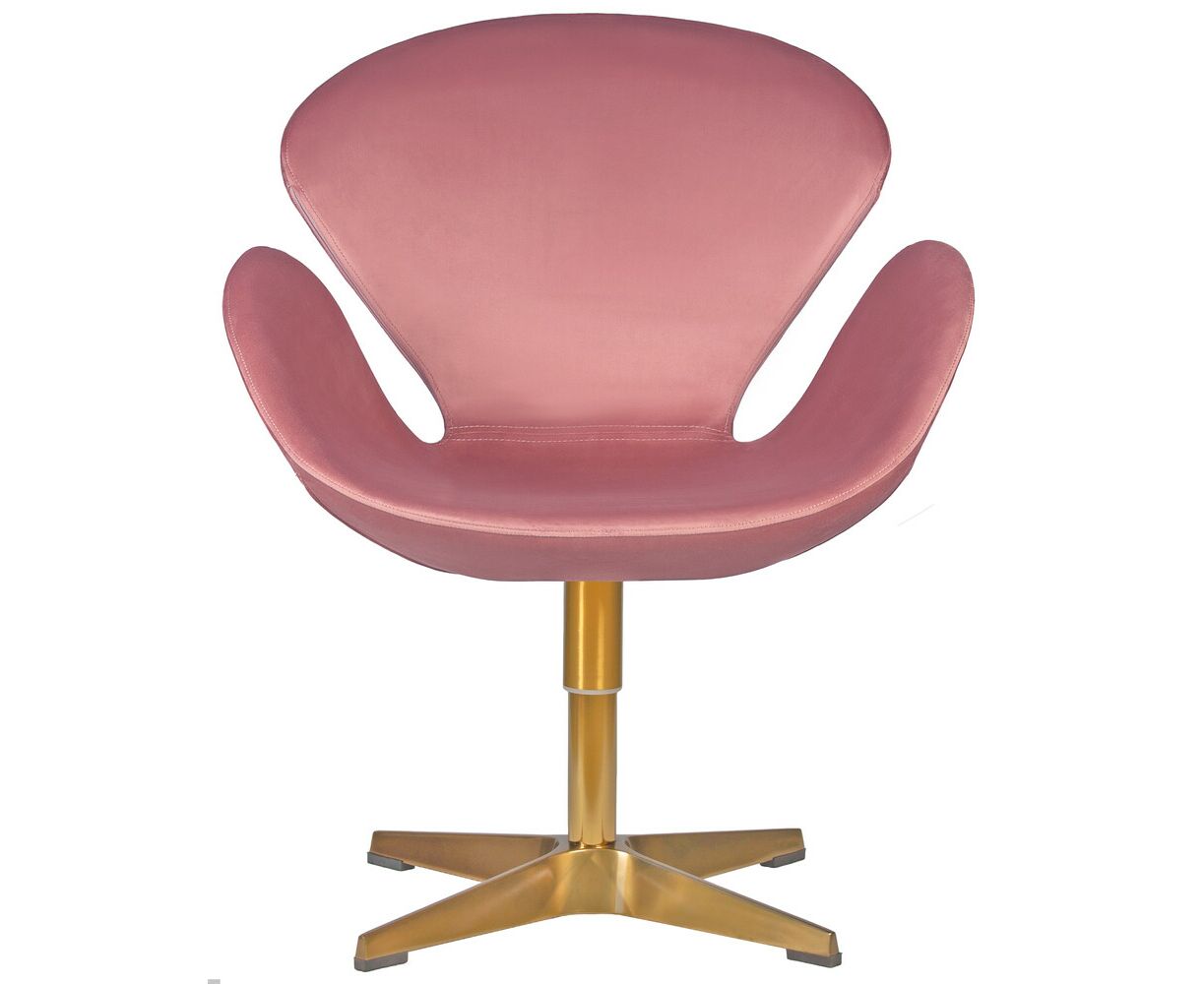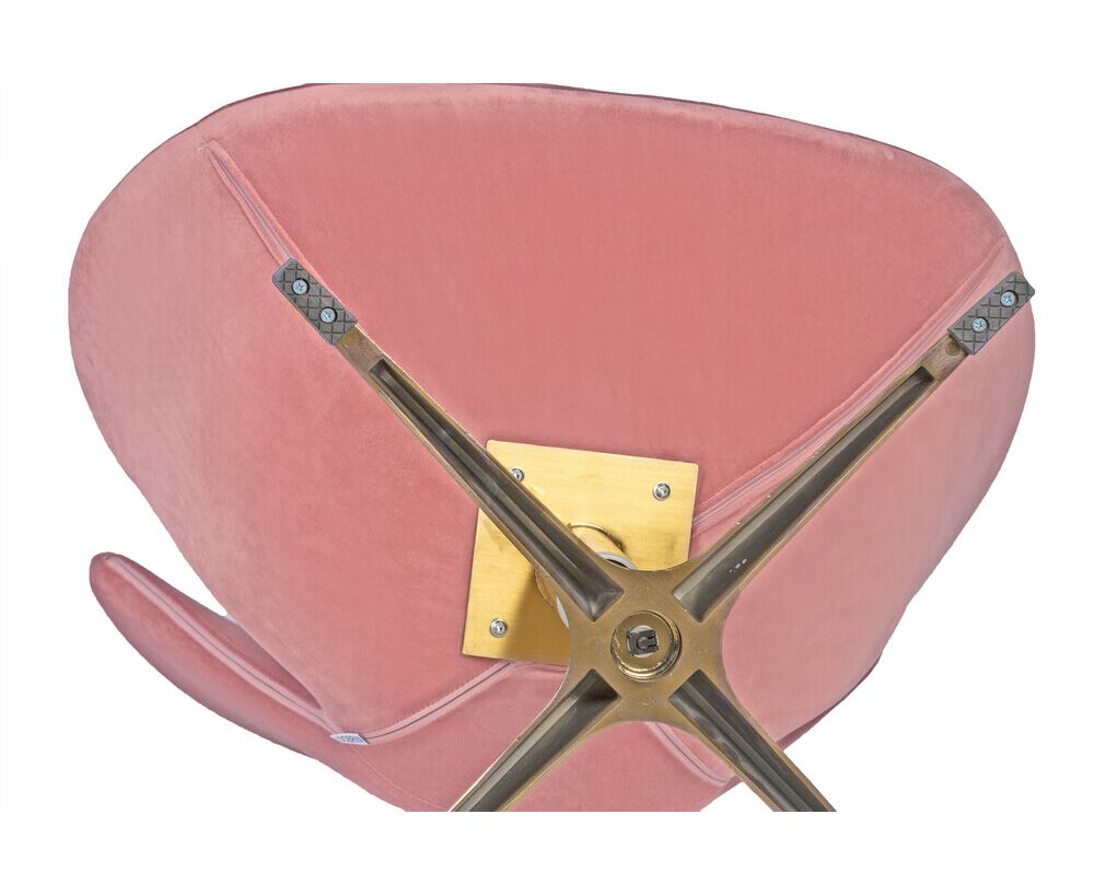 Кресло дизайнерское DOBRIN SWAN, розовый велюр BLUVEL52, золотое основание