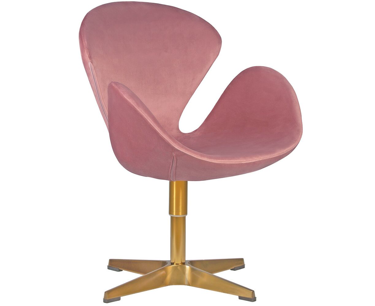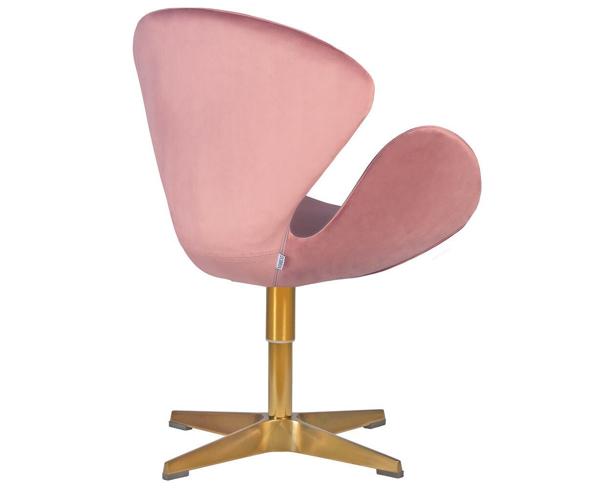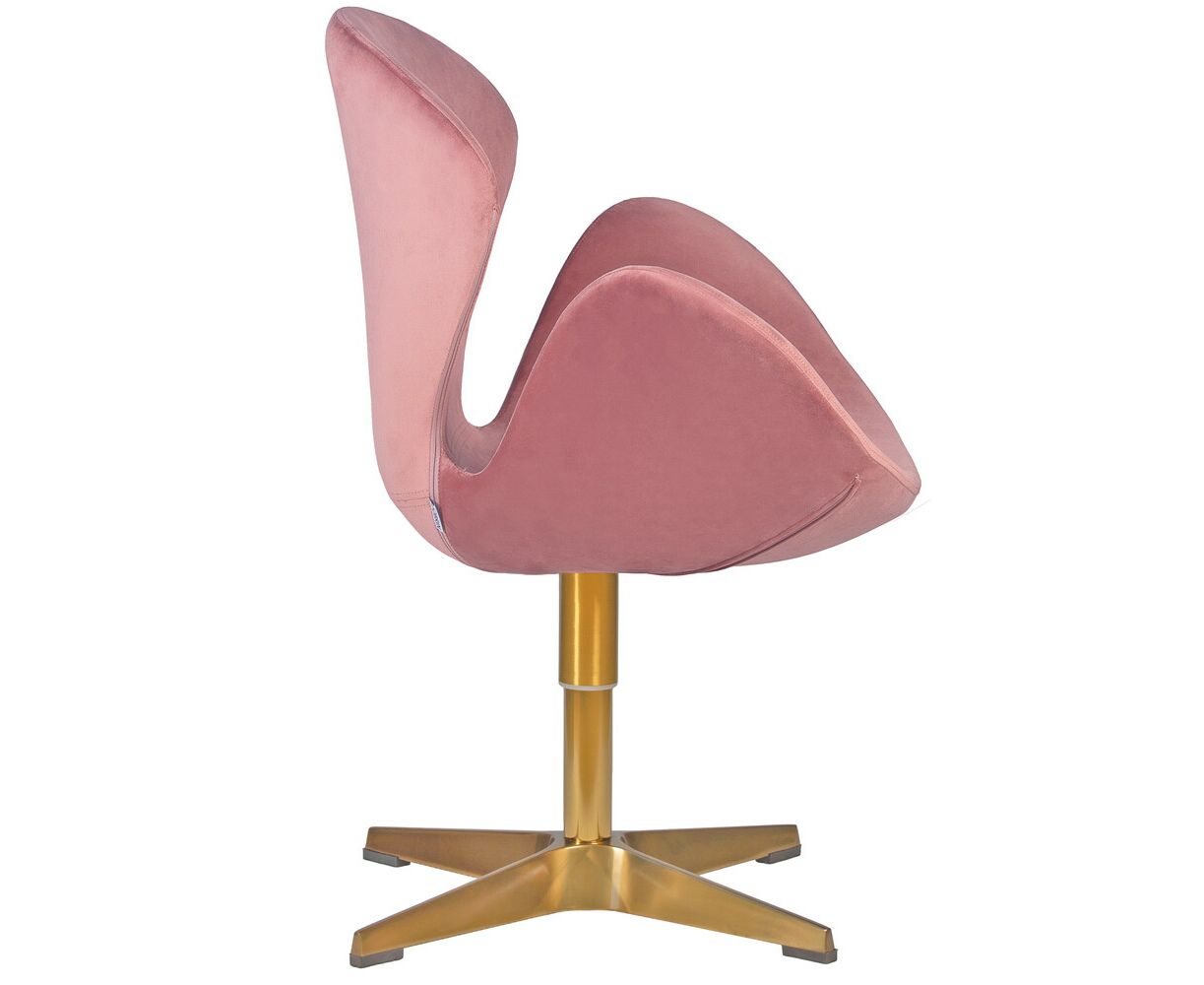 Кресло дизайнерское DOBRIN SWAN, розовый велюр BLUVEL52, золотое основание