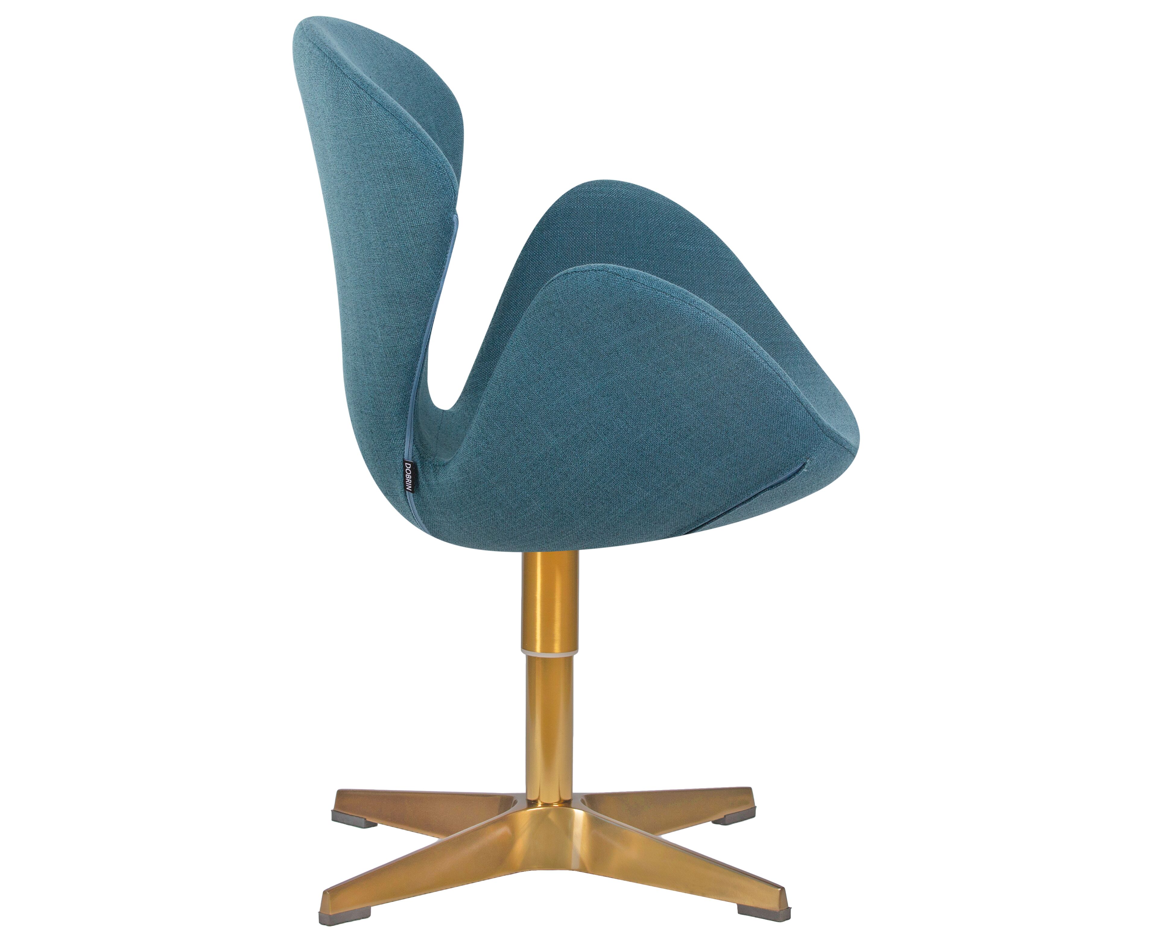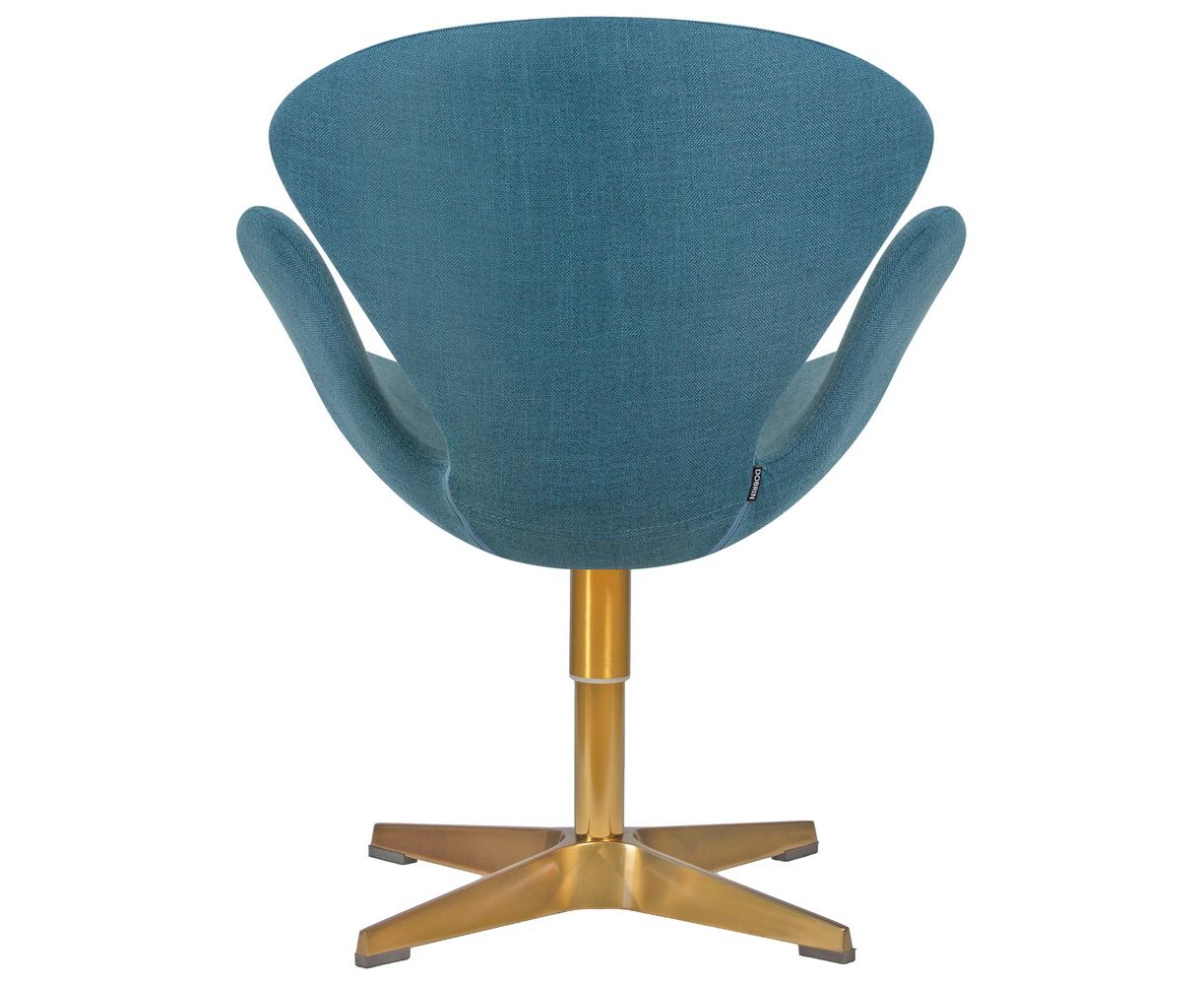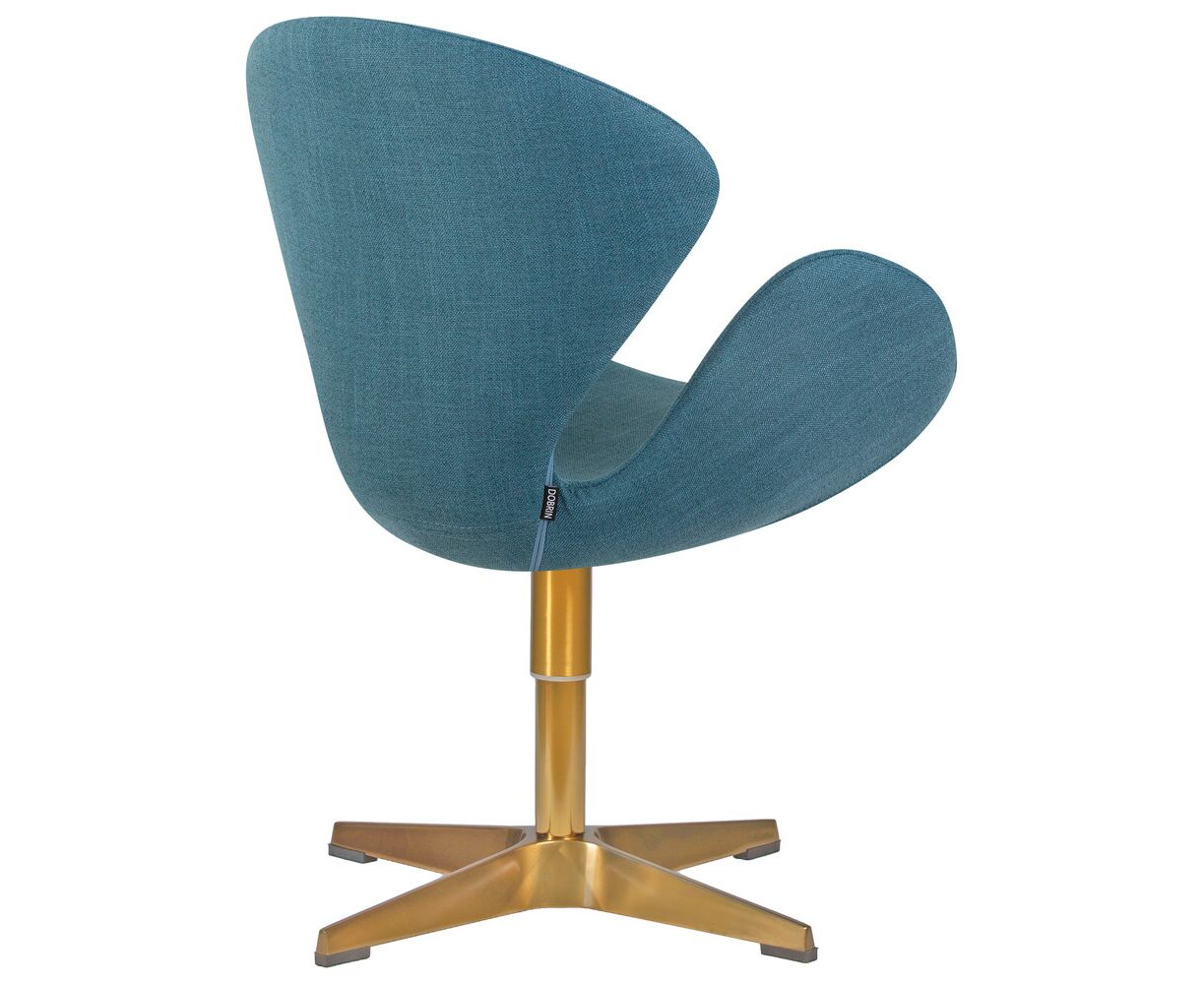 Кресло дизайнерское DOBRIN SWAN, синяя ткань IF6, золотое основание