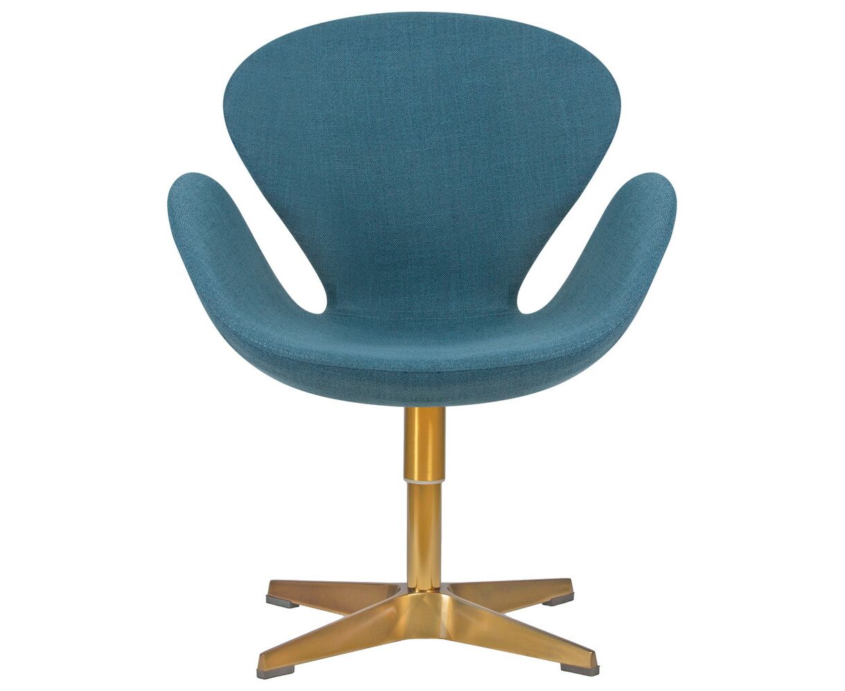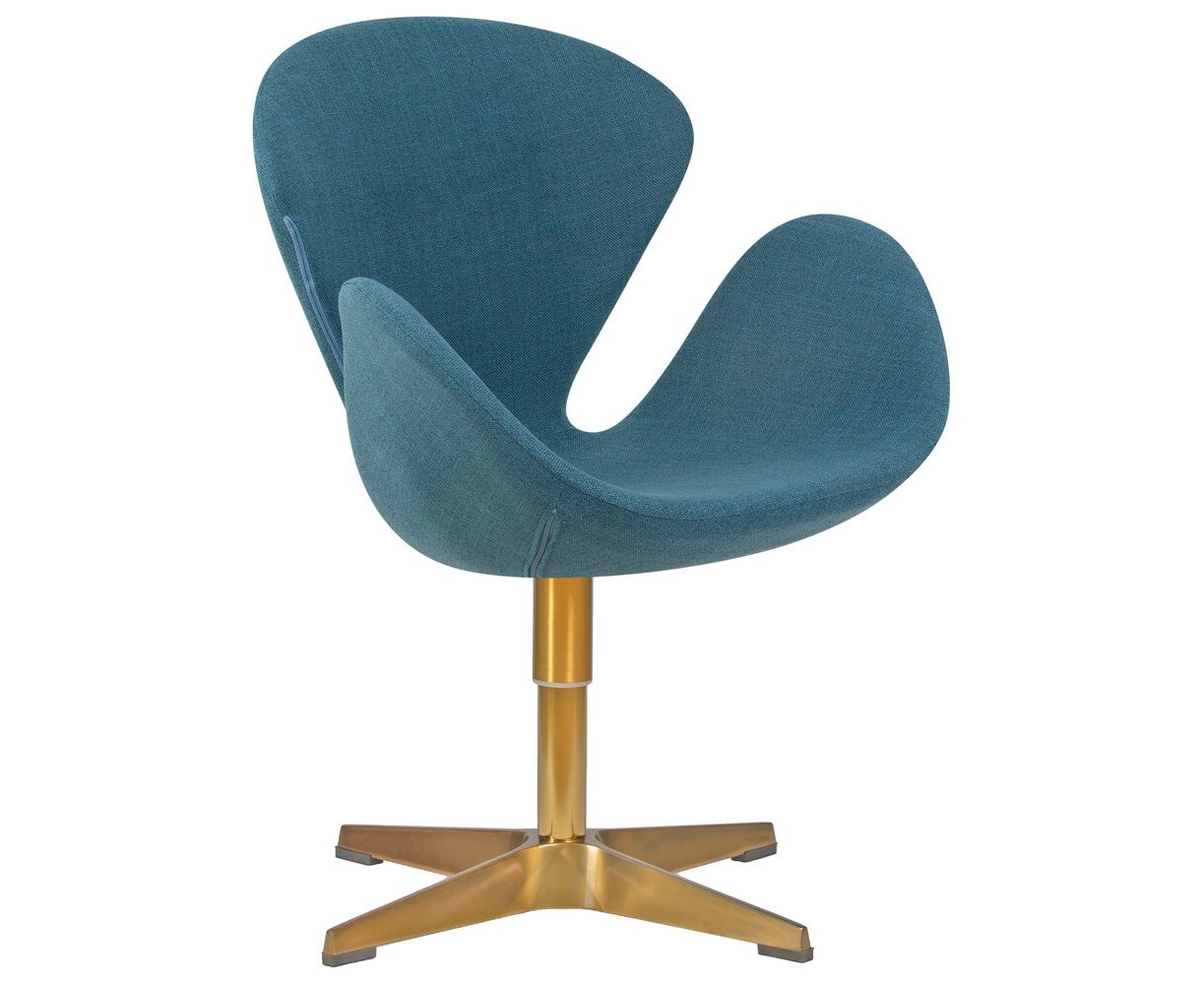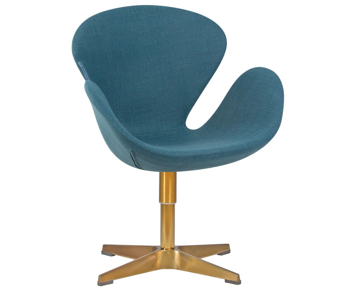 Кресло дизайнерское DOBRIN SWAN, синяя ткань IF6, золотое основание
