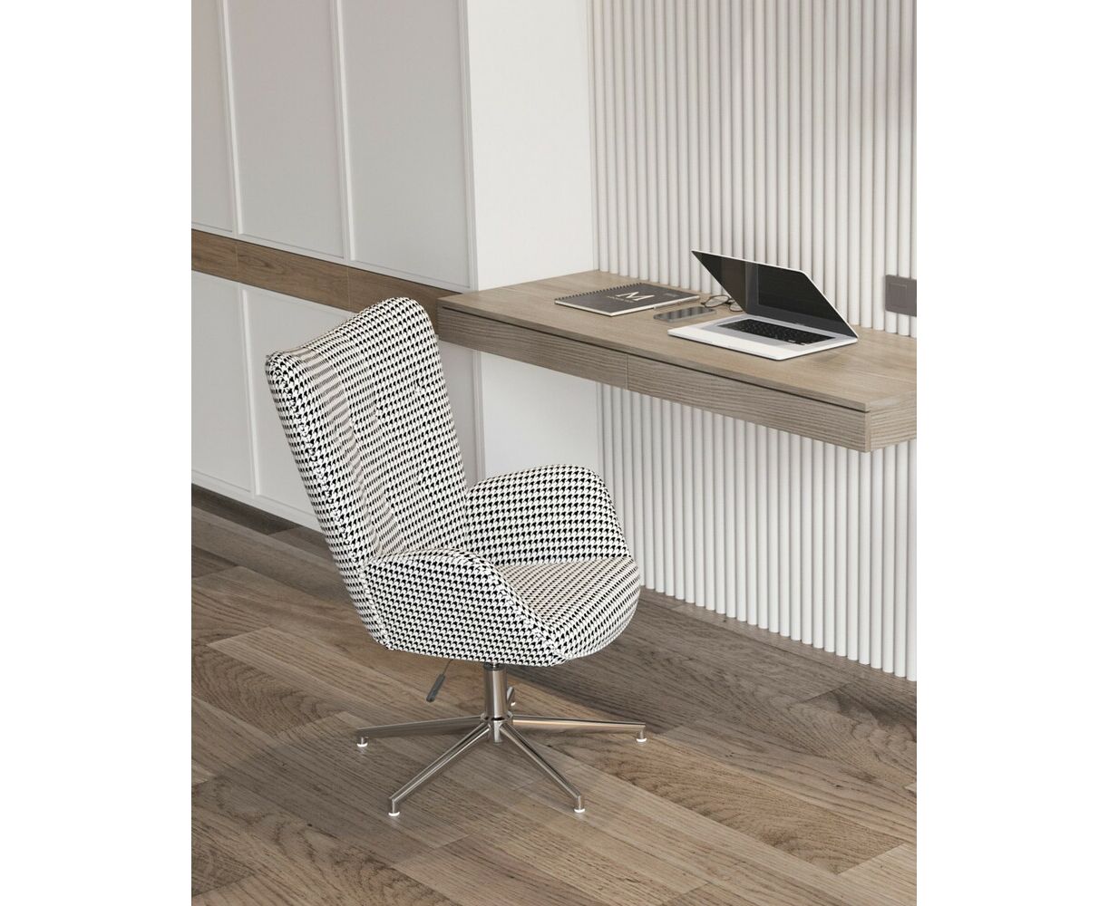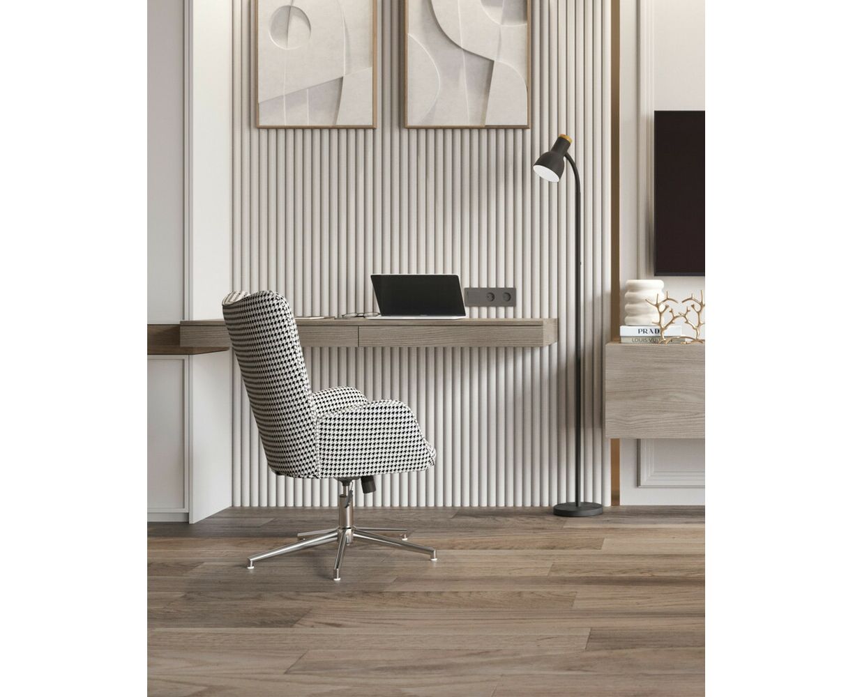 Мягкое сиденье с высокой поддерживающей спинкой анатомической формы подарит комфорт и уют. В качестве обивки используется прочная износостойкая замша с точечным декором. Металлическая ножка регулируется по высоте и обеспечивает хорошую устойчивость. Удобные подлокотники добавят комфорта. Кресло прекрасно смотрится в гостиной или столовой зоне. Высота сиденья регулируется от 43,5 до 53,5 см. В зависимости от регулировки общей высоты кресла, высота подлокотников от пола составляет 61-71 см.