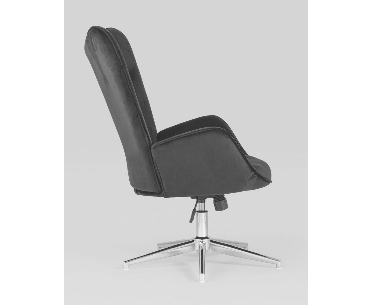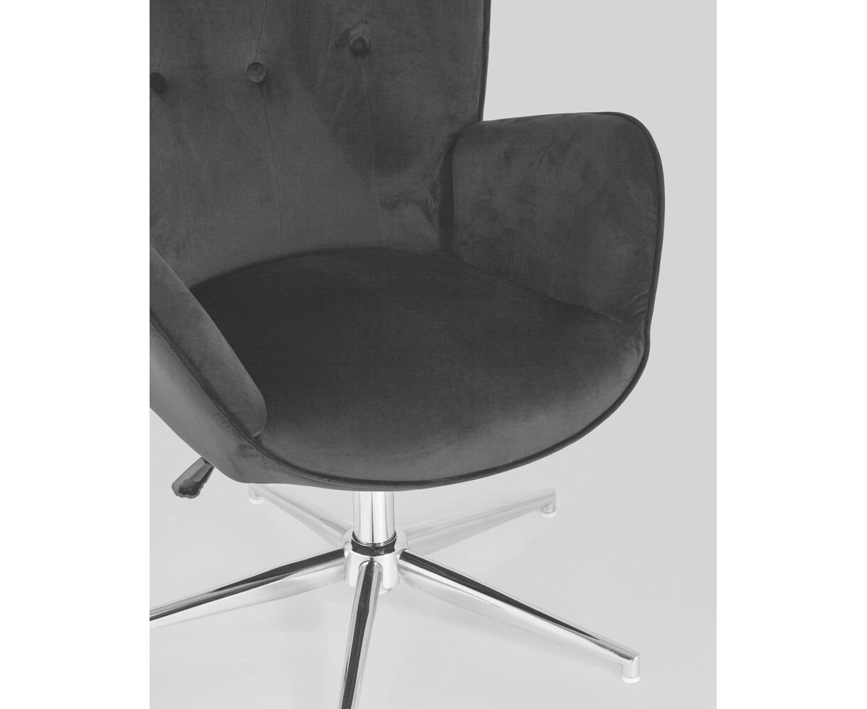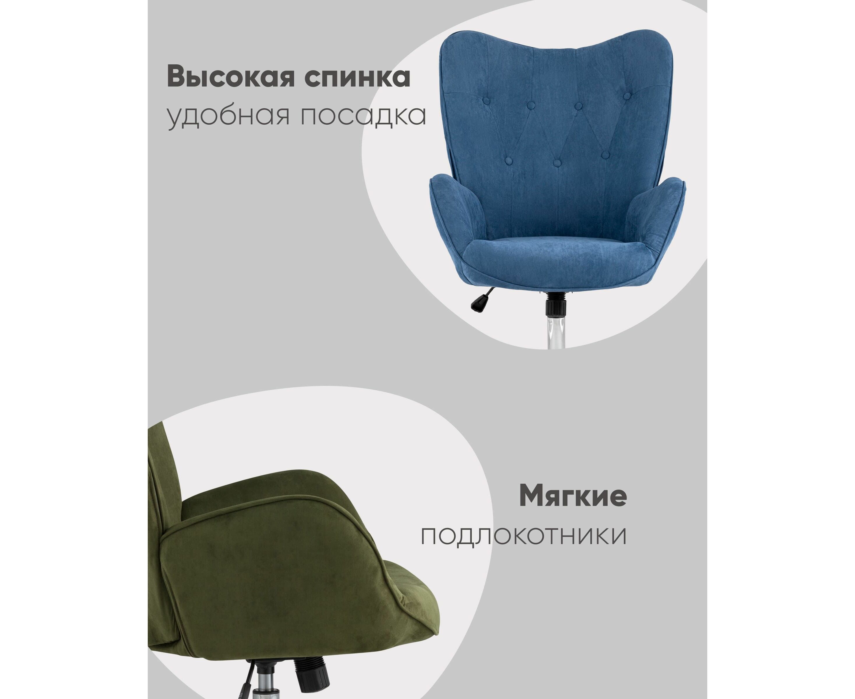 Мягкое сиденье с высокой поддерживающей спинкой анатомической формы подарит комфорт и уют. В качестве обивки используется прочная износостойкая замша с точечным декором. Металлическая ножка регулируется по высоте и обеспечивает хорошую устойчивость. Удобные подлокотники добавят комфорта. Кресло прекрасно смотрится в гостиной или столовой зоне. Высота сиденья регулируется от 43,5 до 53,5 см. В зависимости от регулировки общей высоты кресла, высота подлокотников от пола составляет 61-71 см.